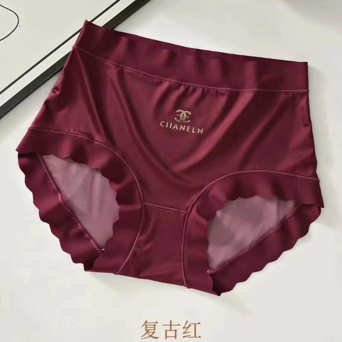 High-End Pure Desire Style Plus-Size Lace Mid-High Waist Zodiac Year Underwear for Women, Sexy Bright Red Satin Quick-Drying