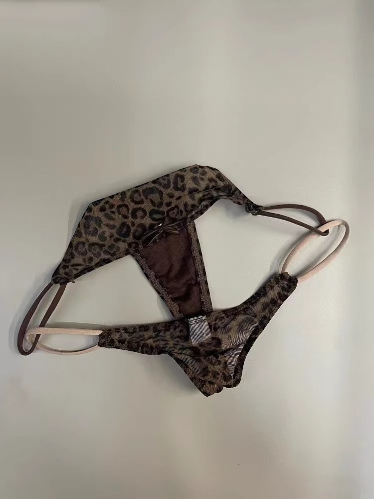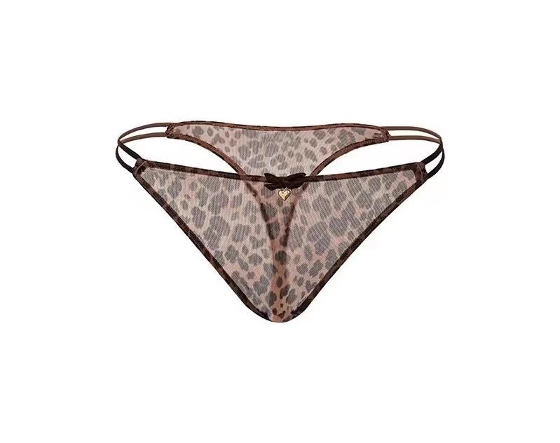 European and American Style Sexy Mesh Leopard Print Breathable Low-Waist Panties for Girls, Summer Thin Pure Desire Hollow-Out Simple Thong
