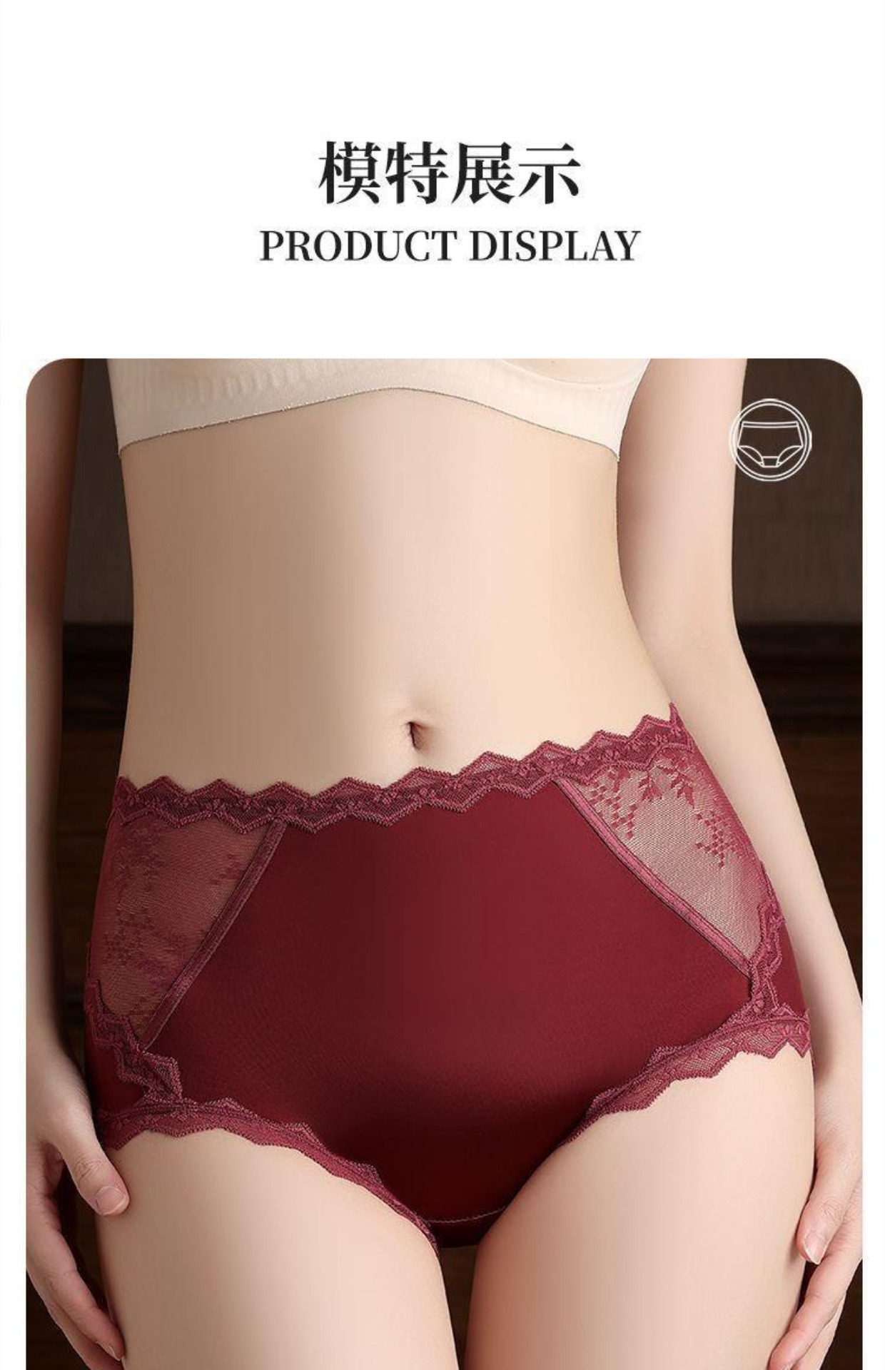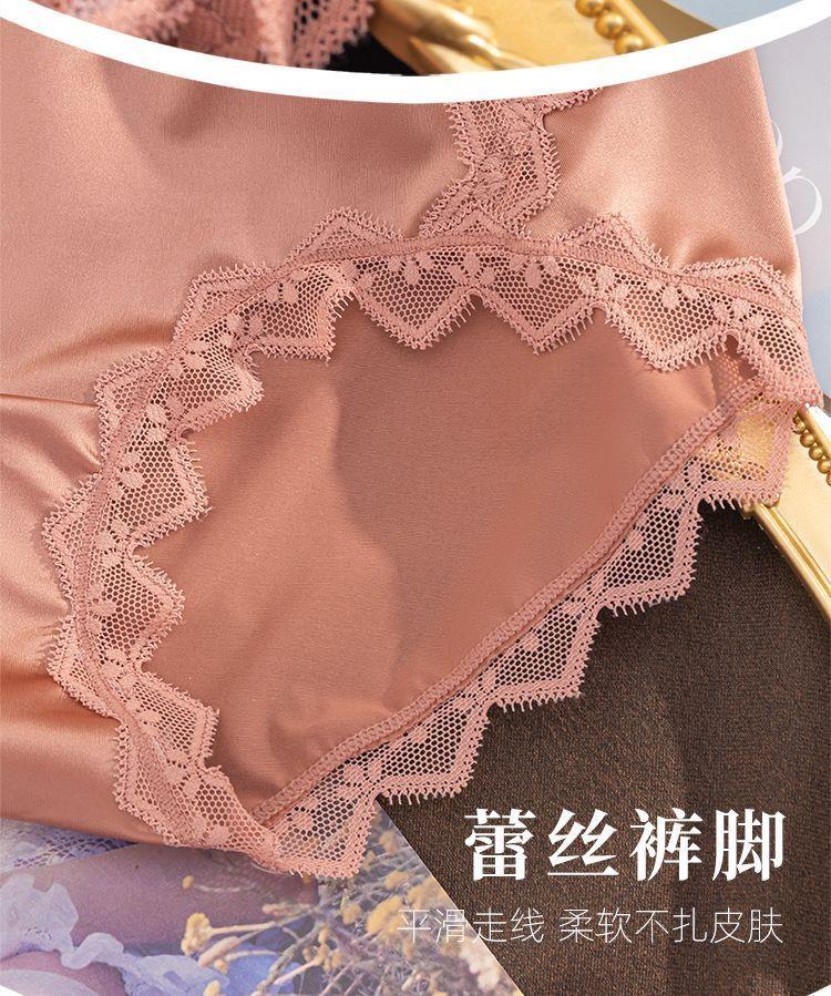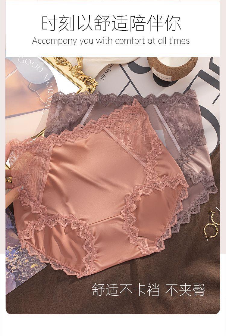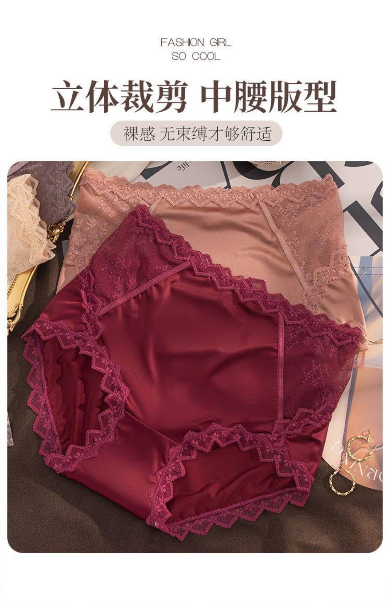 Luxurious New Mid-High Waist Tummy Control Panties for Women, Lace Trim, Satin, Skin-Friendly, Comfortable Briefs, Butt-Lifting, Sexy Women's Underwear