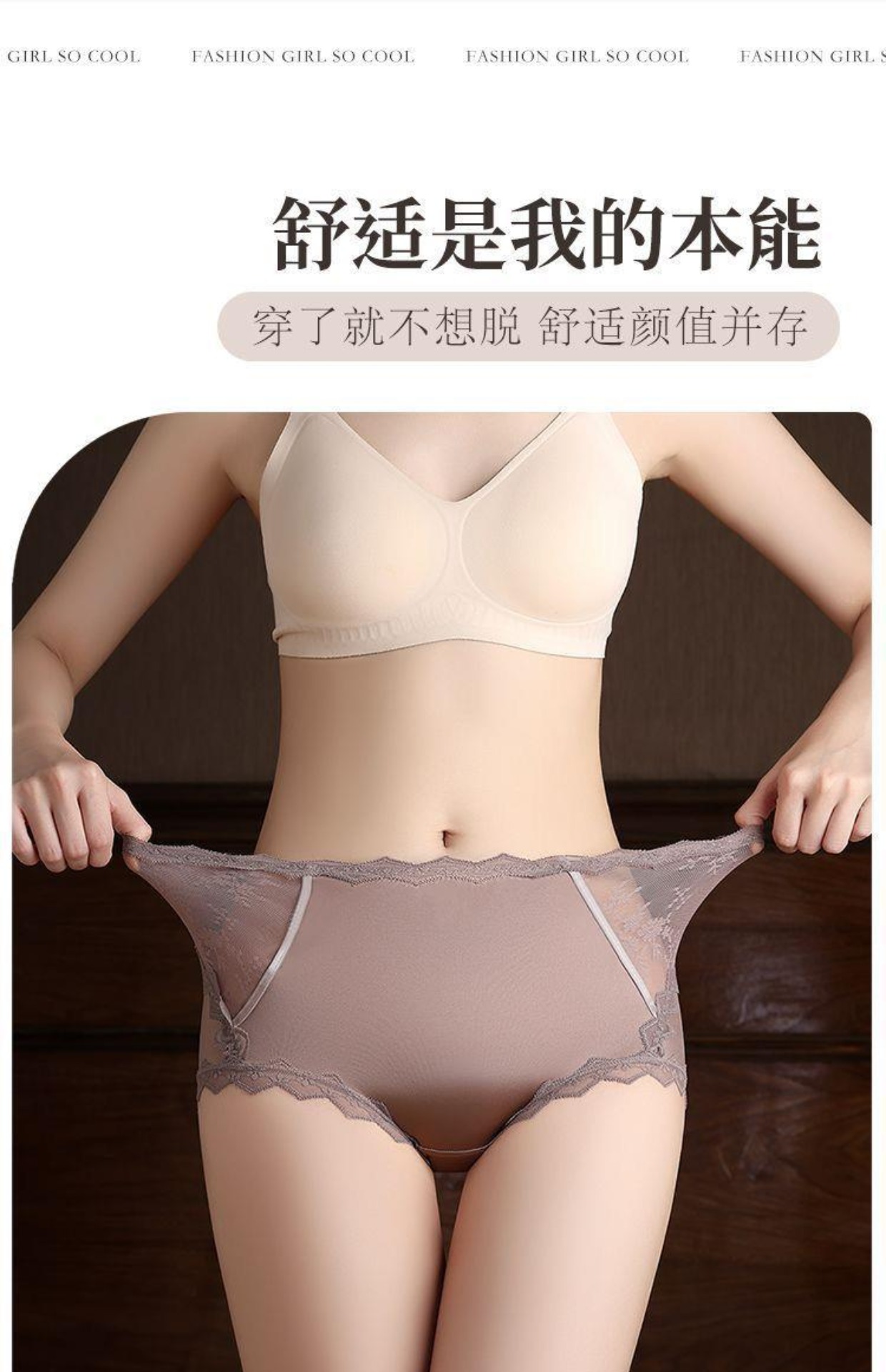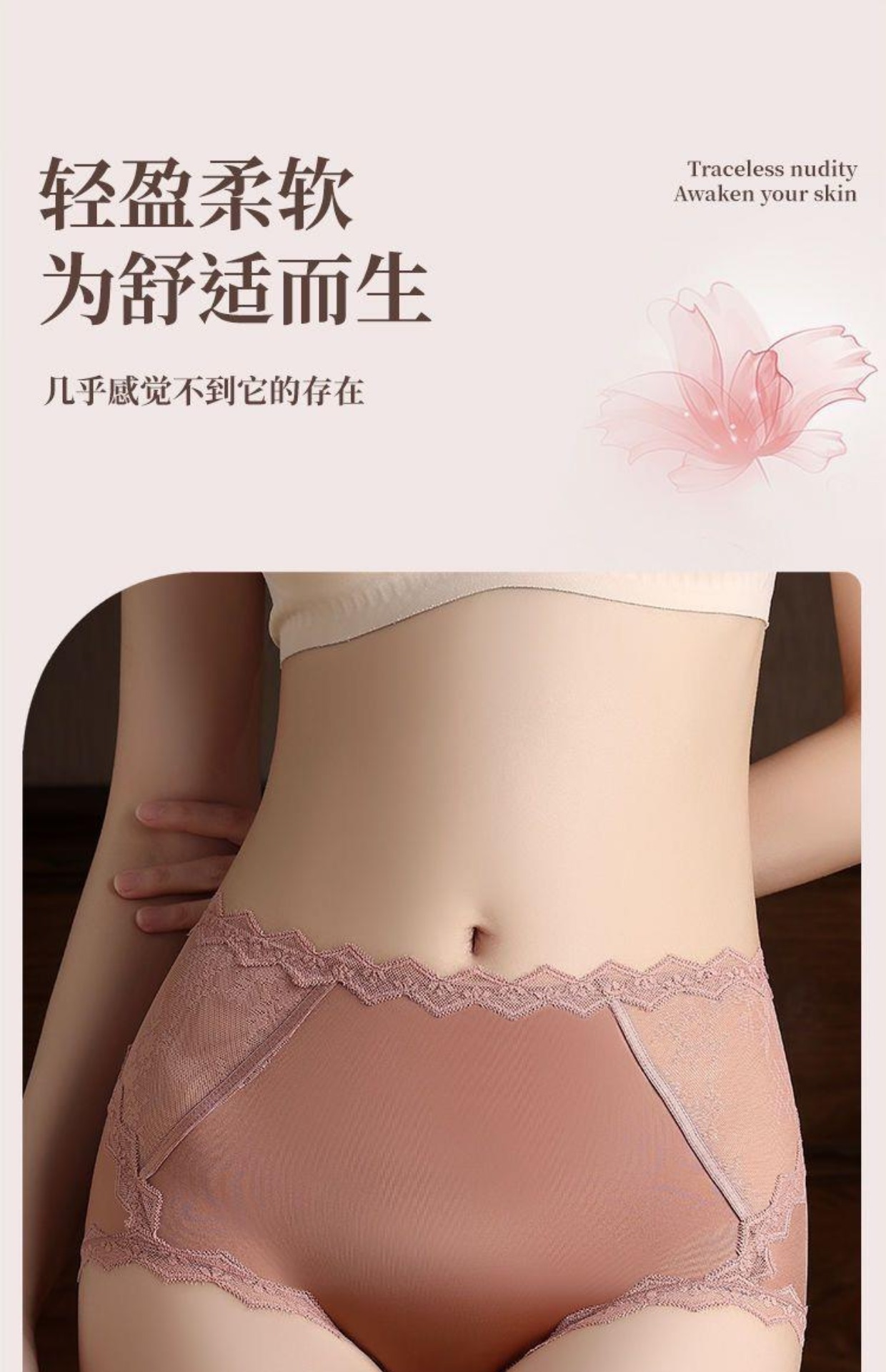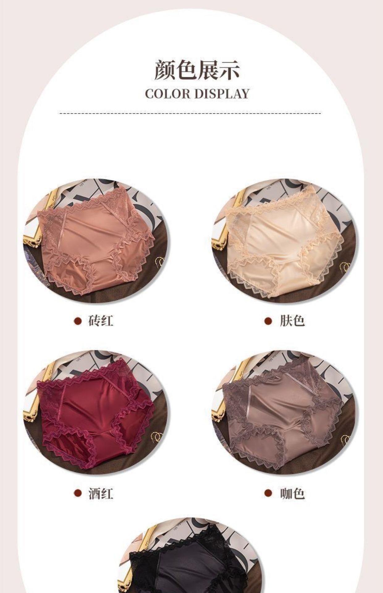 Luxurious New Mid-High Waist Tummy Control Panties for Women, Lace Trim, Satin, Skin-Friendly, Comfortable Briefs, Butt-Lifting, Sexy Women's Underwear
