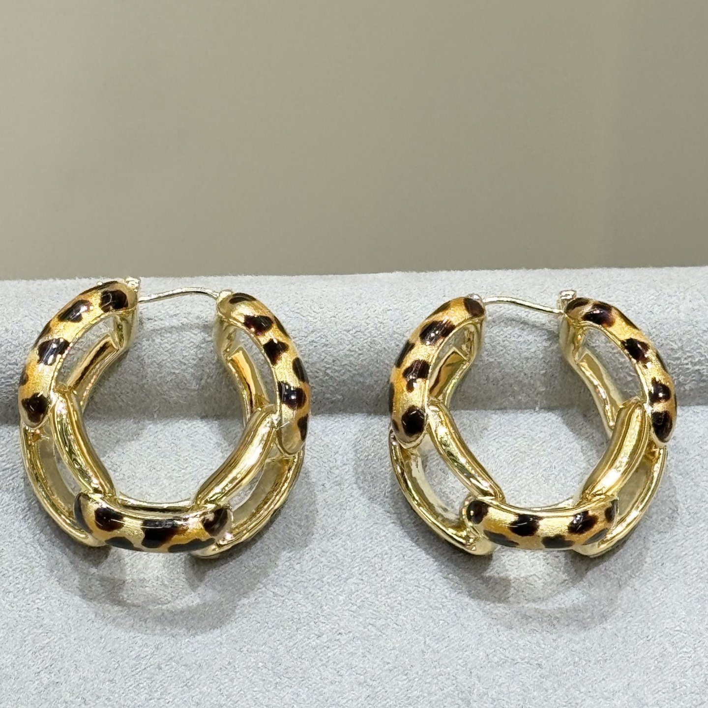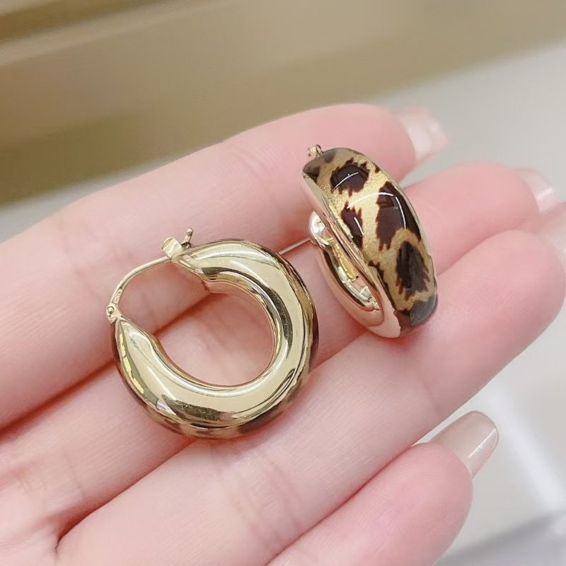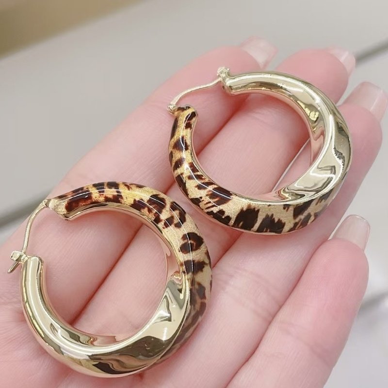 Shangxi Jewelry ins High-End Retro Style 18K Unique Design Versatile Twist Leopard Print Earrings