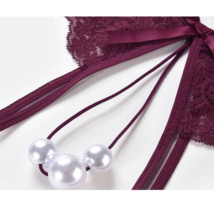 Rose Vava Sexy Girls Panties Sexy Lace Thin Straps Mini Crotchless Pearl Thong Pure Desire