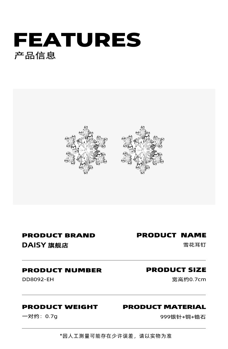 S999 Pure Silver Needle Snowflake Earrings for Women 2025 New Popular Zircon Earrings Light Luxury High-End Ear Care Earrings