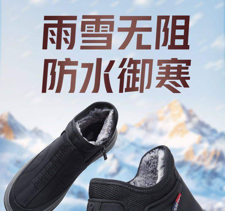 Old Beijing Cotton Shoes for Men, Winter Fleece-Lined, Thickened, Non-Slip, Warm Slip-On Shoes for the Elderly, Middle-Aged and Older Men's Shoes