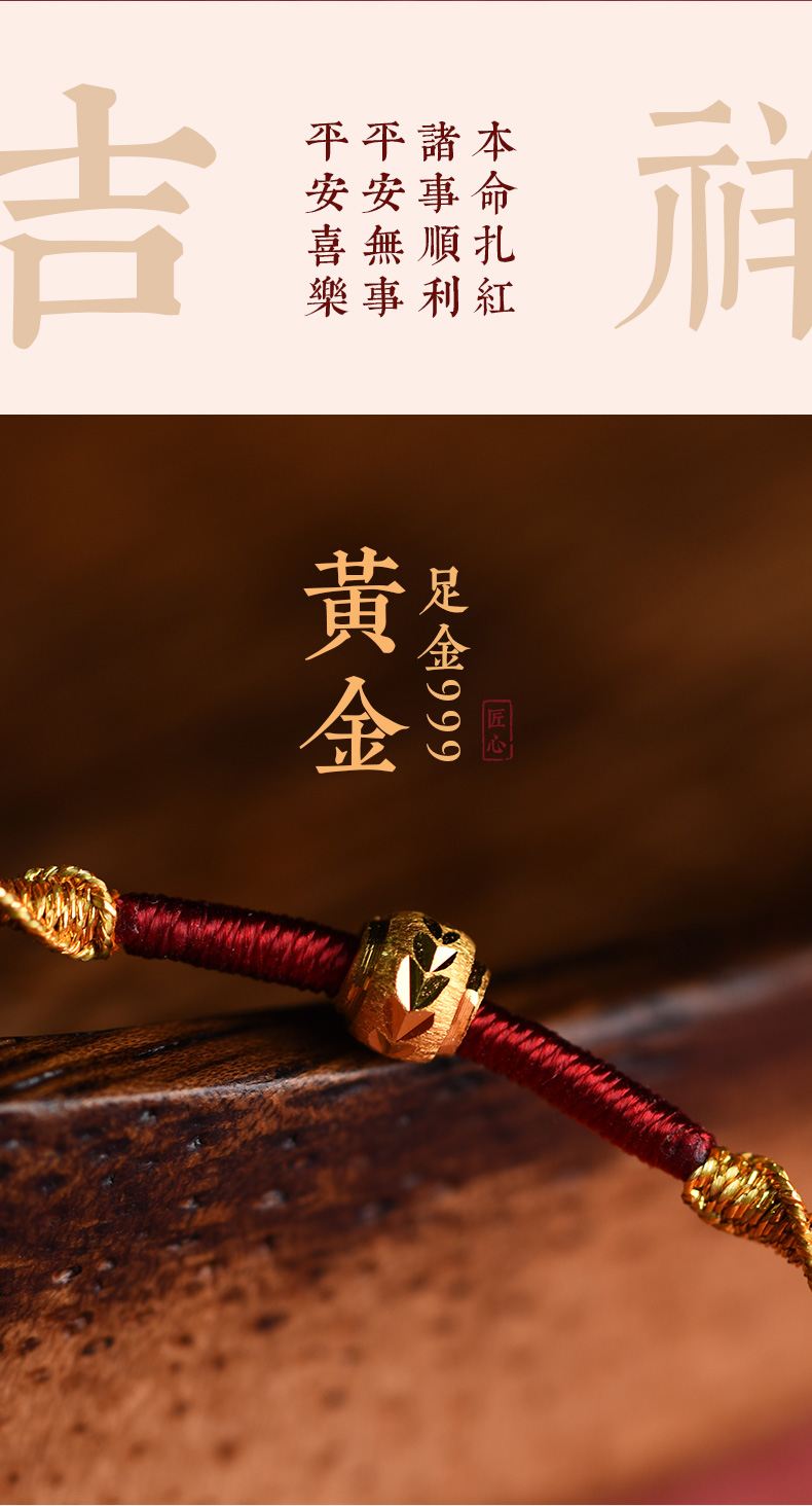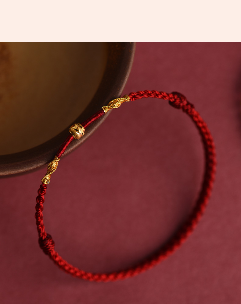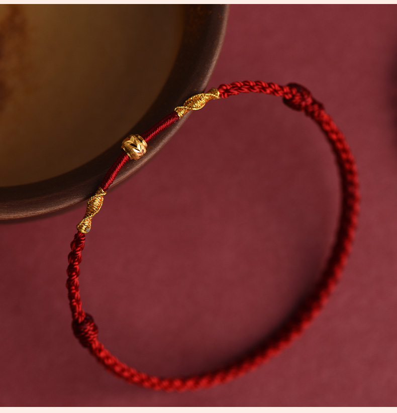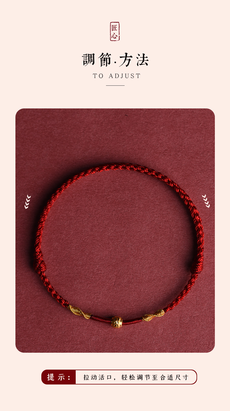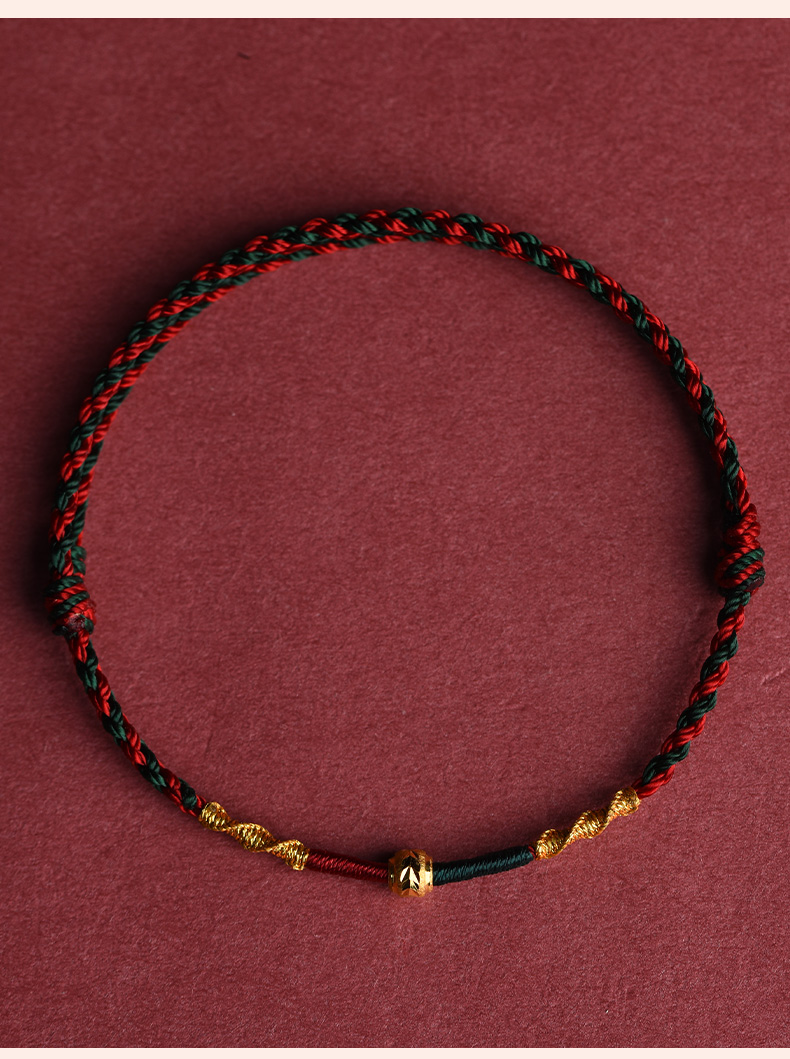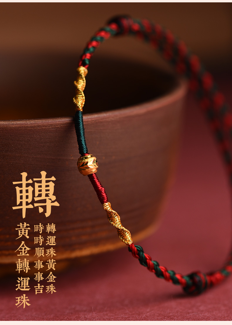 Putuo Mountain Wen Chuang Ji 999 Foot Gold Transfer Beads Benmingnian Bracelet Women's Men's Woven Red Rope Gift Hand Rope
