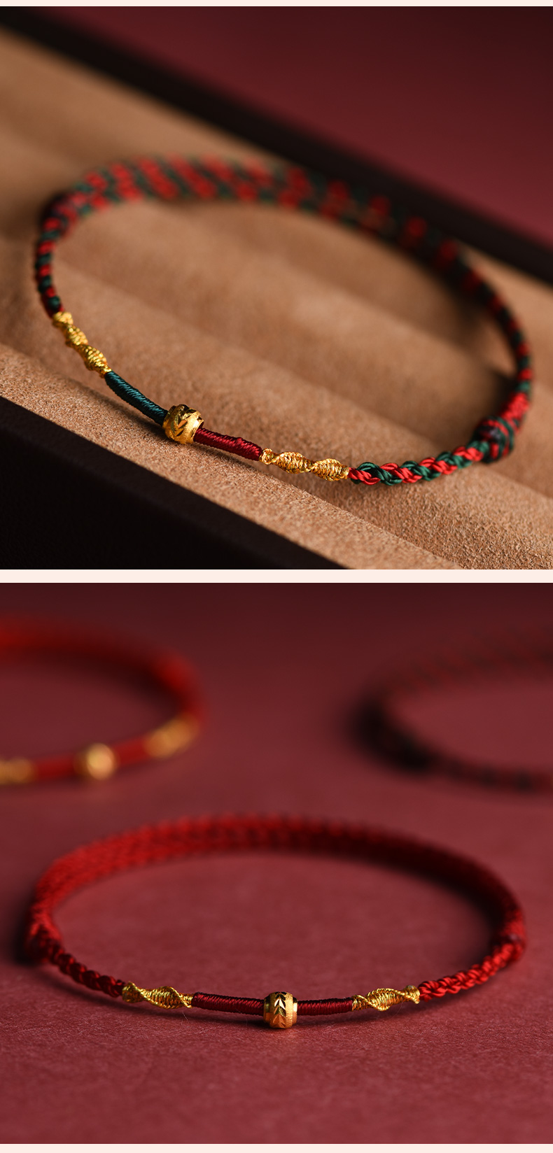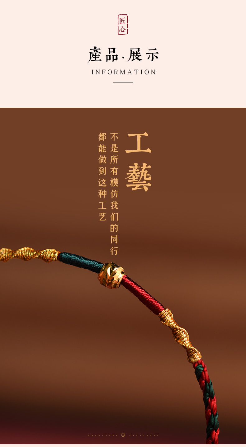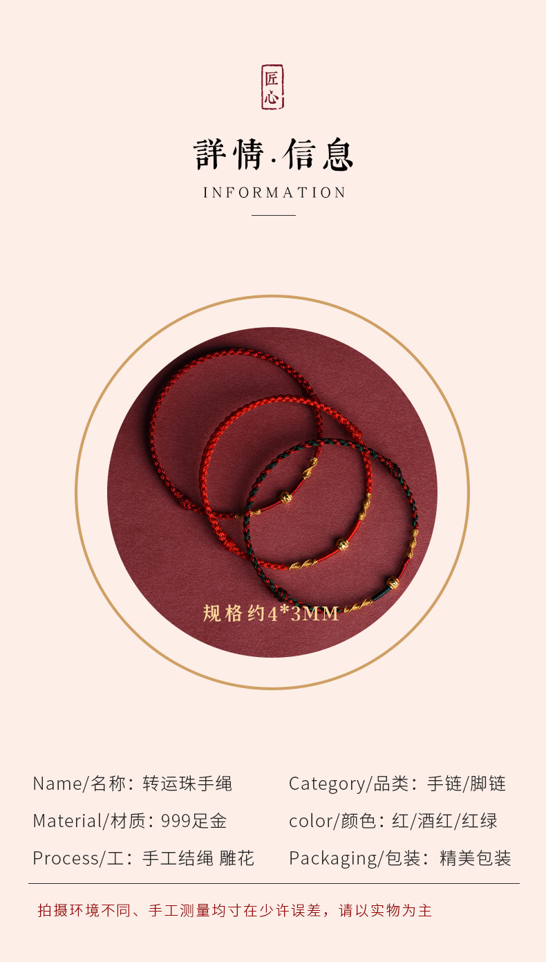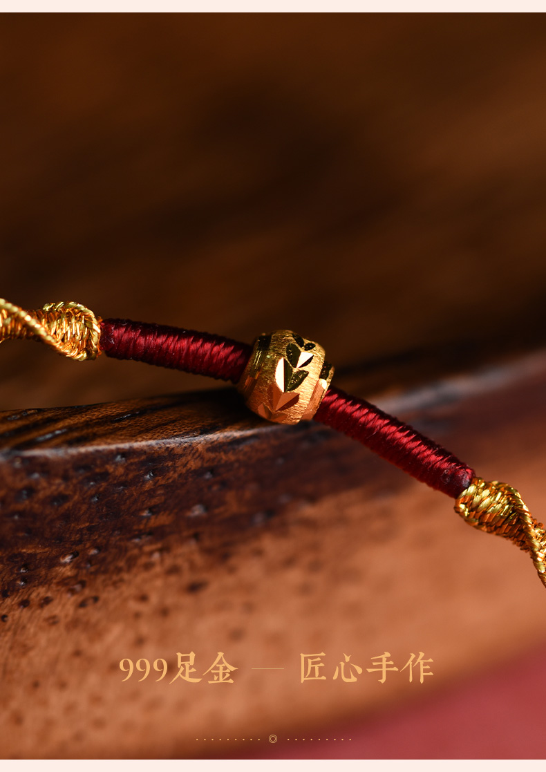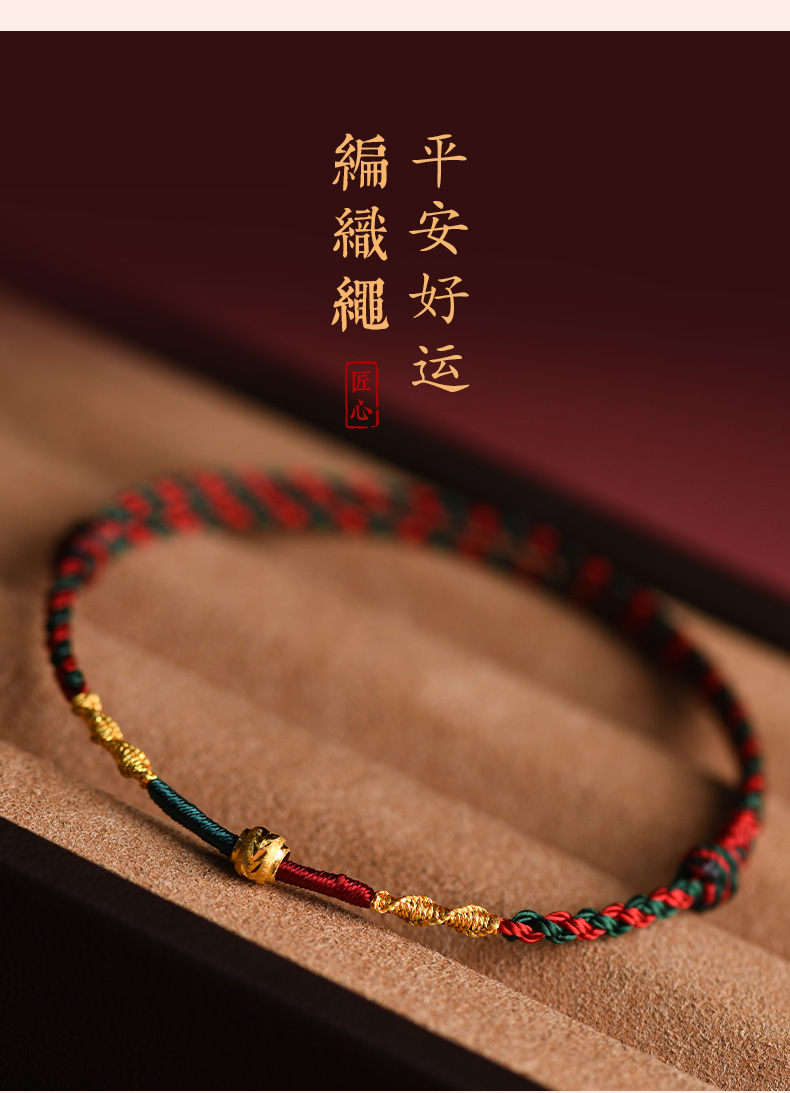 Putuo Mountain Wen Chuang Ji 999 Foot Gold Transfer Beads Benmingnian Bracelet Women's Men's Woven Red Rope Gift Hand Rope