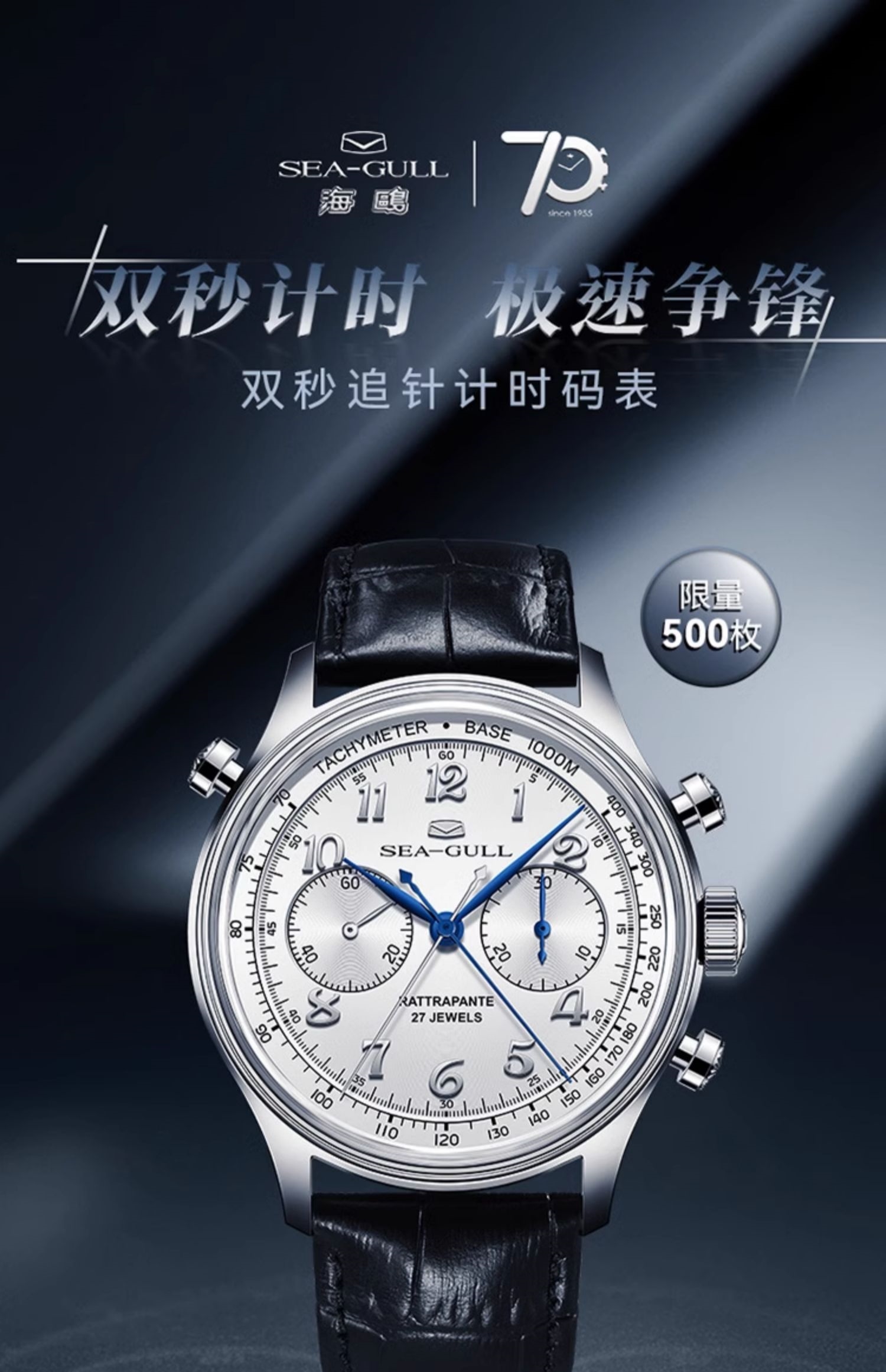 Seagull Watch 418.13.1077 70Th Anniversary Double Second Hand Chronograph Manual Winding Limited Edition