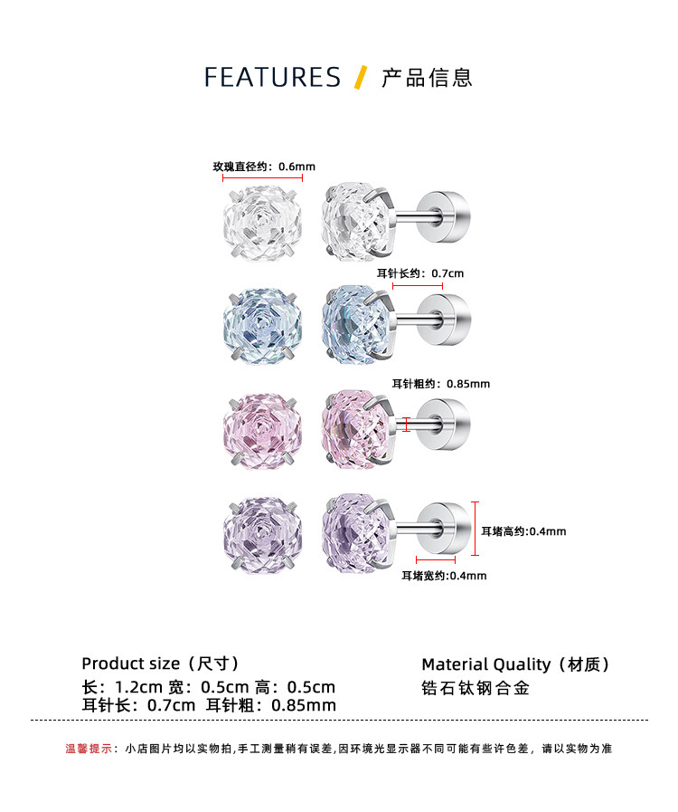 Ice Blue Rose Titanium Alloy Earrings for Women, No Need to Remove When Sleeping, Ear Piercing Care, Titanium Steel Ear Bone Studs, Cochlear Studs, Earrings, Ear Accessories