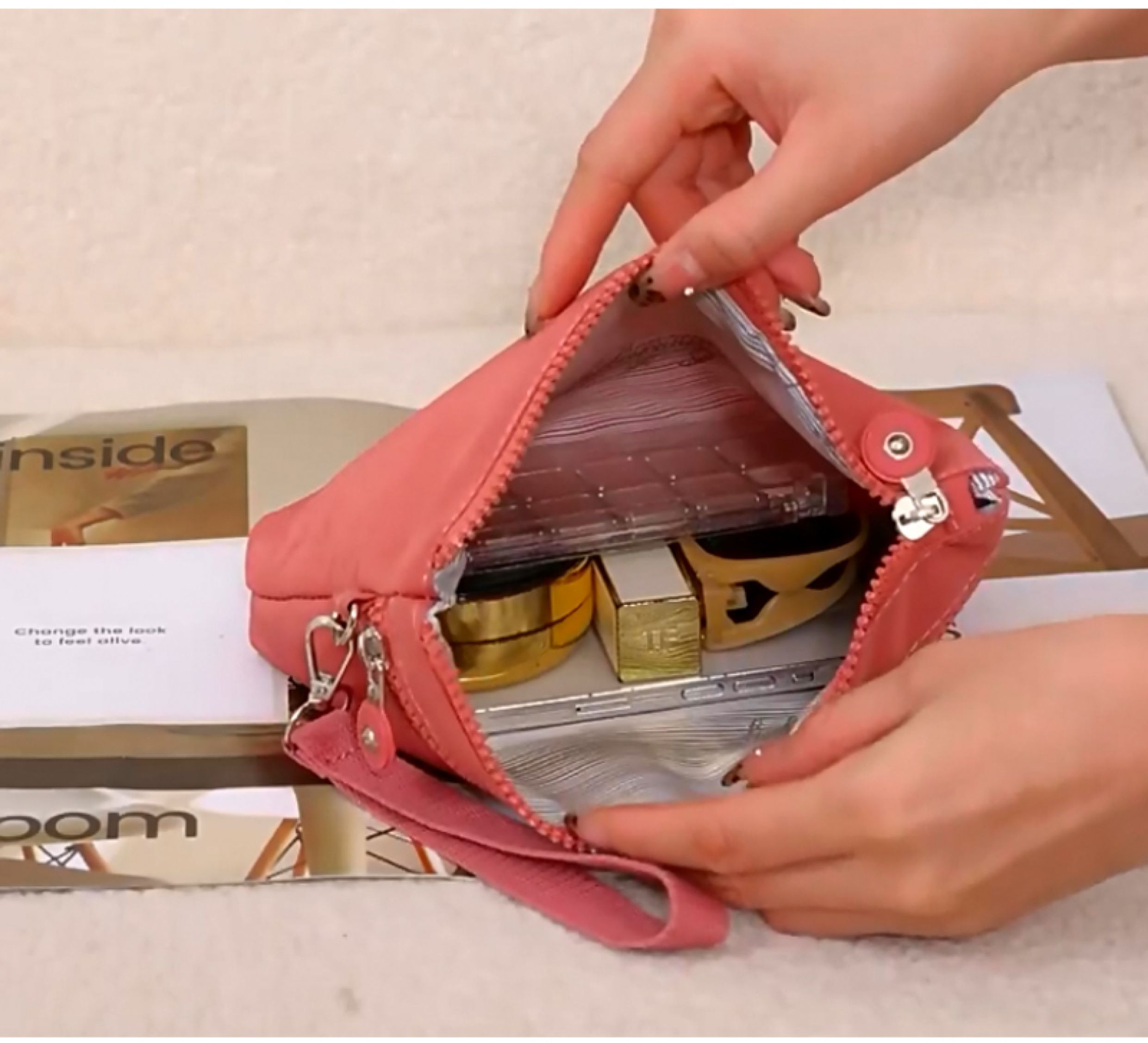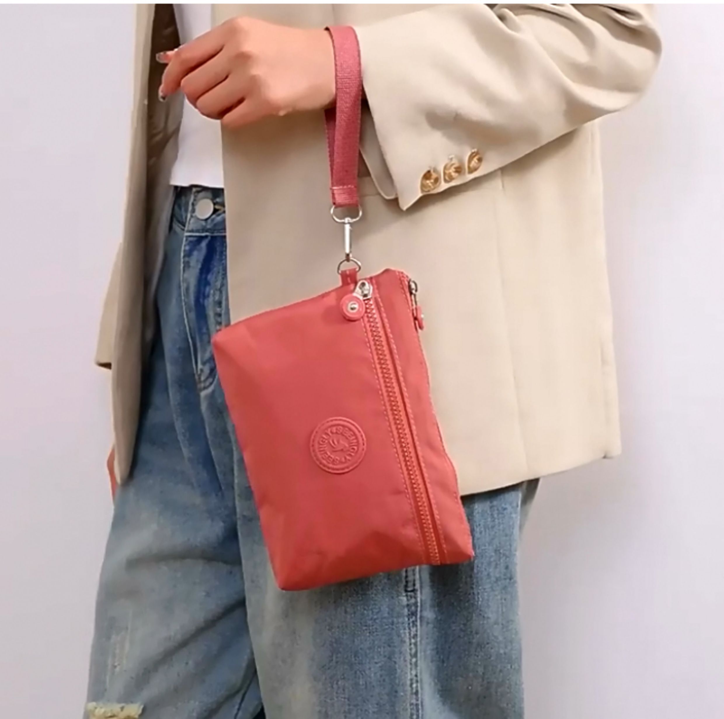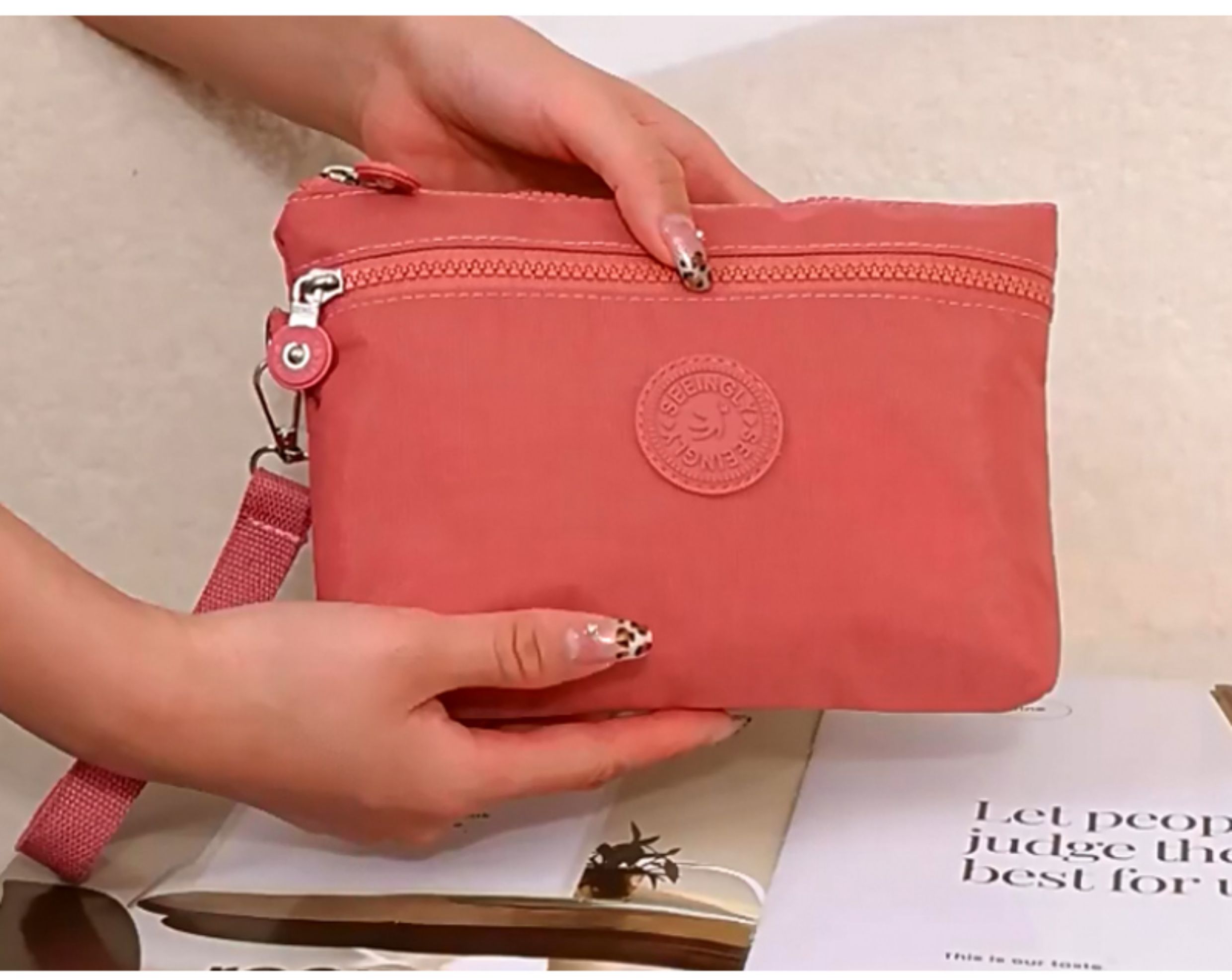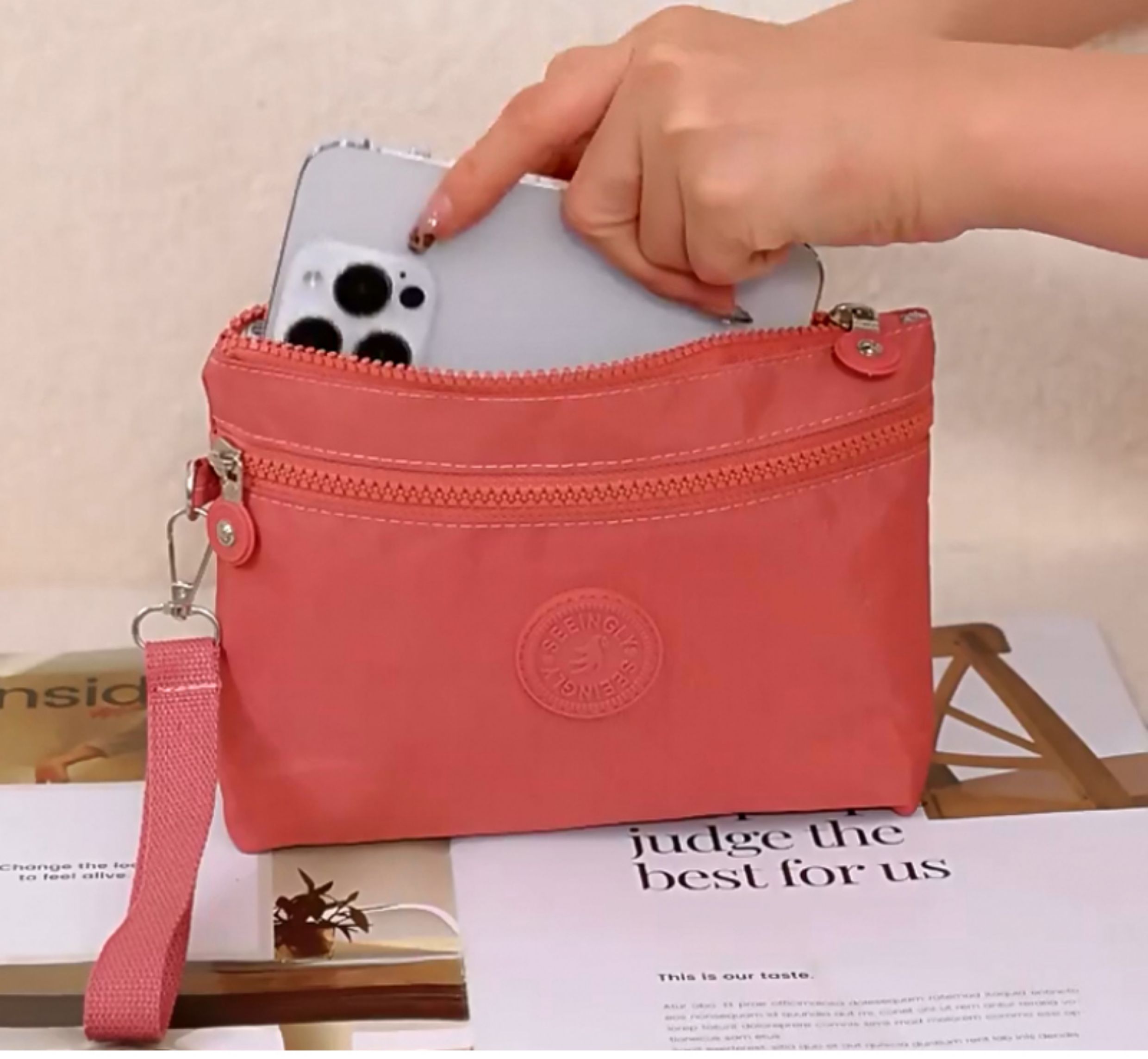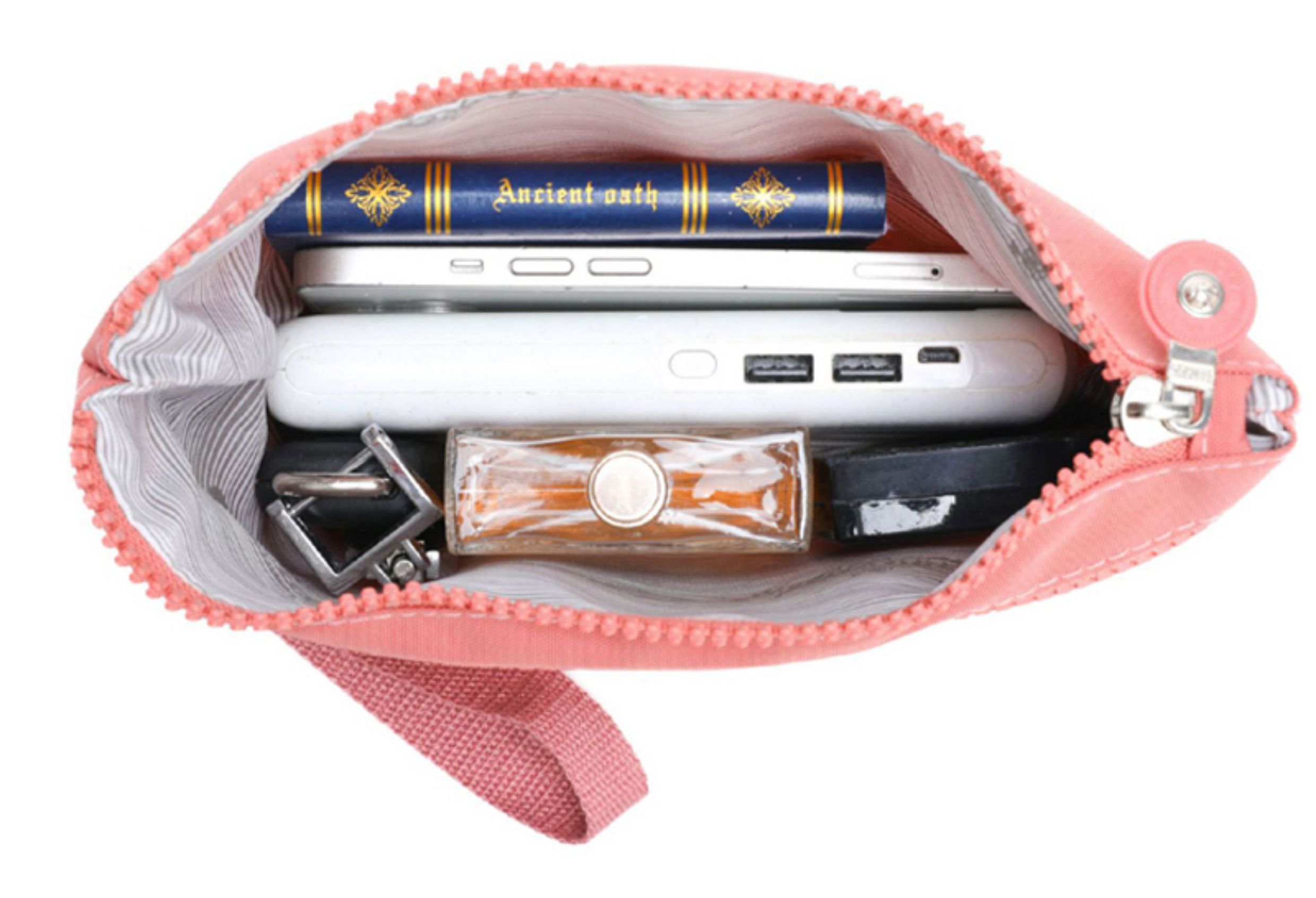 Fashionable and Simple Canvas Clutch Bag for Women, Fabric Horizontal Mobile Phone Bag, Versatile Double-Layer Zipper Cosmetic Bag, Coin Purse