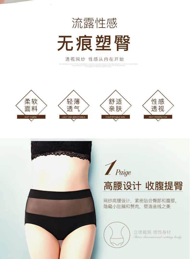 New High-Waisted Women's Underwear, Pure Cotton, Plus Size, Mesh, Transparent, Breathable, Tummy Control, Hip-Hugging, Women's Briefs, Thin Women's Panties