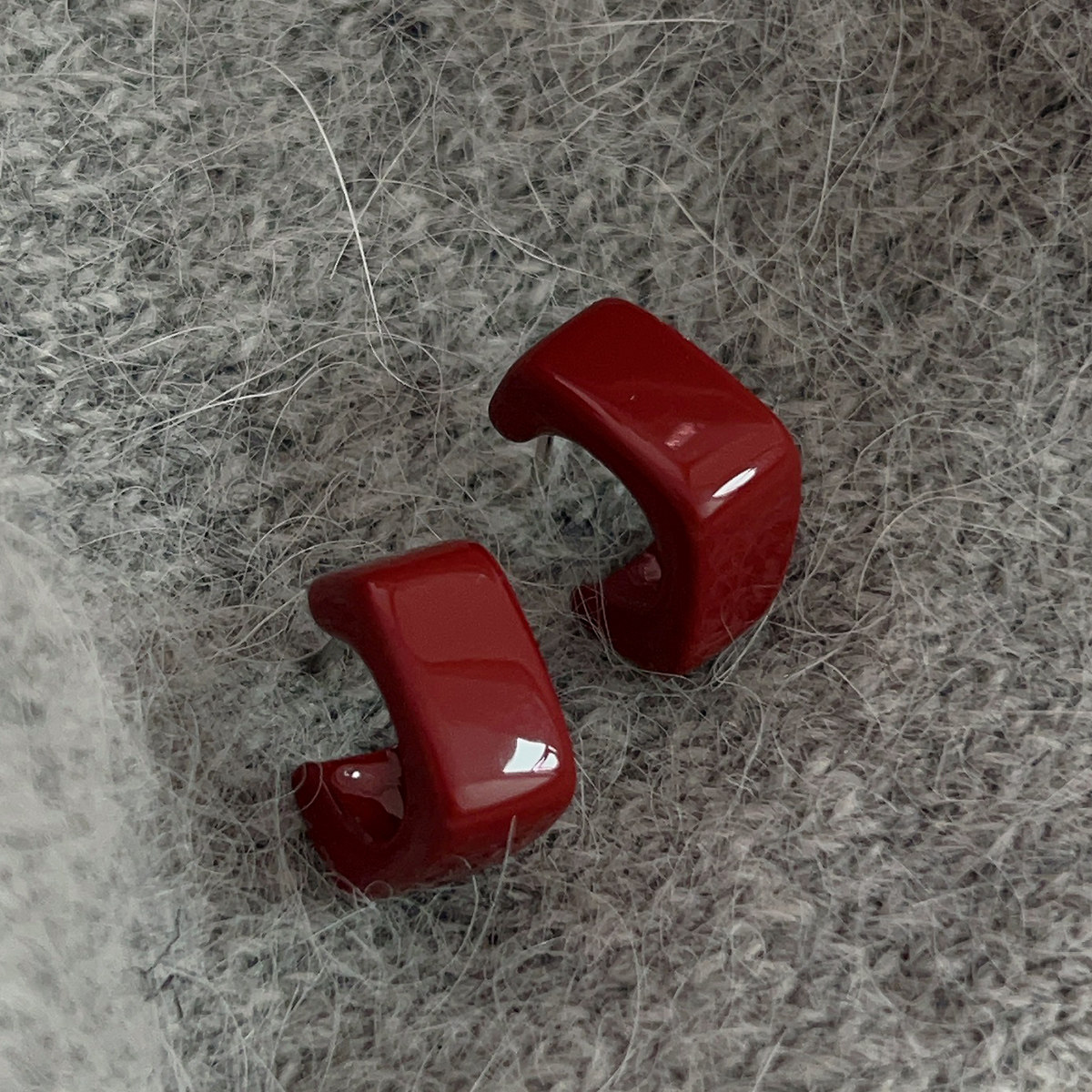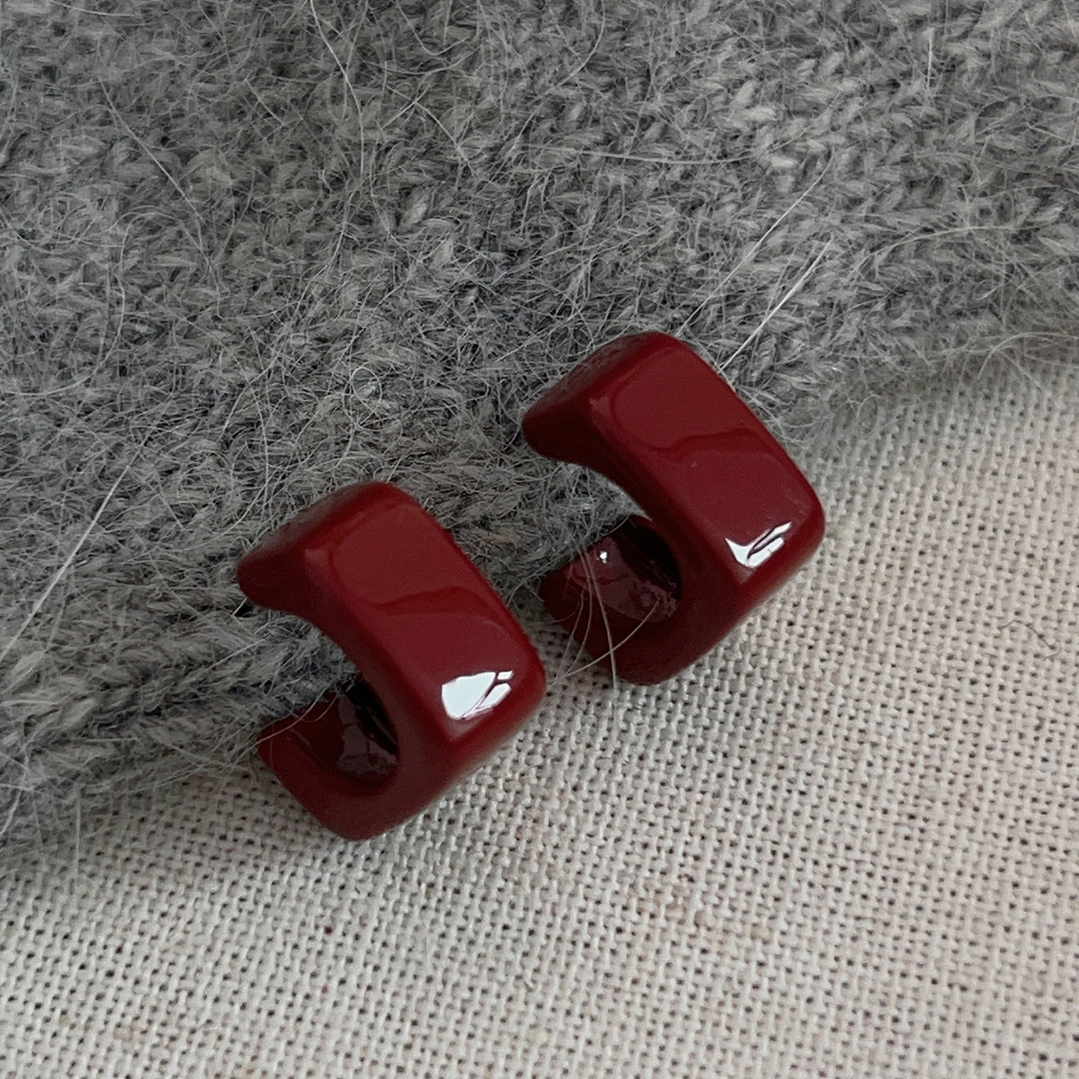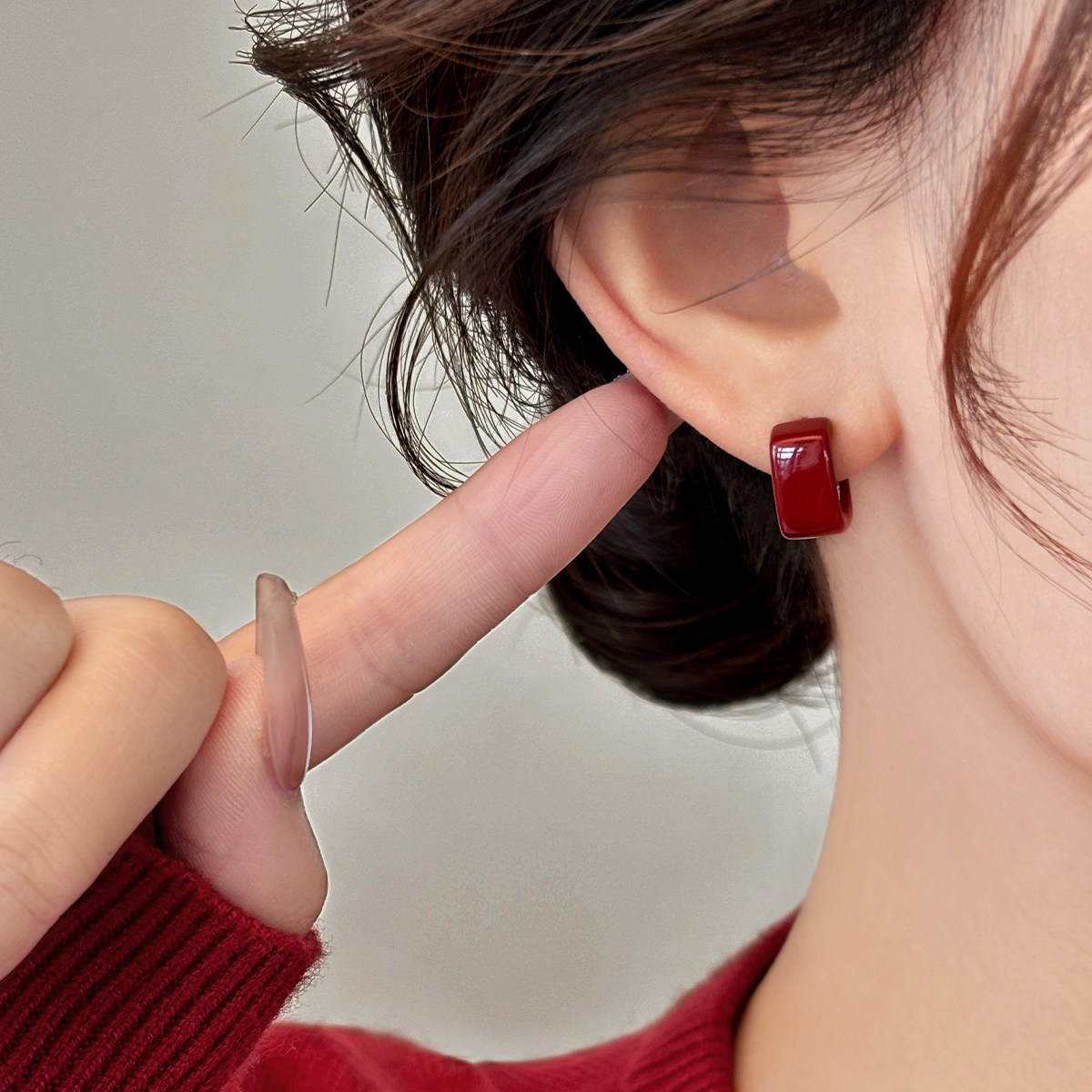 New Year Ancora Wine Red Drip Glaze Earrings Sterling Silver Retro Hong Kong Style Earrings 2025 New Popular High-End Earrings