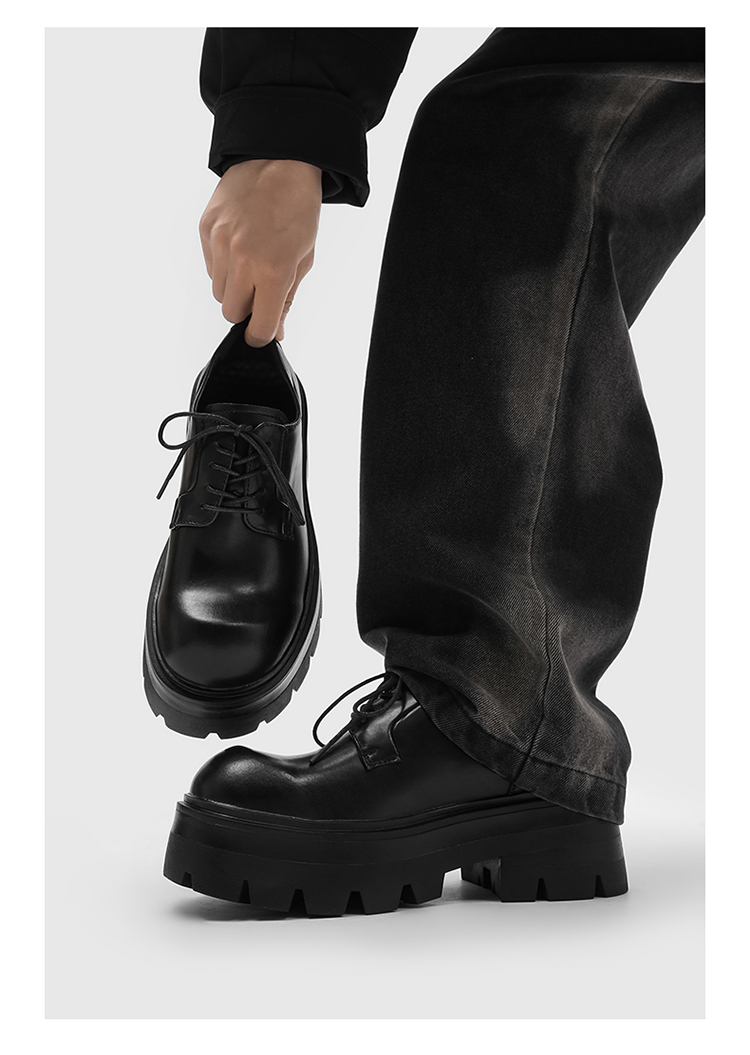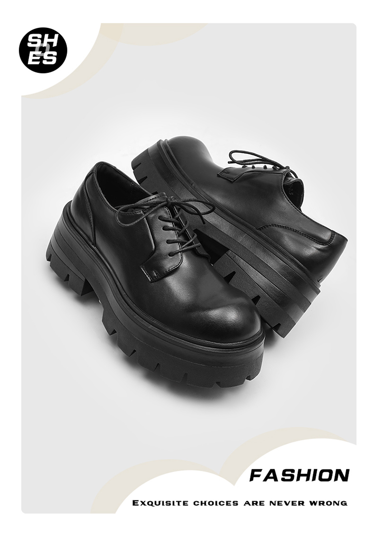 Derby Shoes 10cm Invisible Height Increasing Shoes for Men, Black Genuine Leather Thick-Soled Inner Height Increasing Leather Shoes for Men, Wedding Big-Toe Shoes for Women