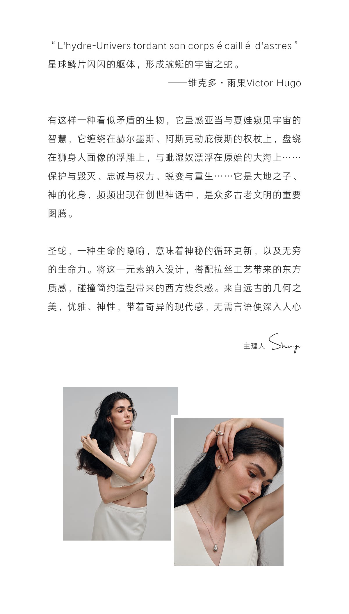 Gem Code Galaxy Snake Trail Series 925 Silver Necklace Natural Aquamarine Natural White Chalcedony