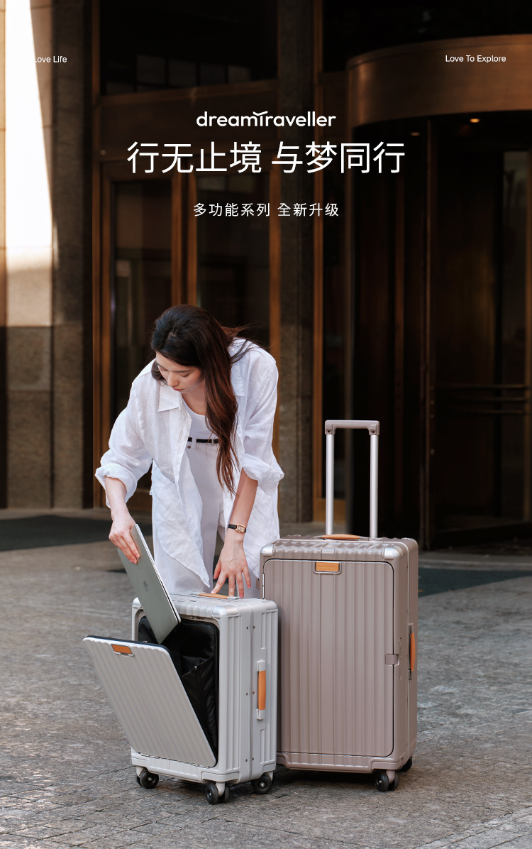 Dream Traveler Large-Capacity Suitcase with Universal Wheels, Multi-Functional Trolley Case with Side Opening Lid, Travel Case with Password Lock, Leather Suitcase for Men and Women