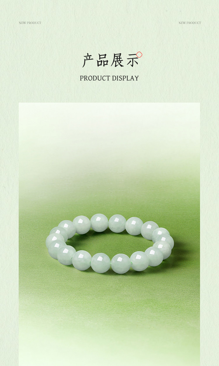 Saturday Fortune Natural Jade Bracelet Jadeite Round Beads Chinese Style Bracelet New Year Gift