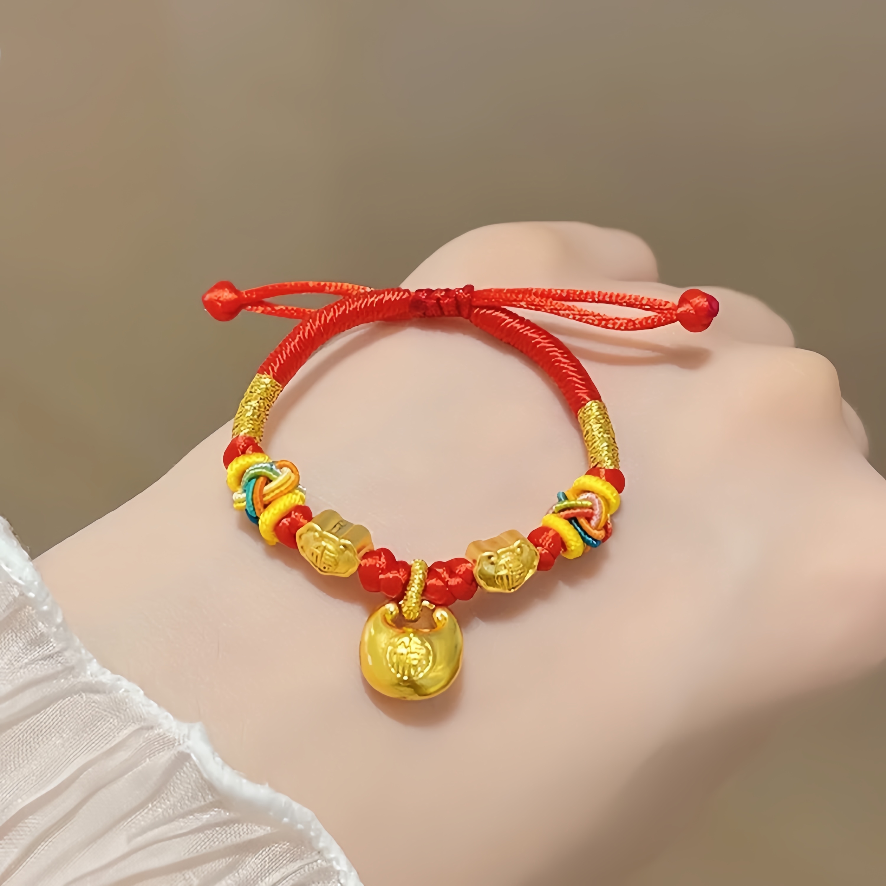 Gold Little Fortune Bracelet, Small Gold Fortune Lock, Pure Gold 999 Baby Gold Jewelry, Infant First Birthday Full Month Bracelet Gift