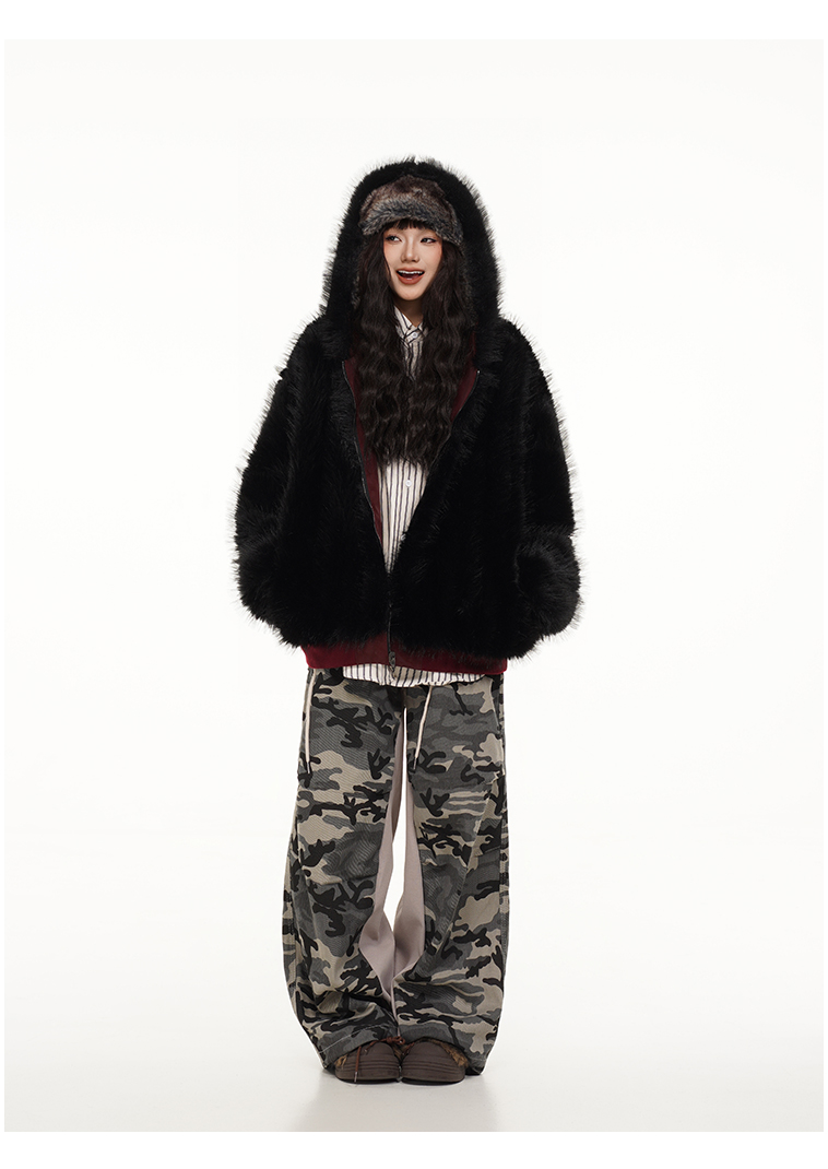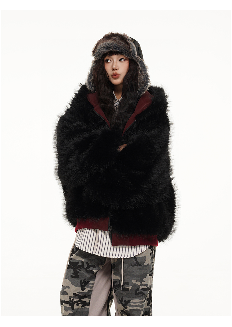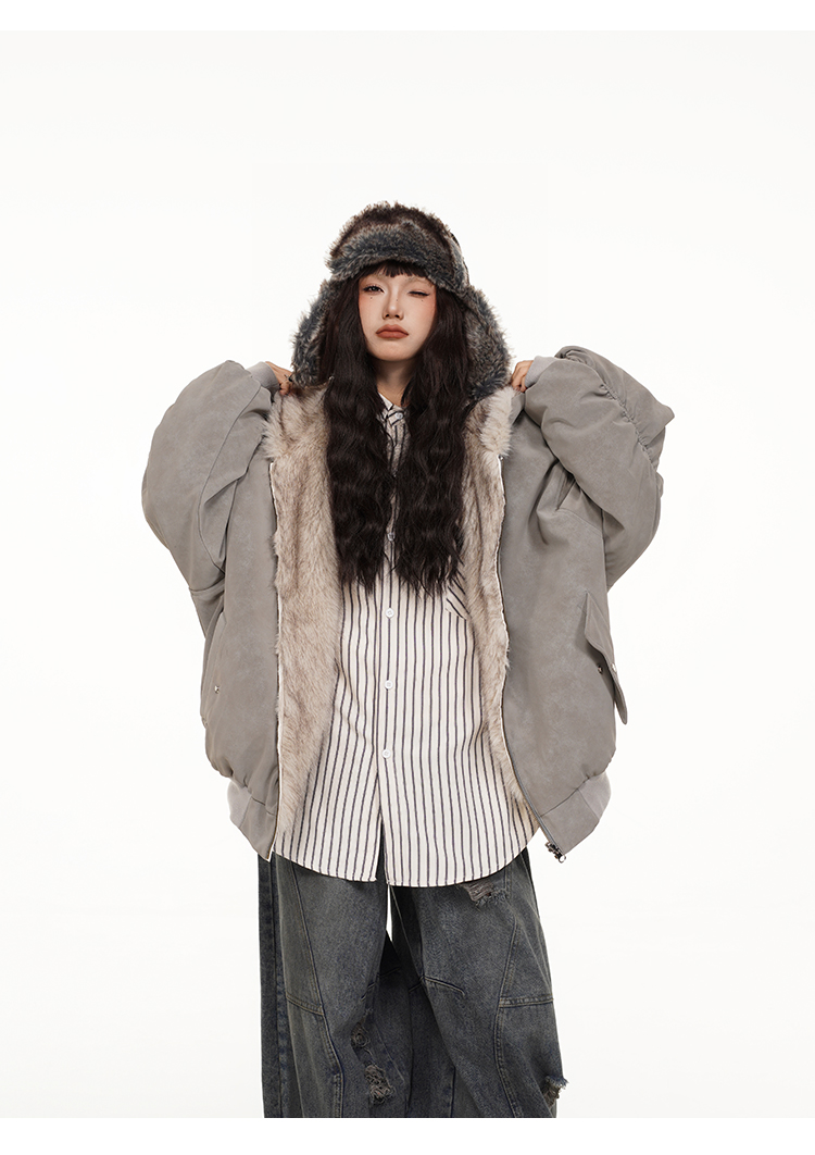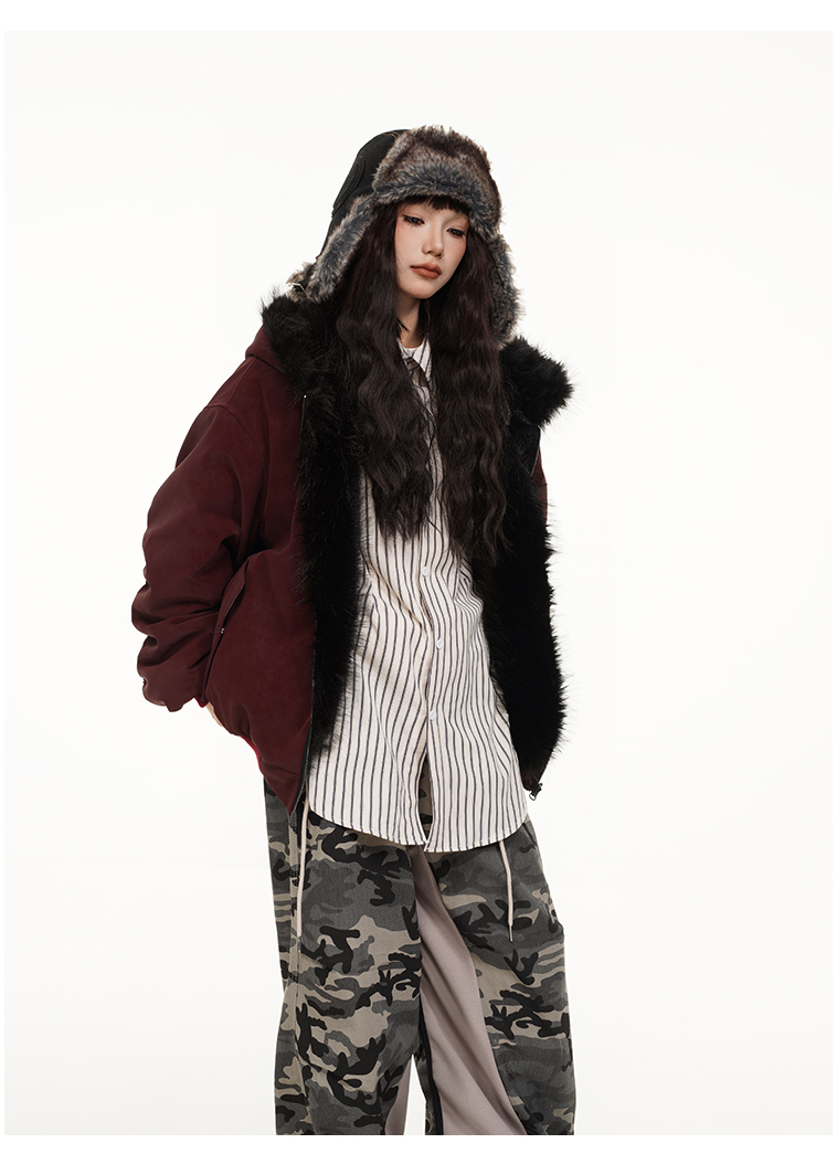 Free Center Reversible Mountain Carving Unisex Flight Jacket Thickened Warm Loose Hooded Coat