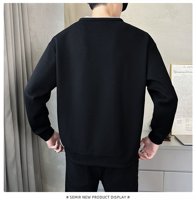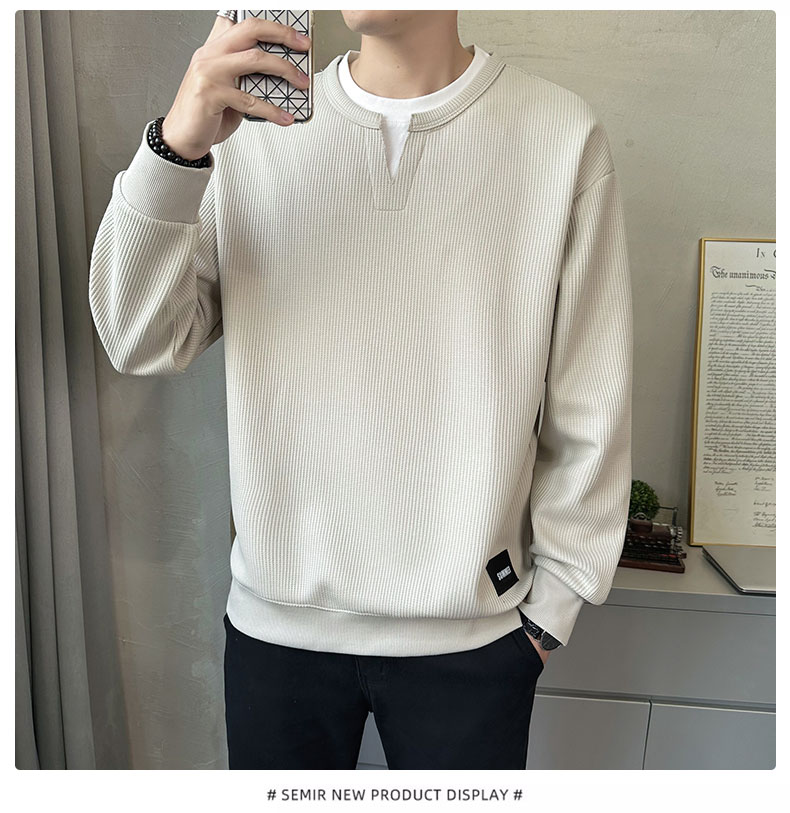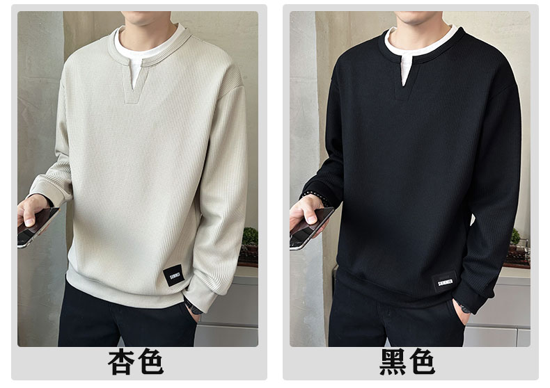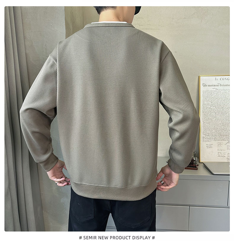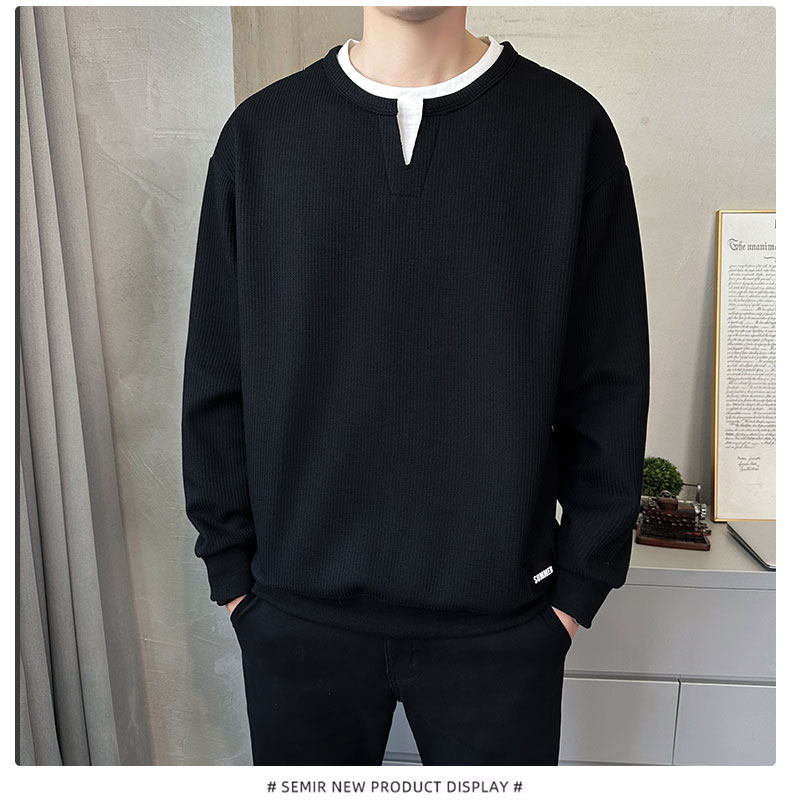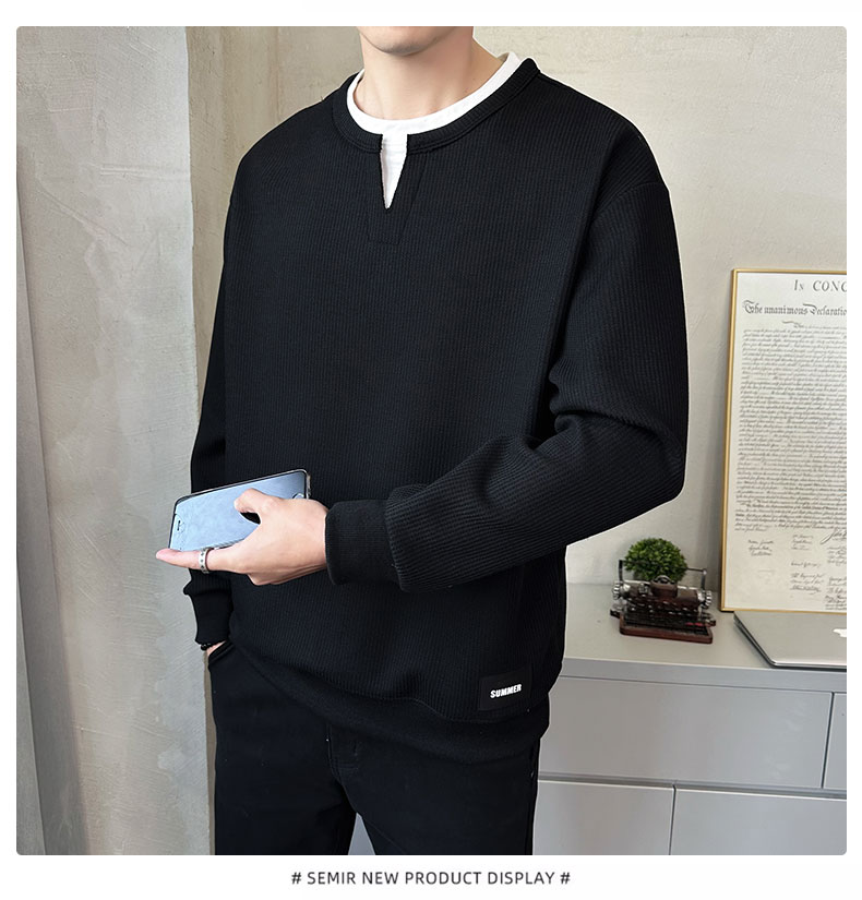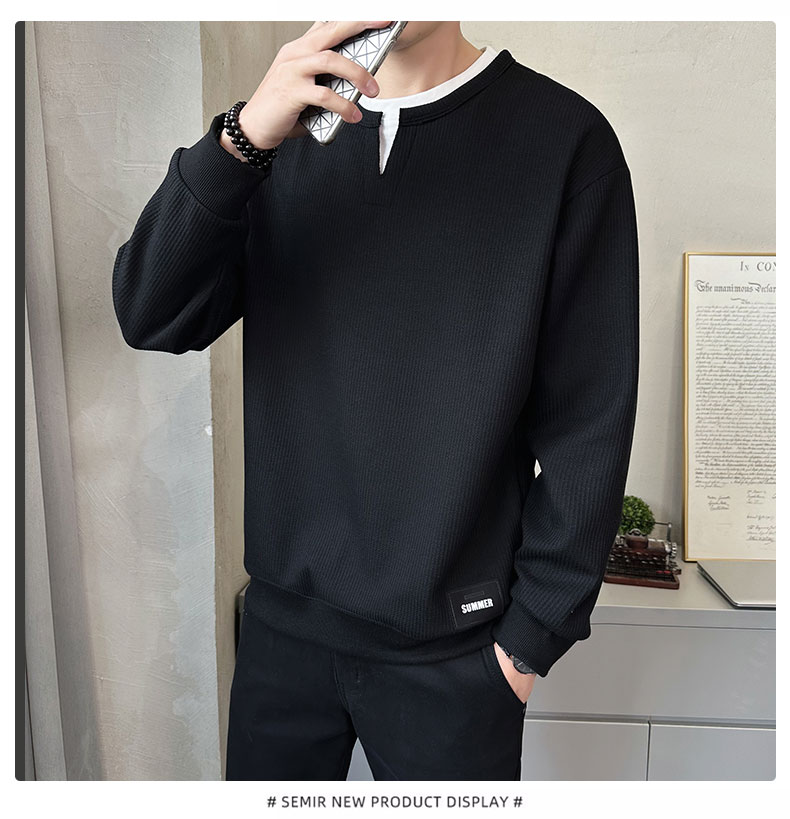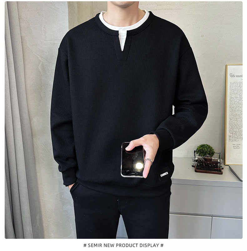 Designed Two-In-One Men's Sweatshirt Without Hood, Long-Sleeve T-Shirt, Spring and Autumn Trendy Brand Casual Versatile Men's Top