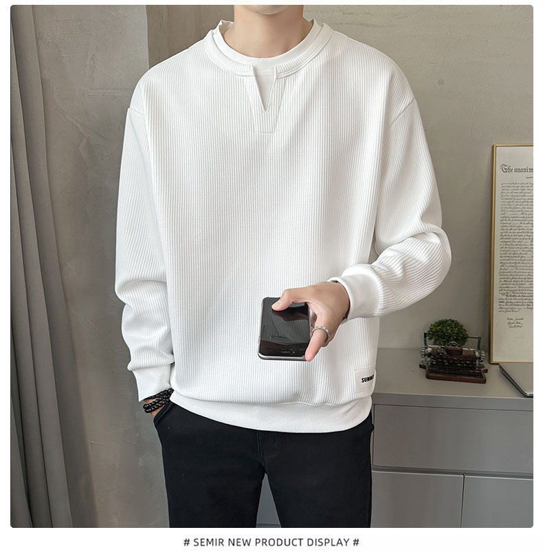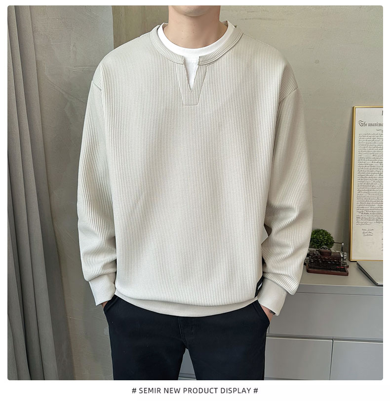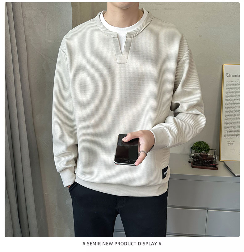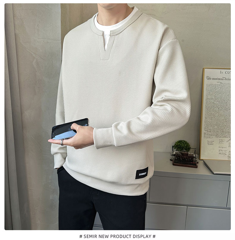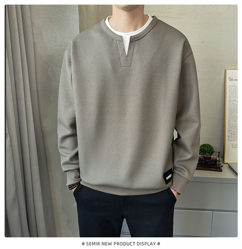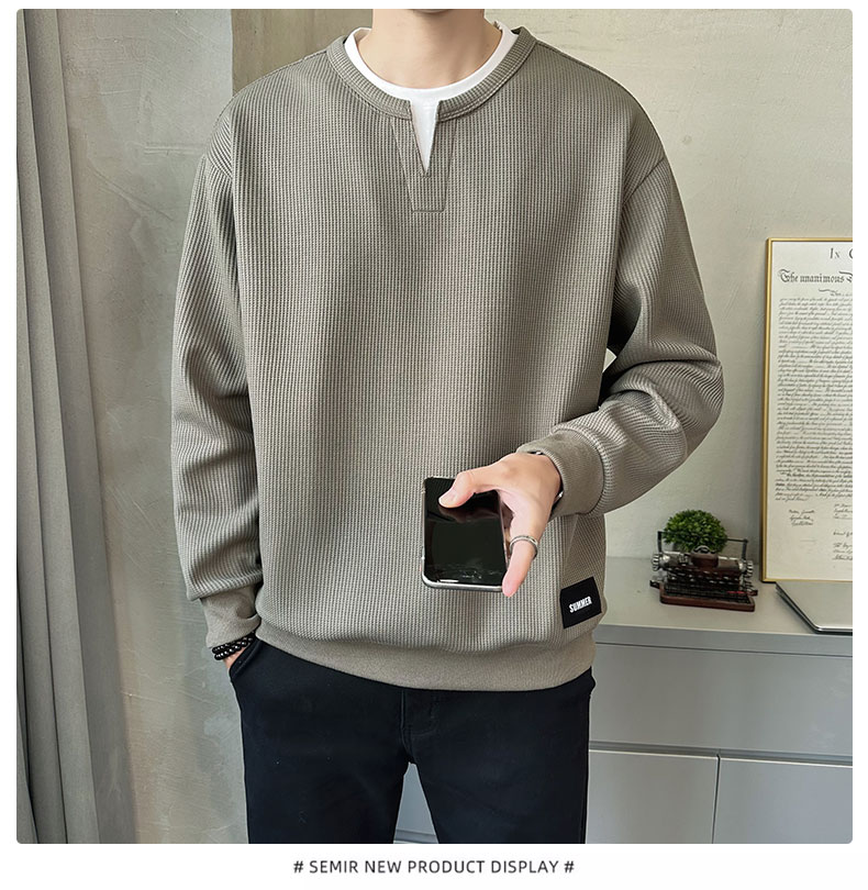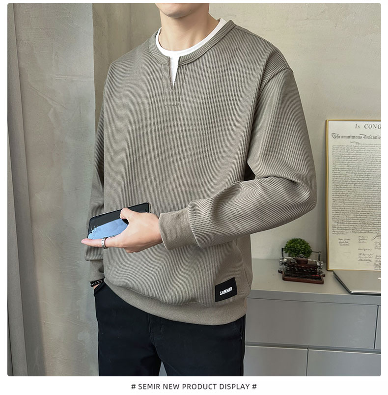 Designed Two-In-One Men's Sweatshirt Without Hood, Long-Sleeve T-Shirt, Spring and Autumn Trendy Brand Casual Versatile Men's Top