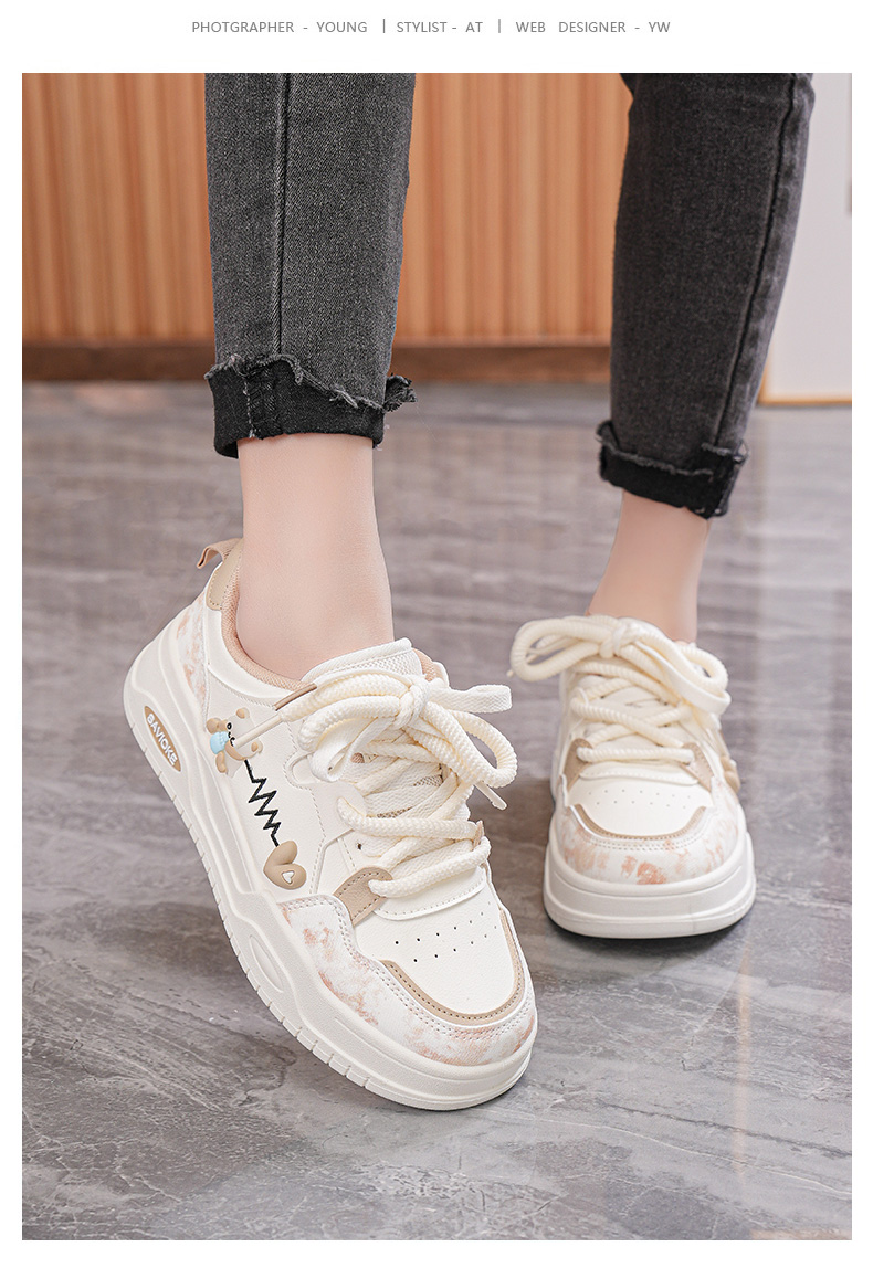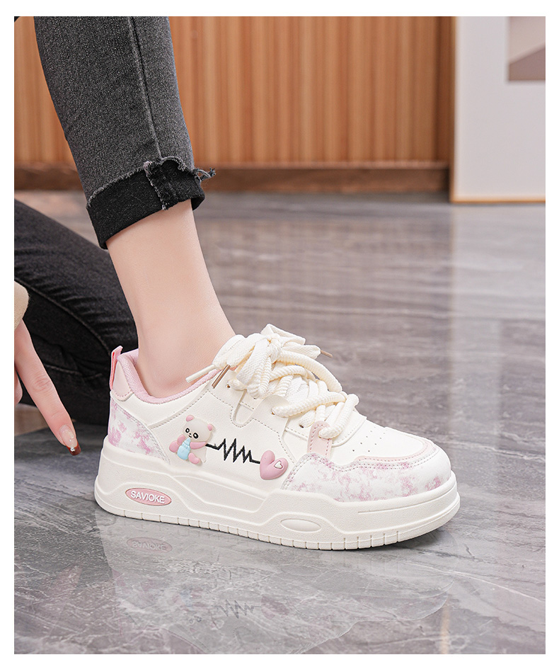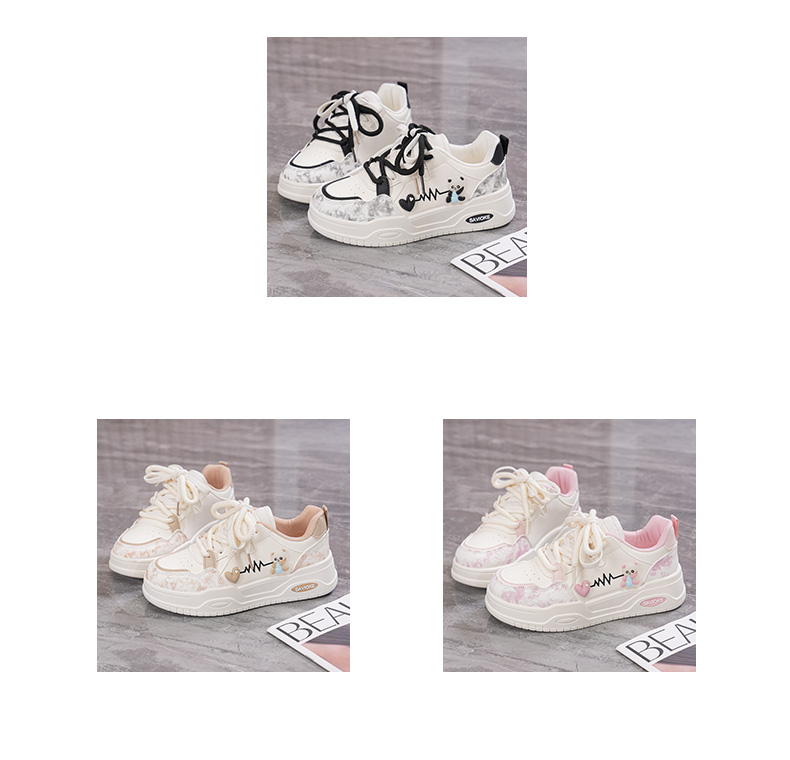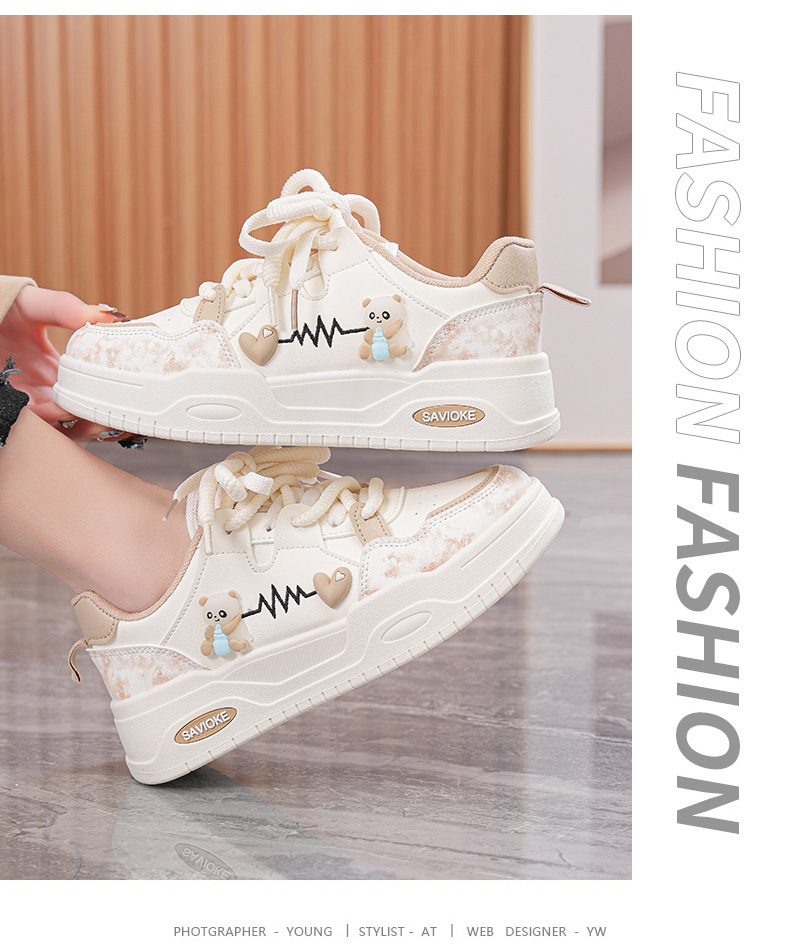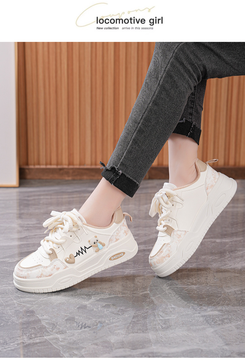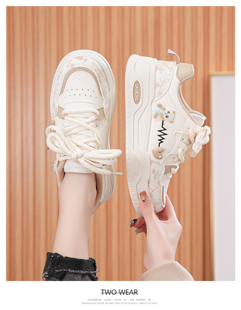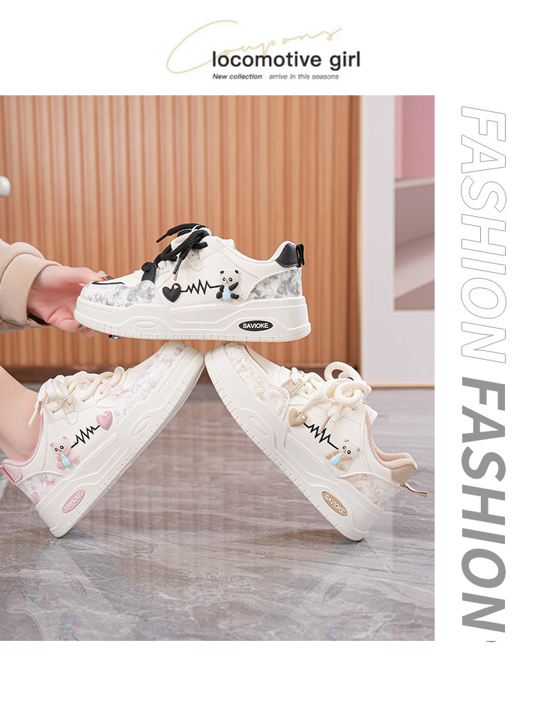 White Sneakers for Women, 2025 Autumn New Popular Style, Versatile Student Casual Sports Shoes with Heart and Bear Design, Niche Korean Style Sneakers