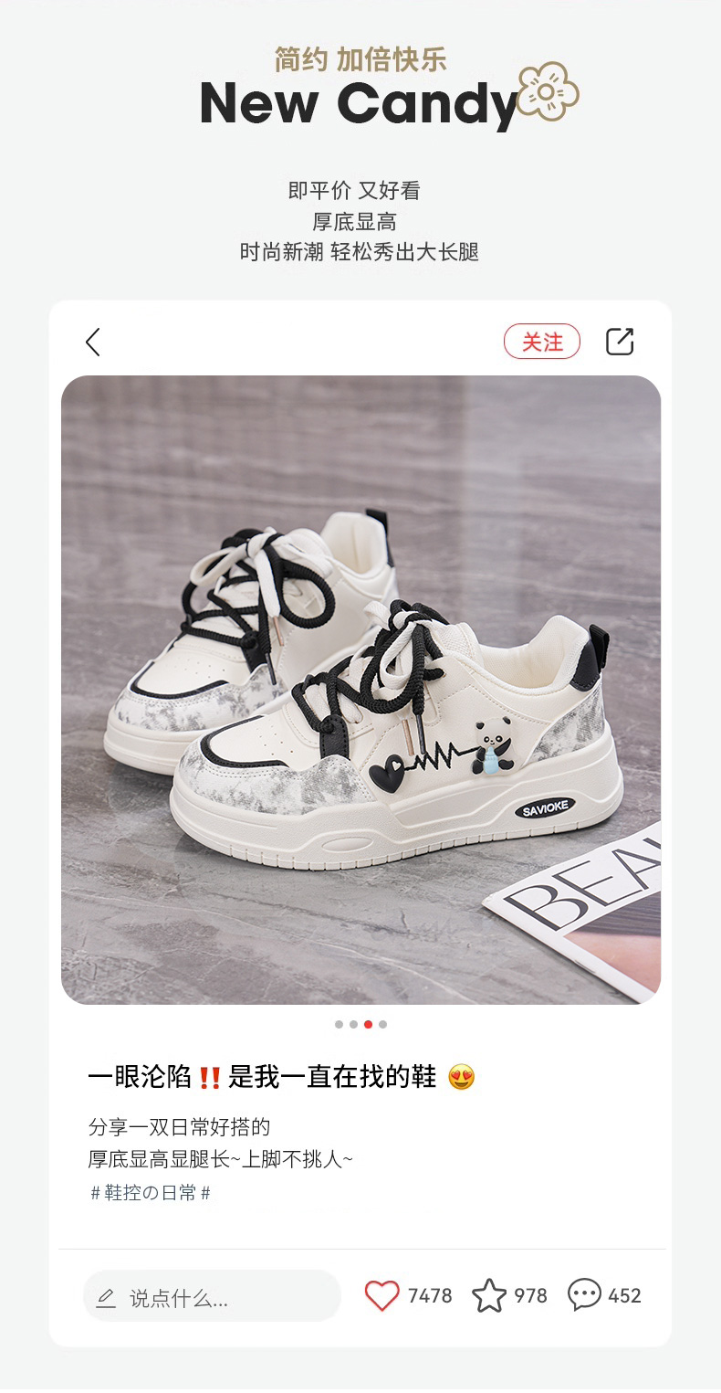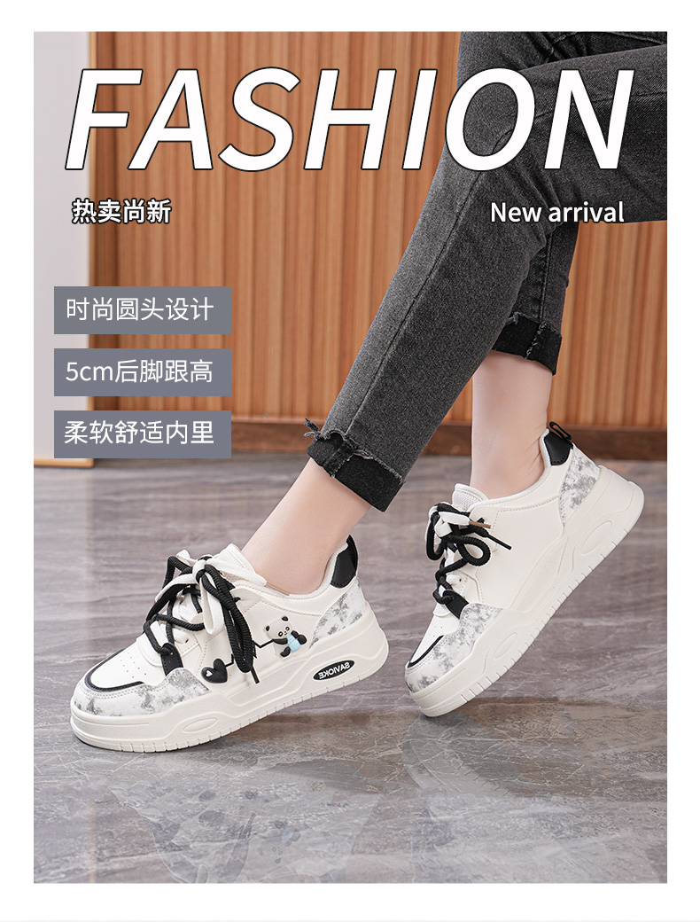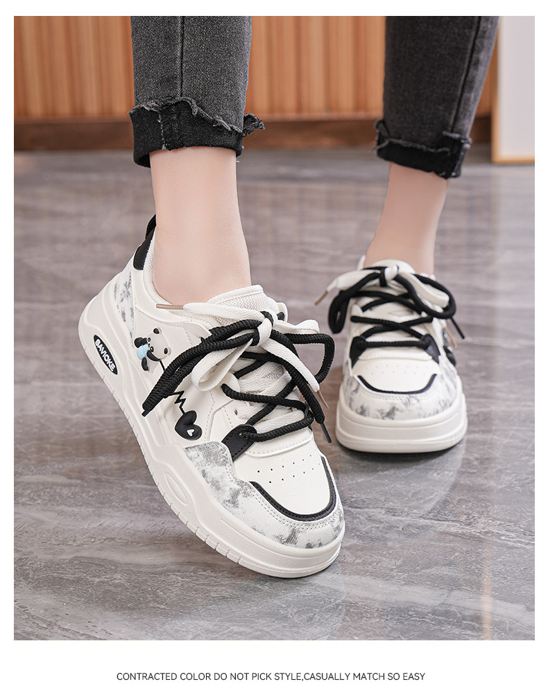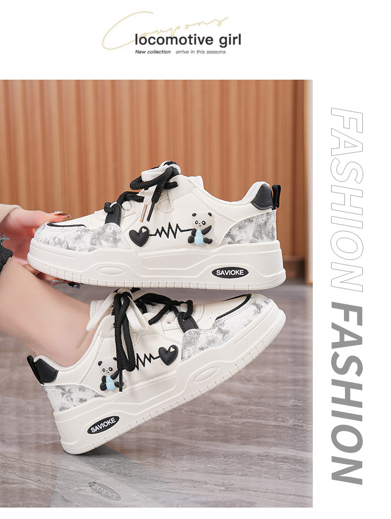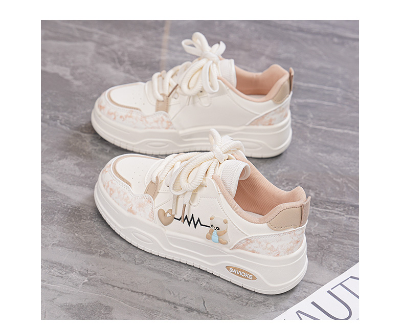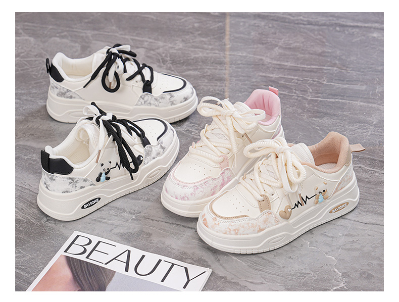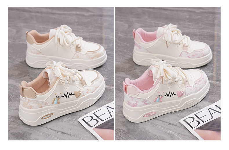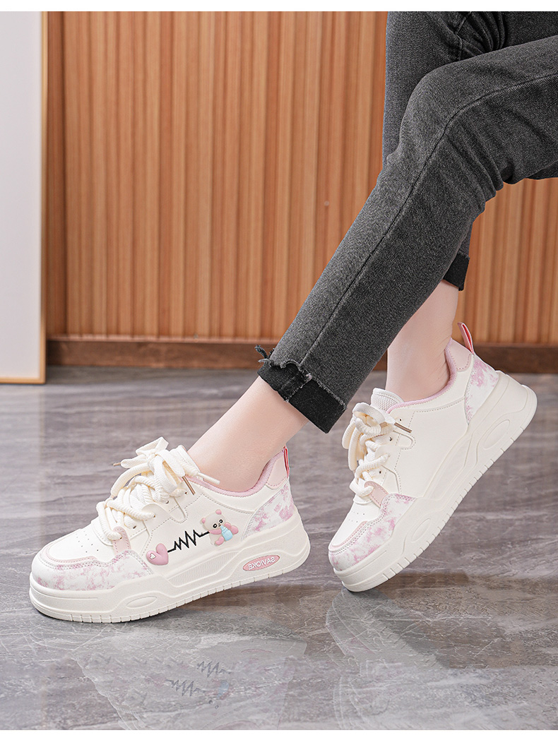 White Sneakers for Women, 2025 Autumn New Popular Style, Versatile Student Casual Sports Shoes with Heart and Bear Design, Niche Korean Style Sneakers