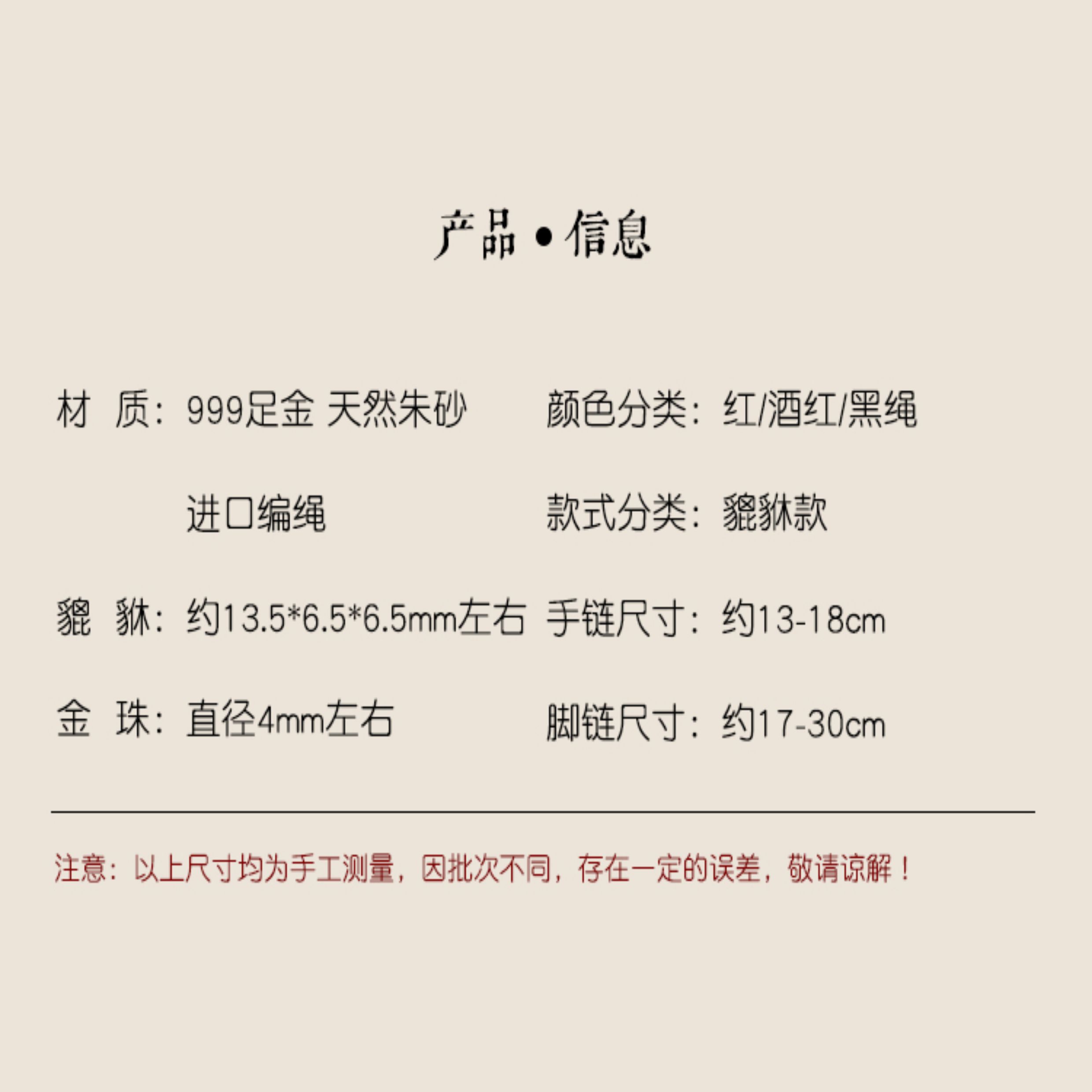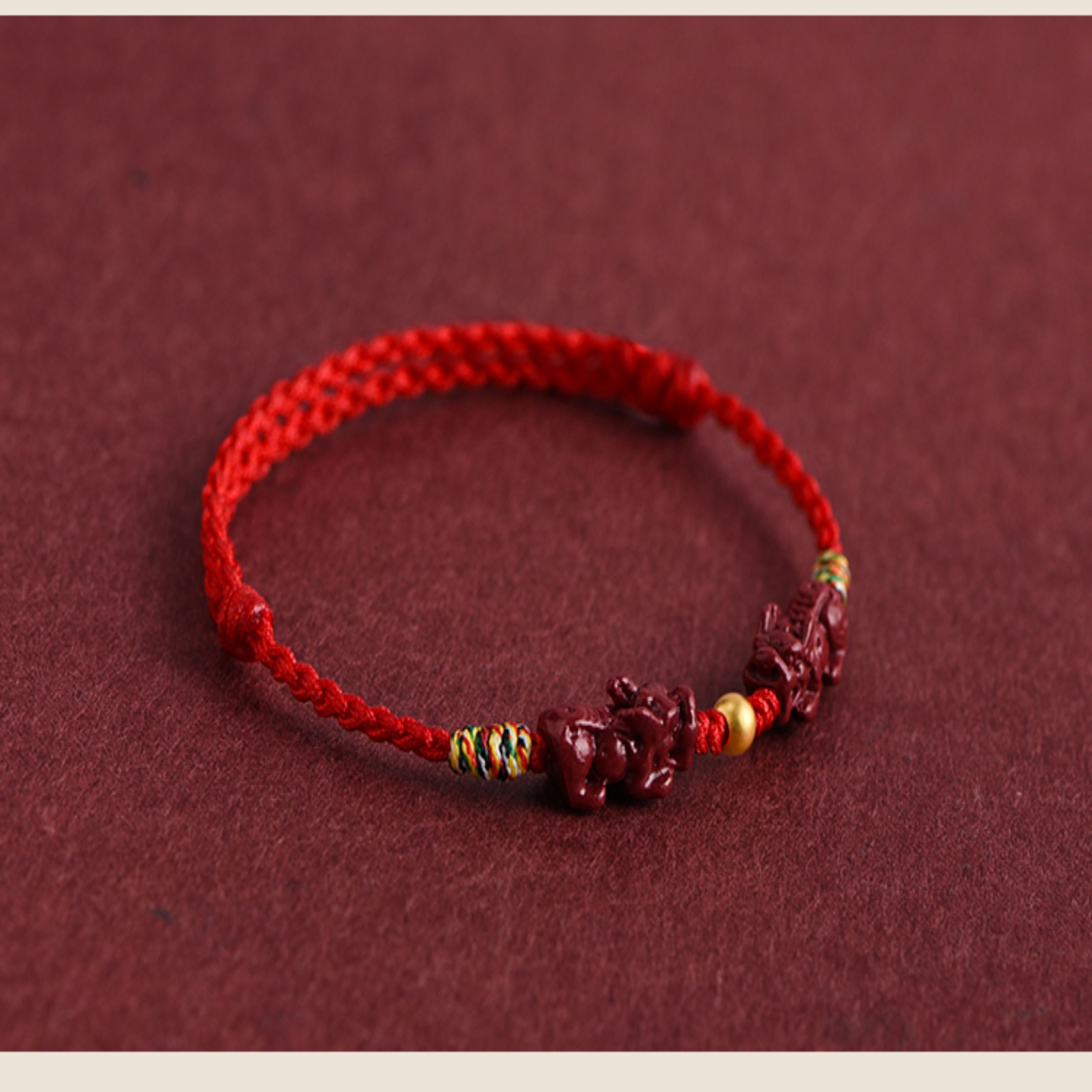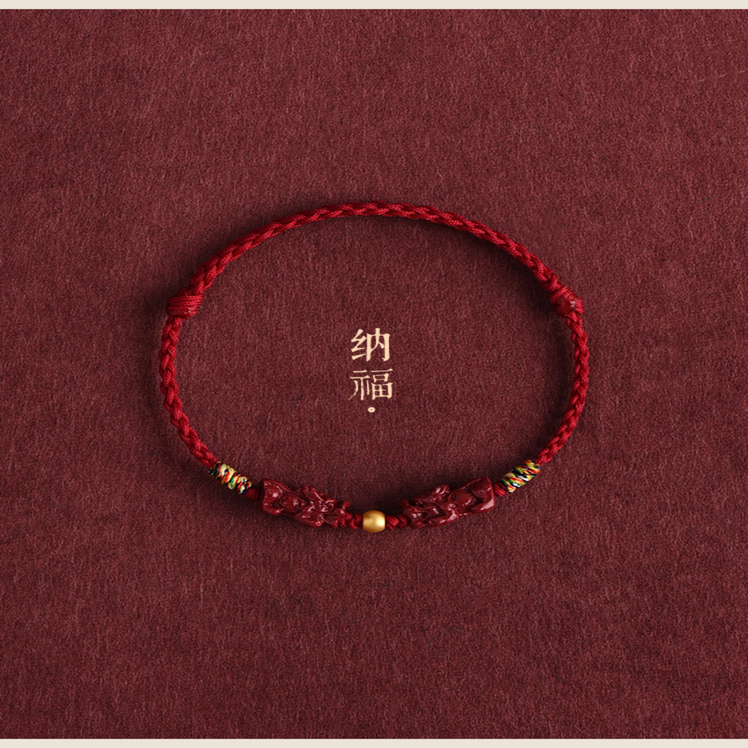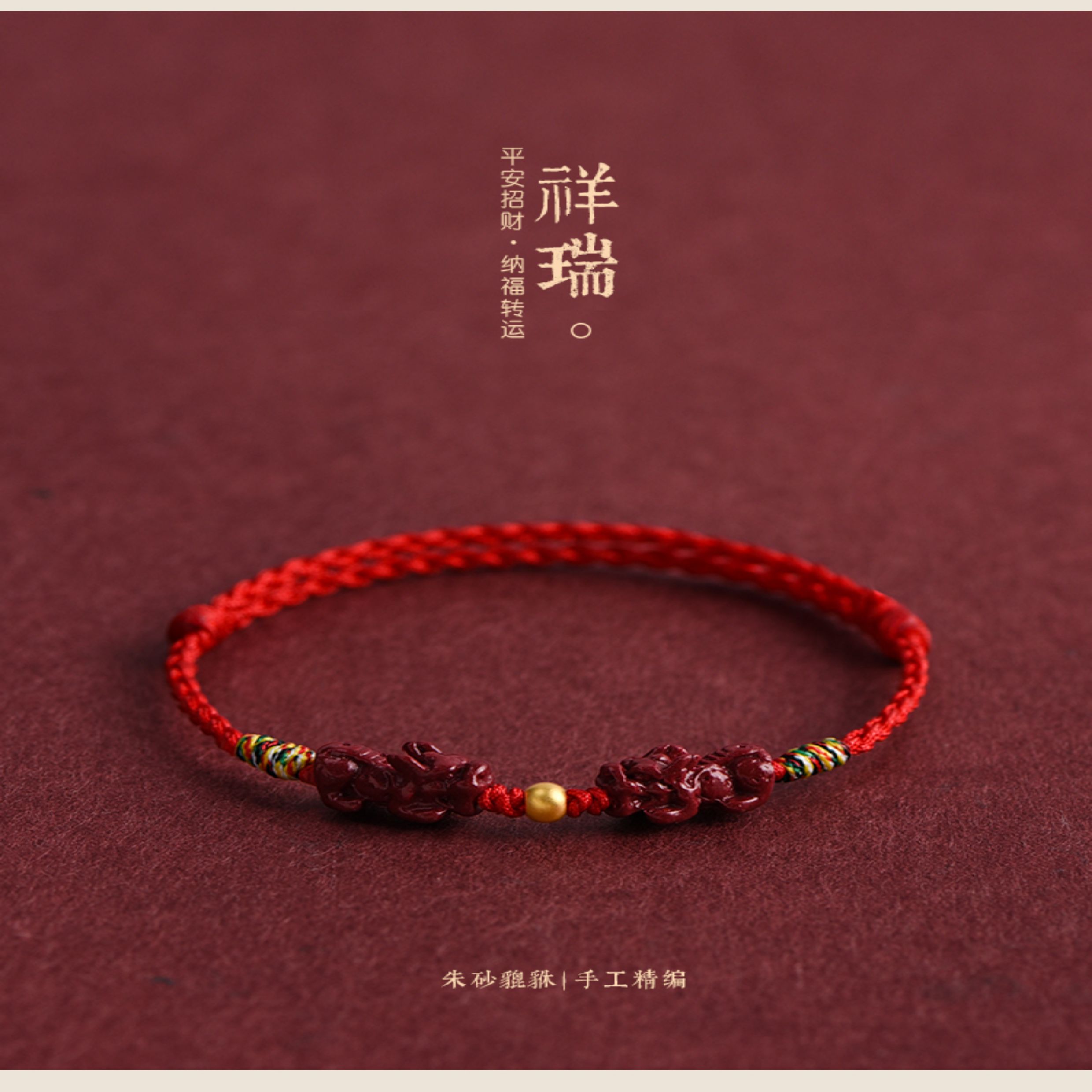 Putuo Mountain 999 Foot Gold Transfer Beads Cinnabar Pixiu Red Rope Bracelet Rope Hand-woven for Men and Women