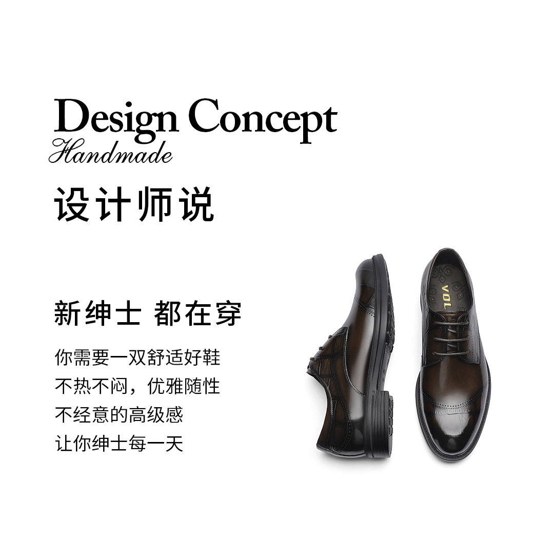 Volo/Rhinoceros Men's Formal Leather Shoes Men's Genuine Leather Business Shoes Men's Suit Pointed Toe Height-Increasing Derby Shoes