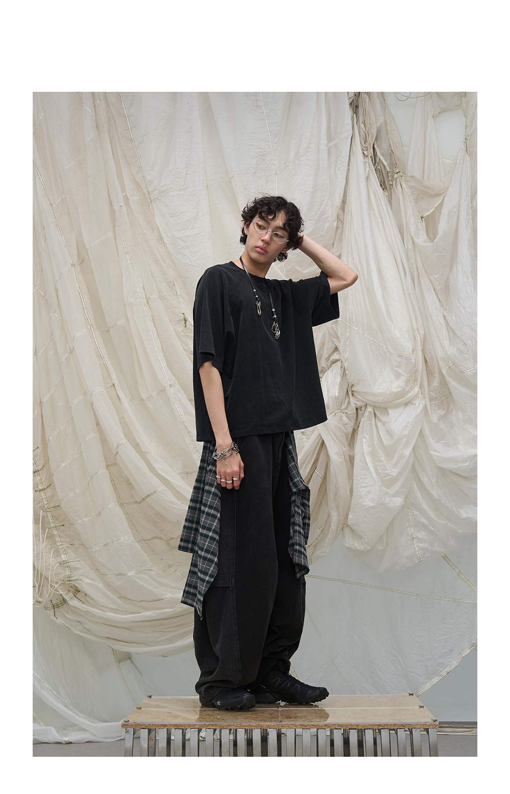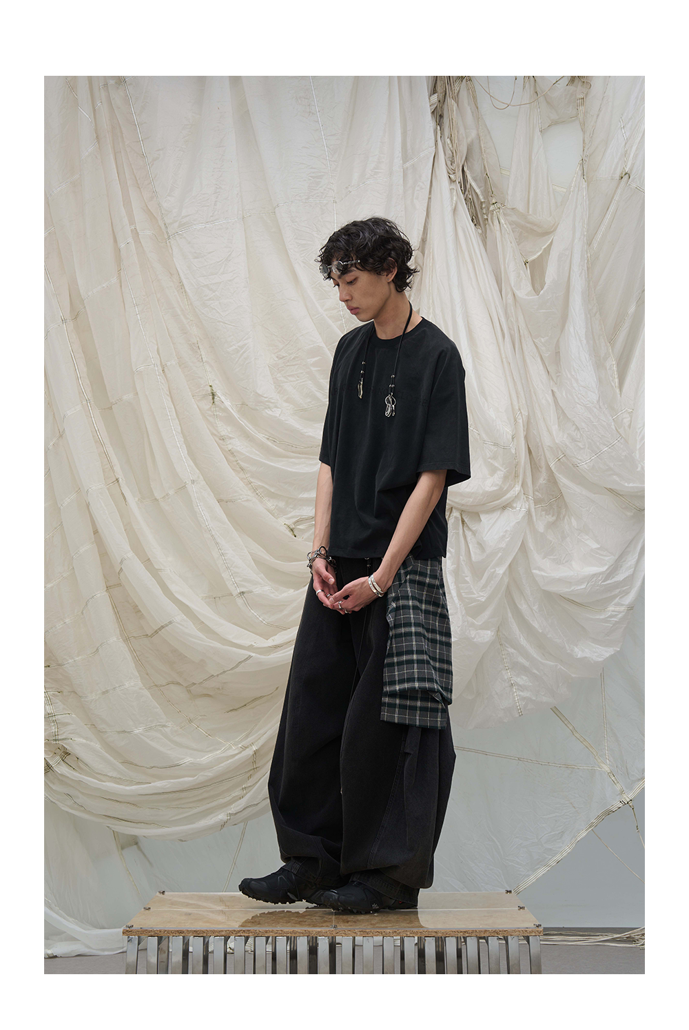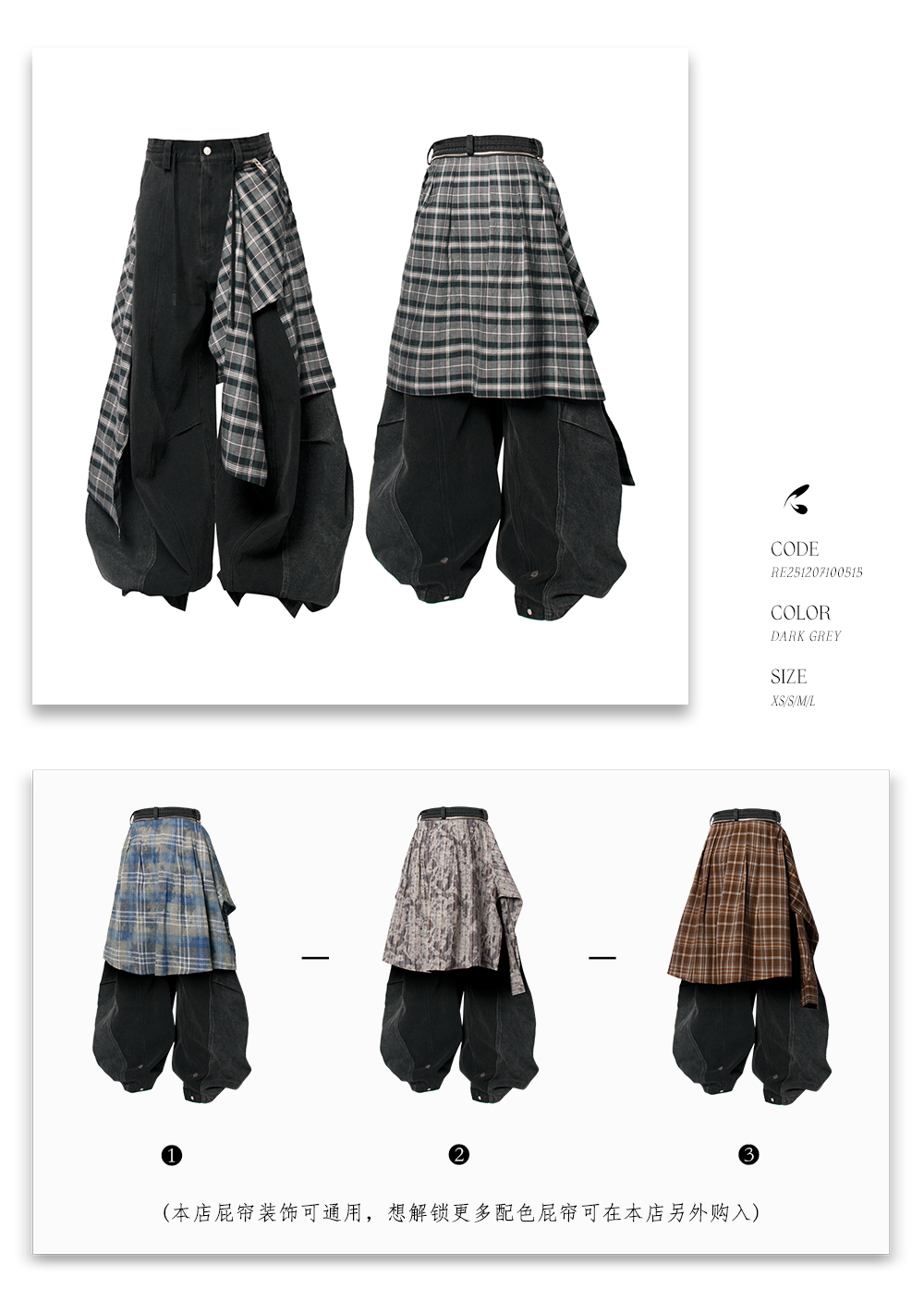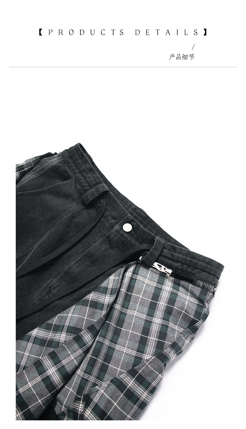 【Celebrity Style】Relabel (Three-Dimensional Extension) Detachable Plaid Panel Washed Oversized Jeans