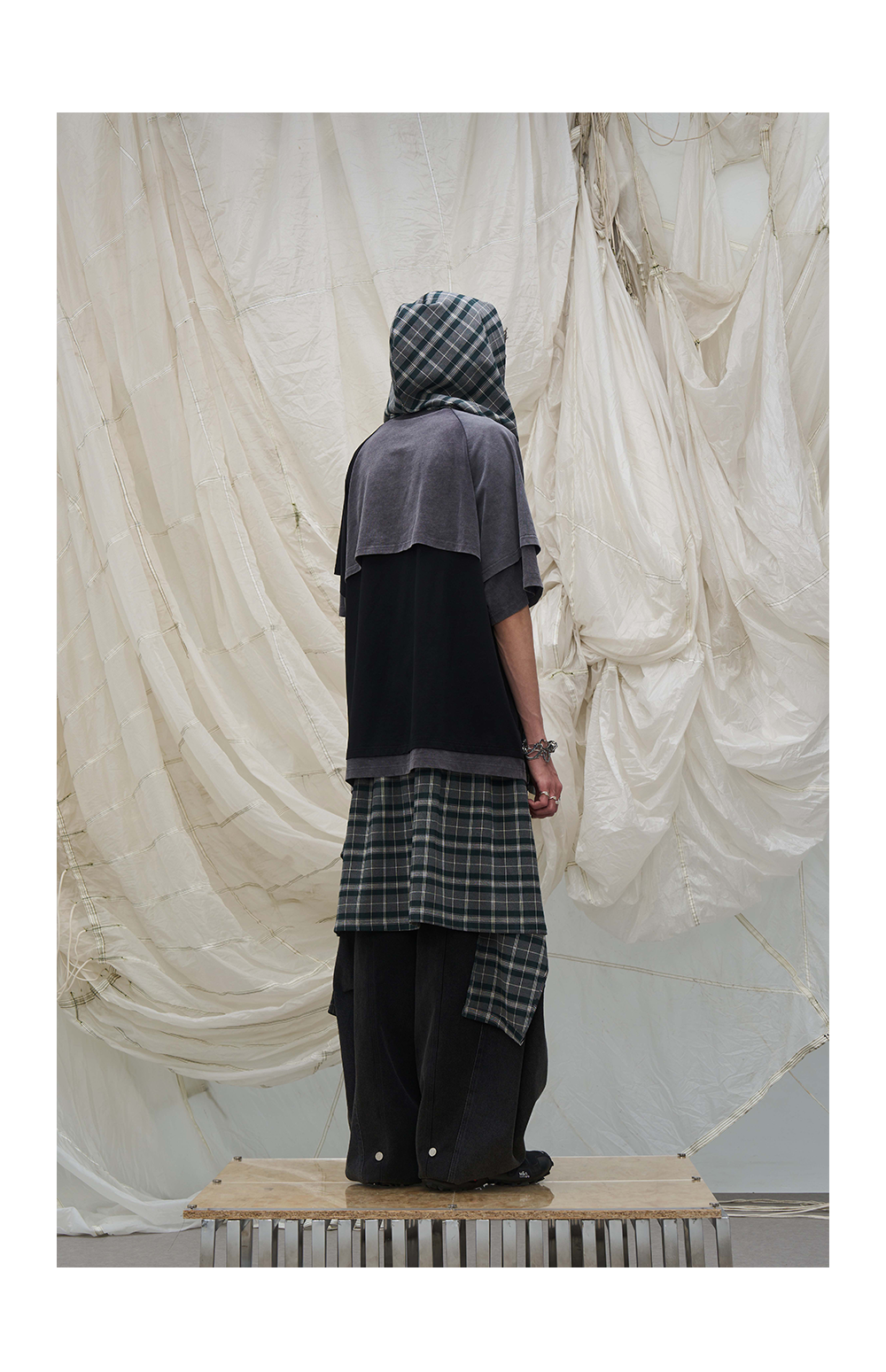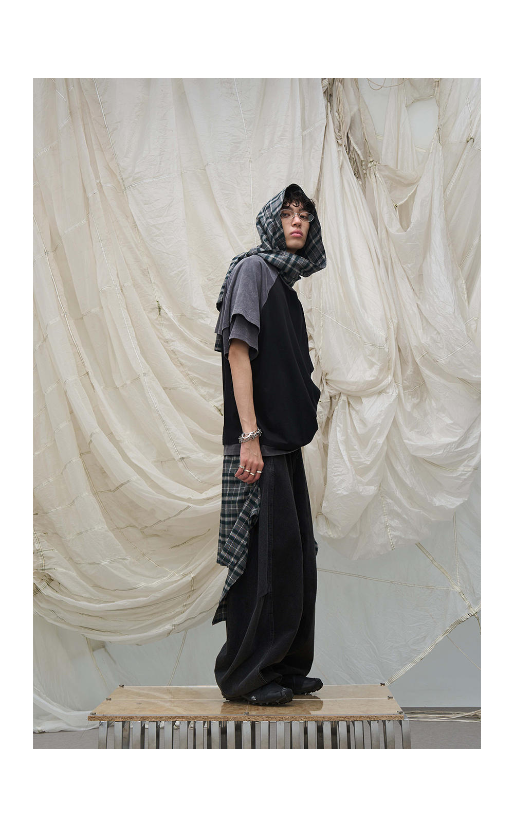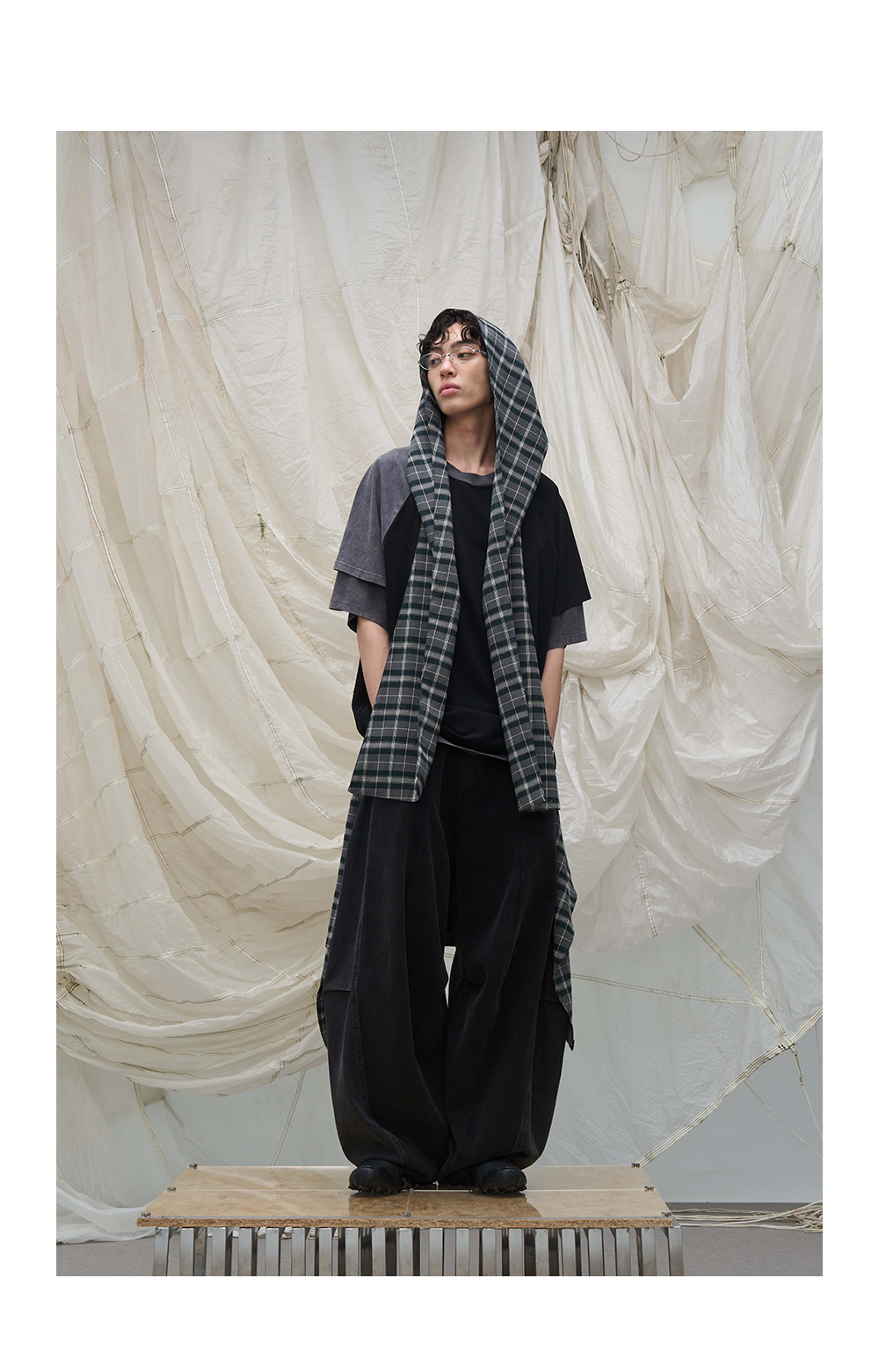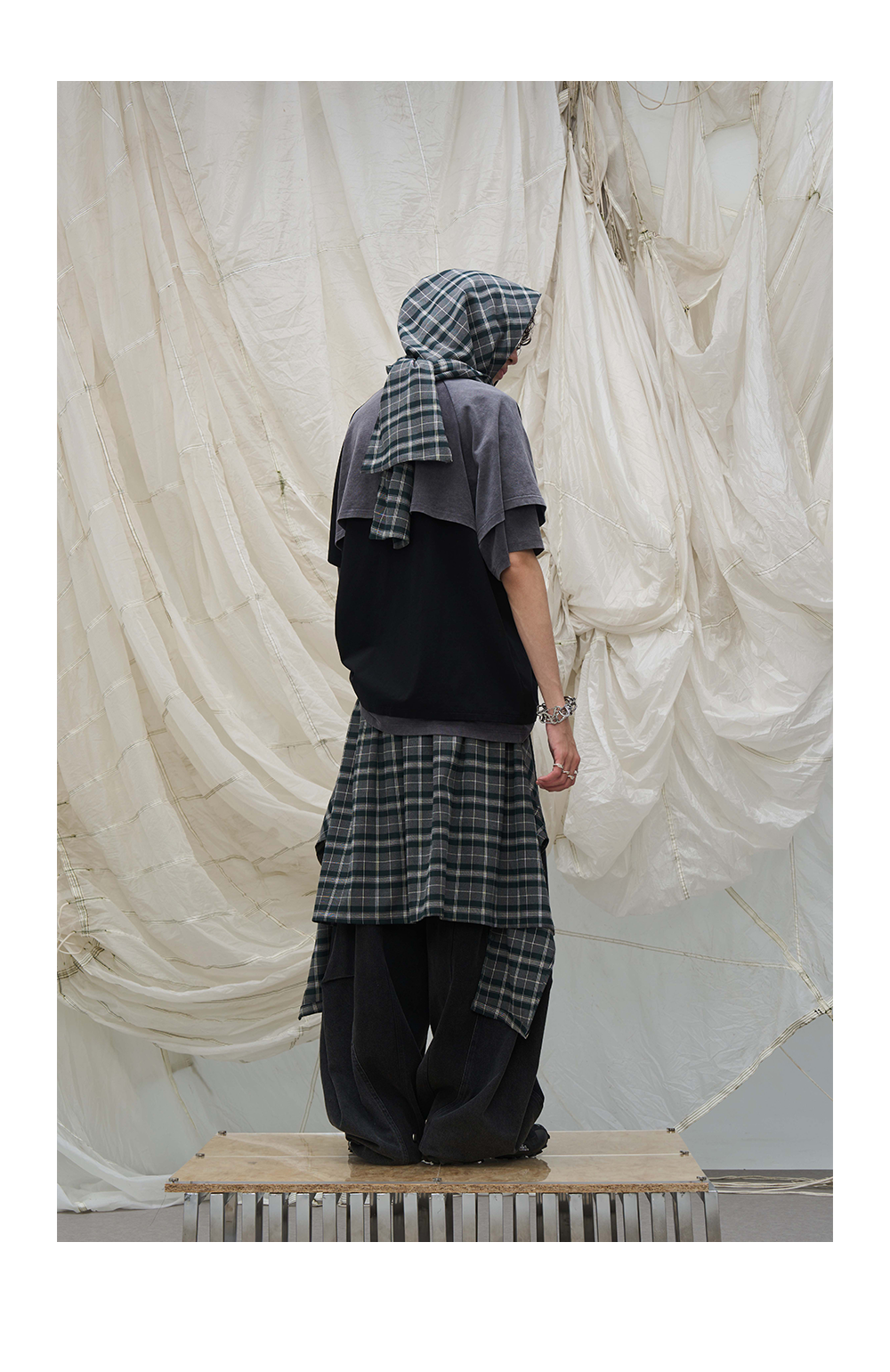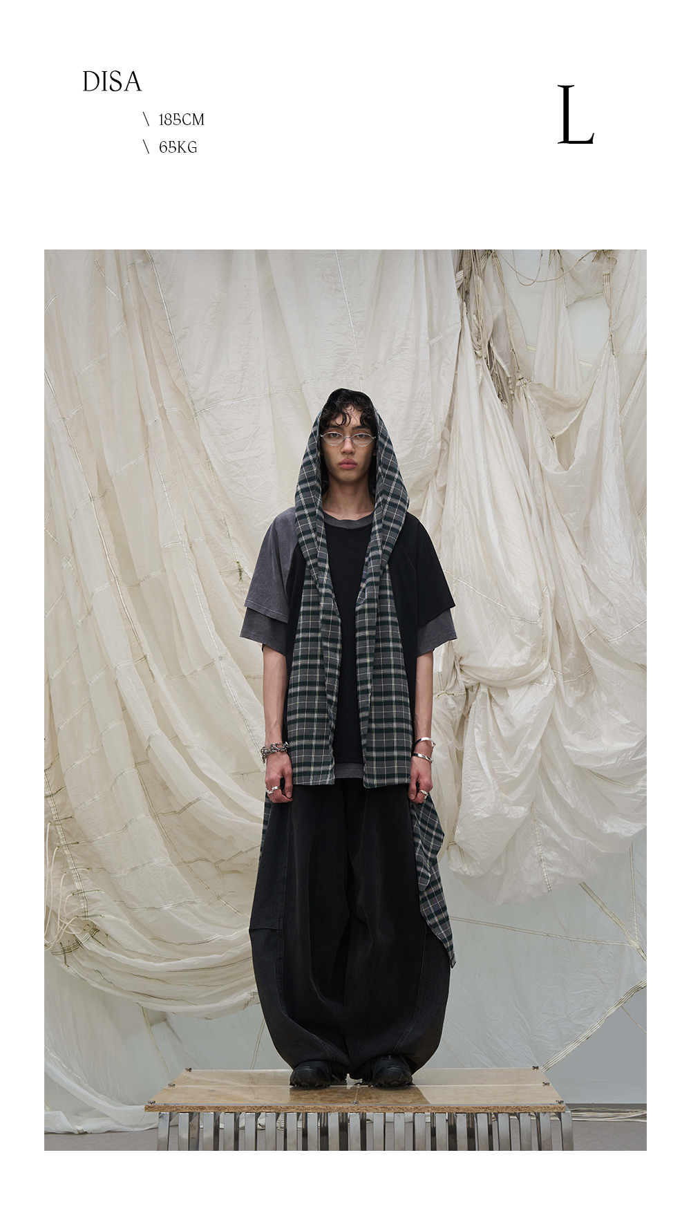 【Celebrity Style】Relabel (Three-Dimensional Extension) Detachable Plaid Panel Washed Oversized Jeans