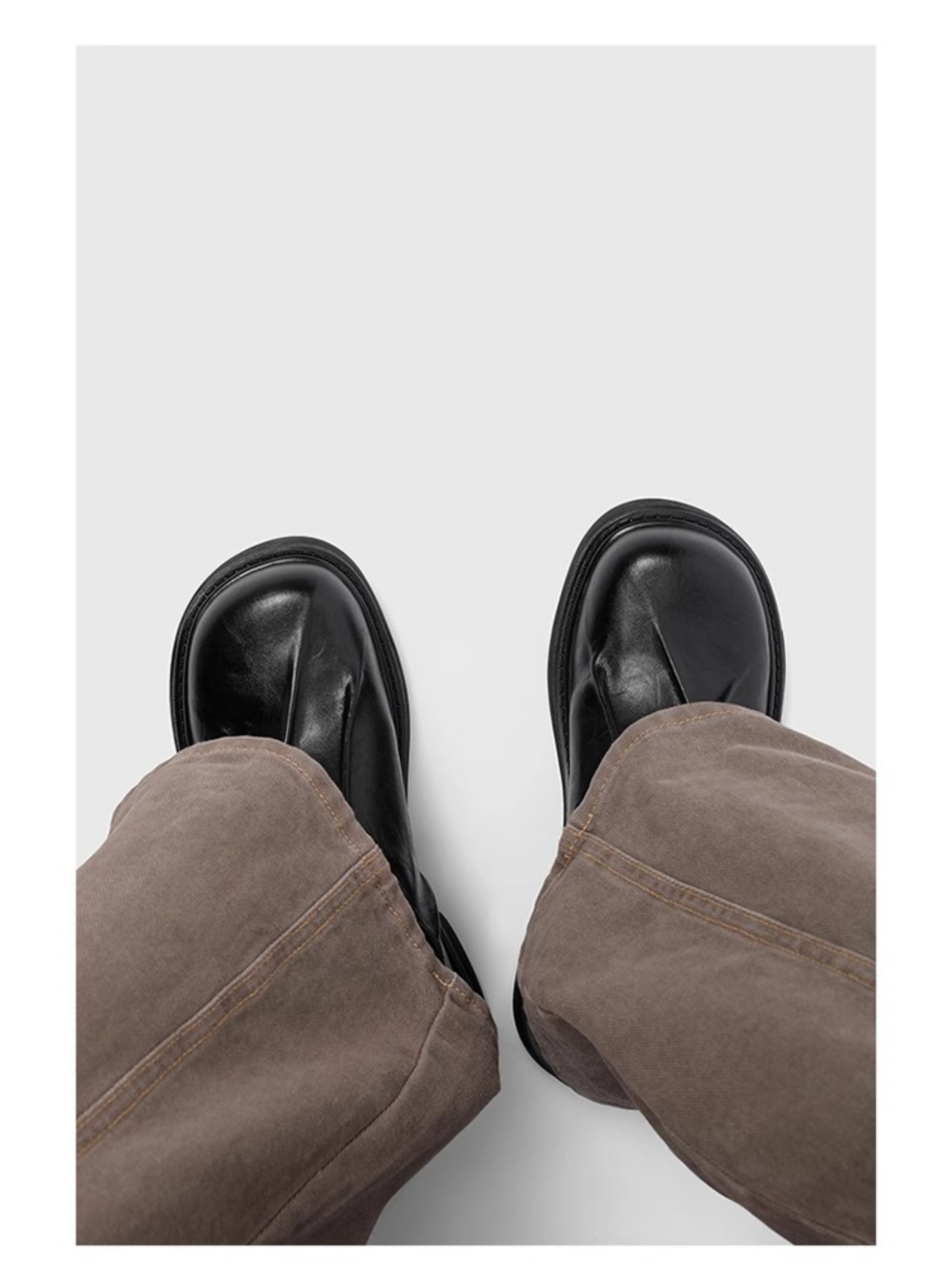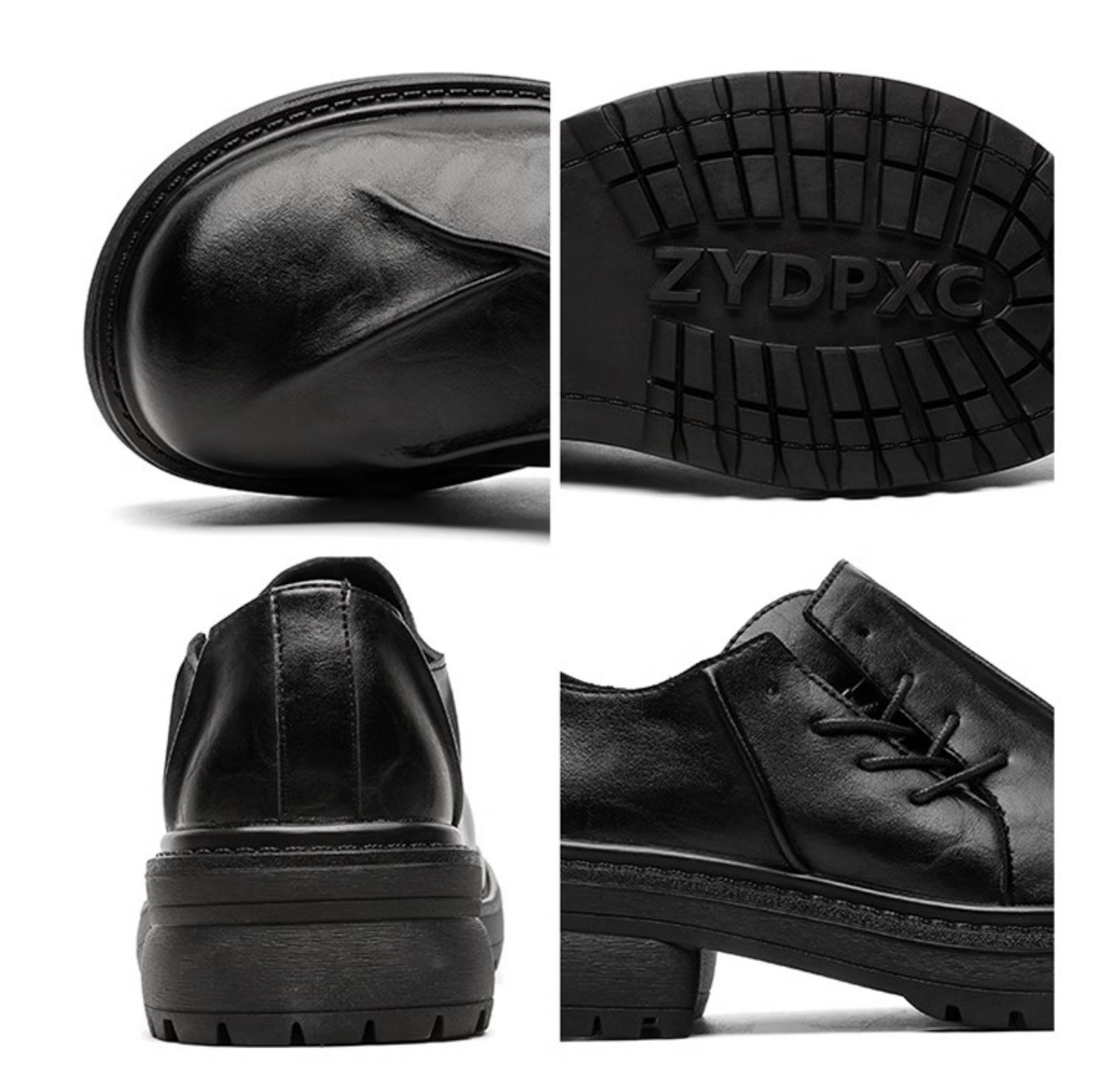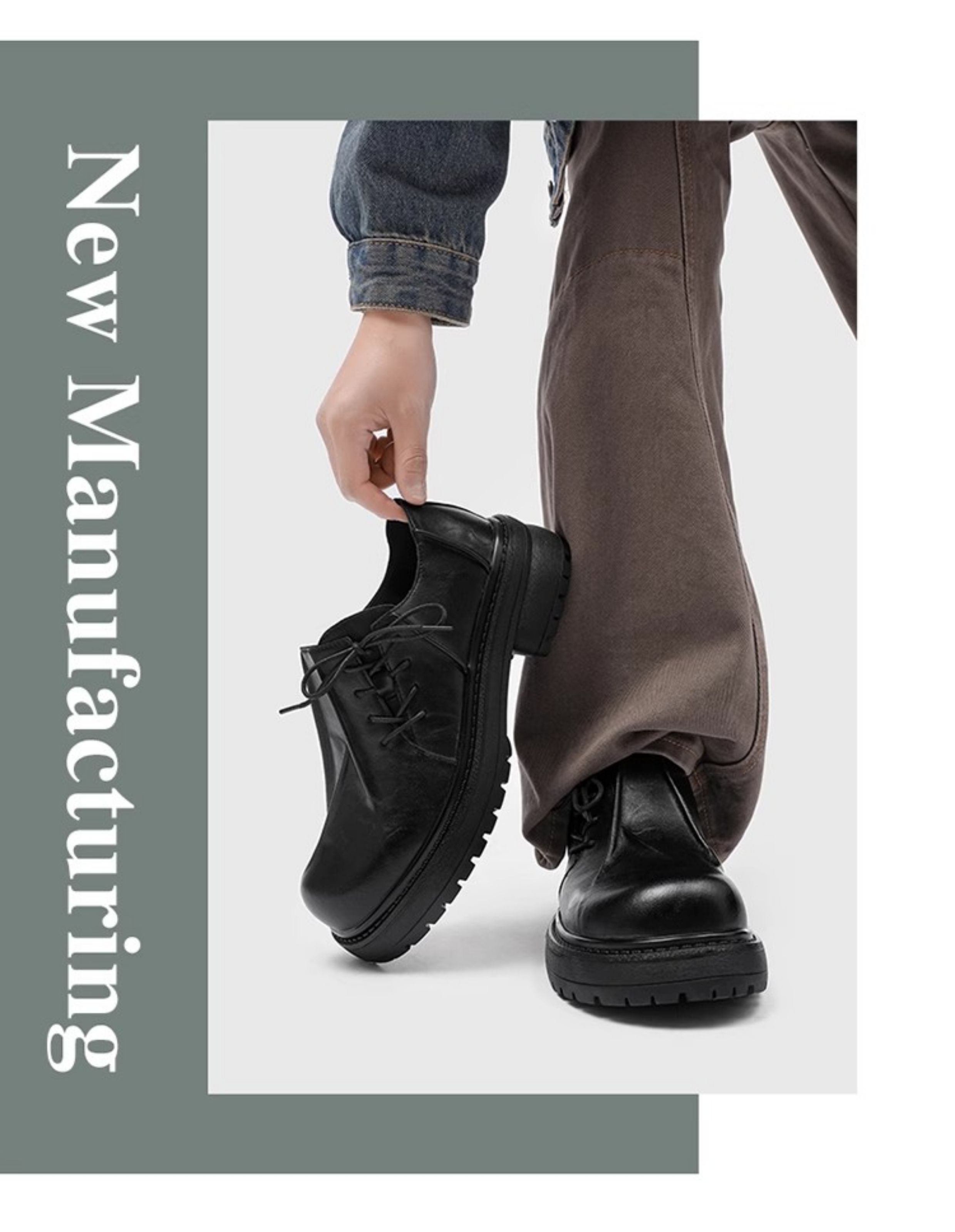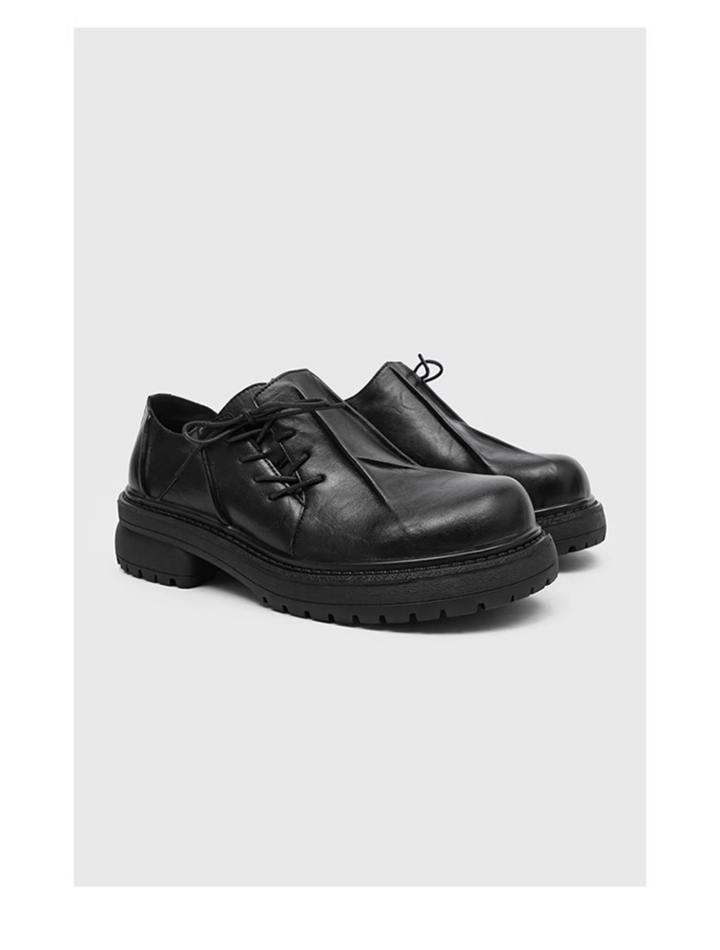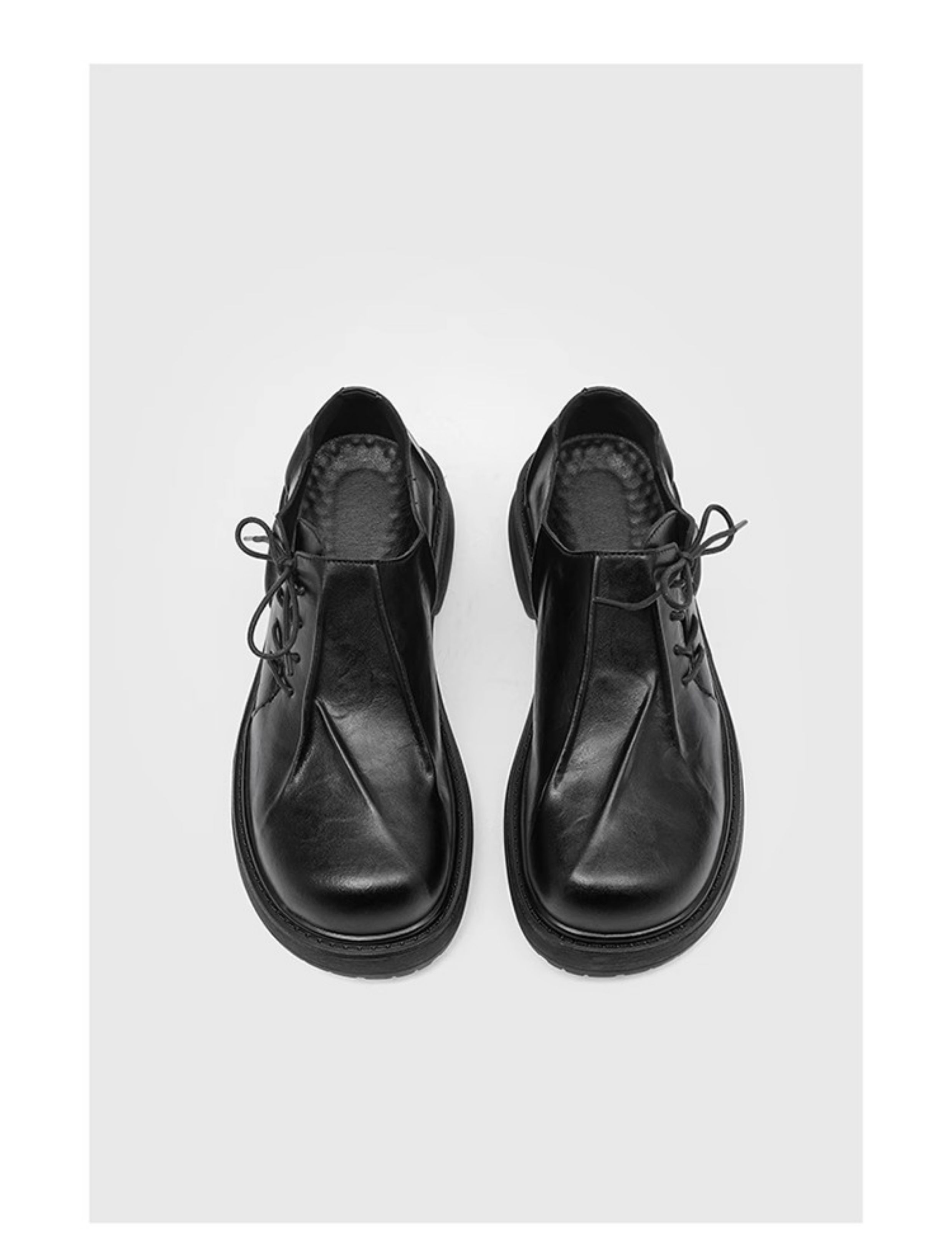 Cleanfit Derby Shoes for Men, Black Large Leather Shoes, British Style, Niche Pleated High-End Commuter Trendy Shoes