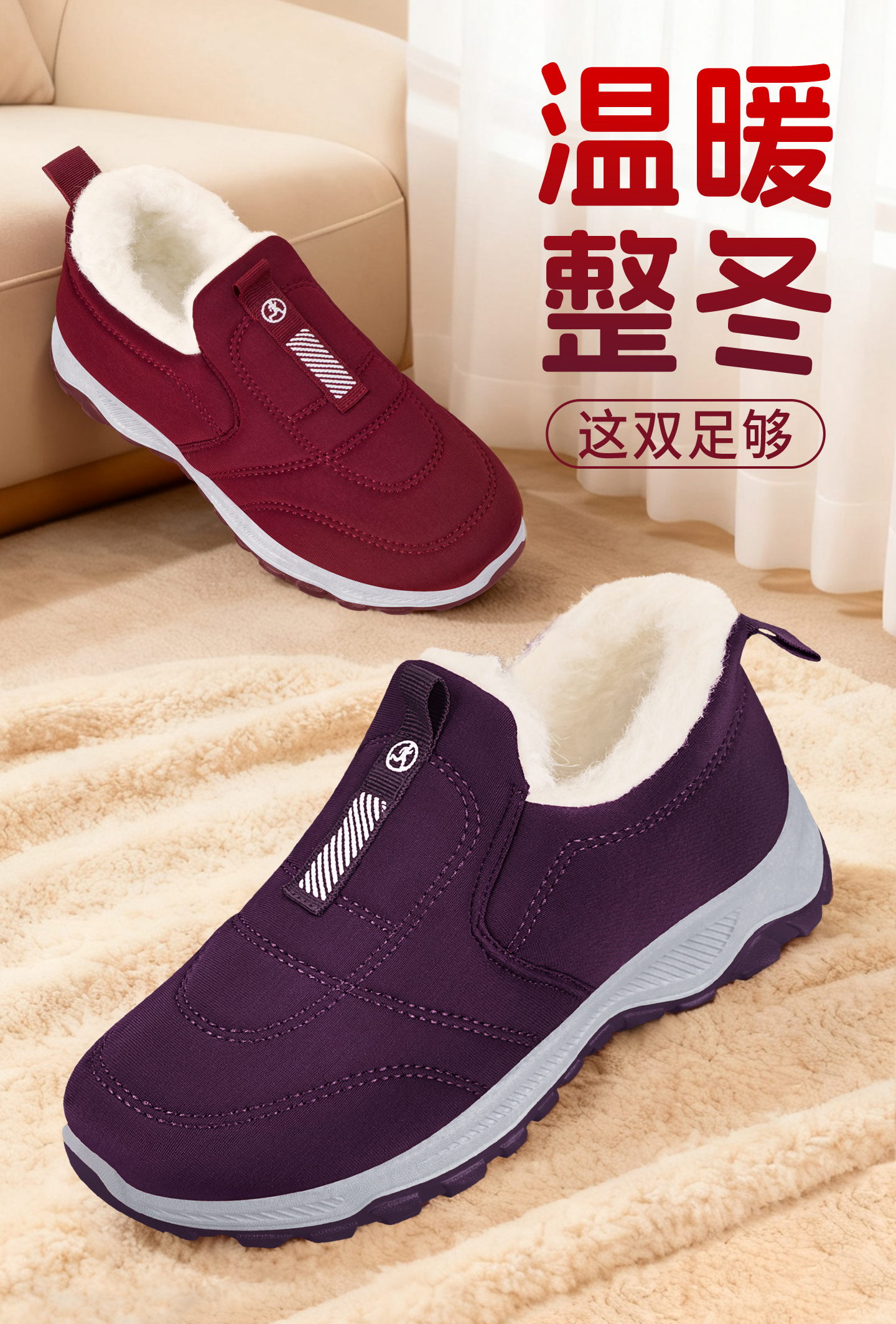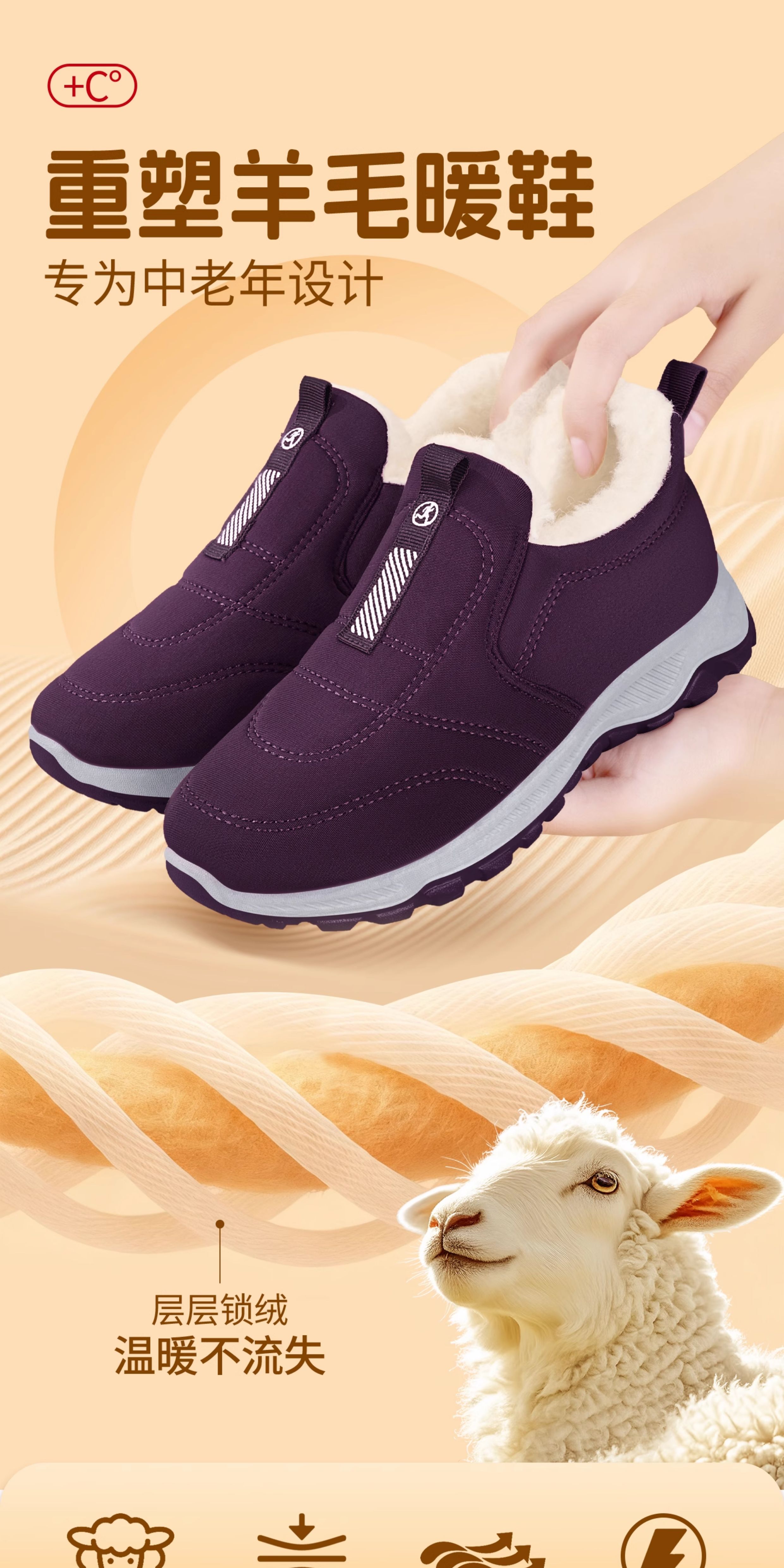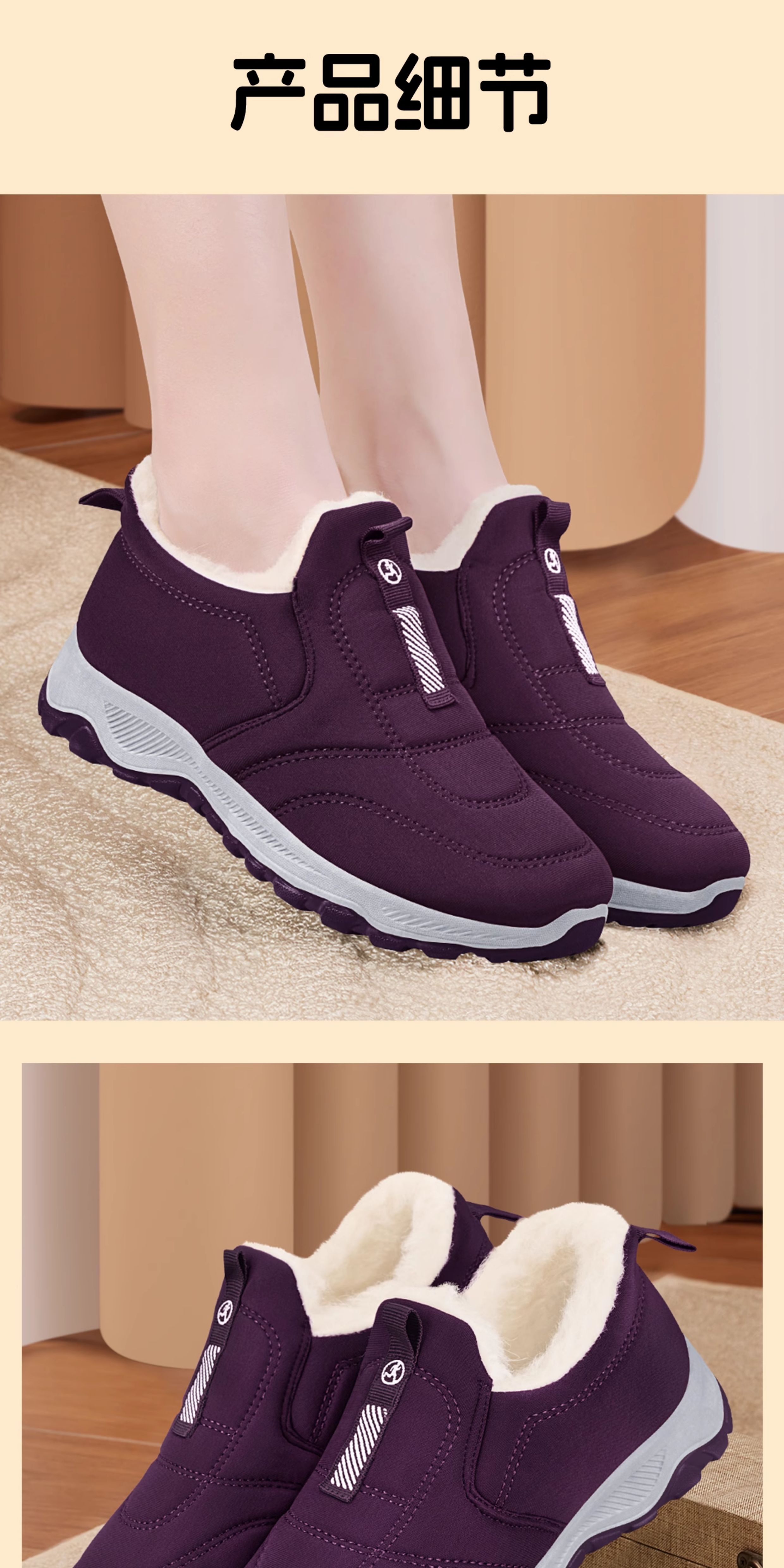 Old Beijing Cotton Shoes for Women, Winter Fleece-Lined Wool Warm Anti-Slip Snow Boots, New Thickened Cloth Shoes for Middle-Aged and Elderly Mothers