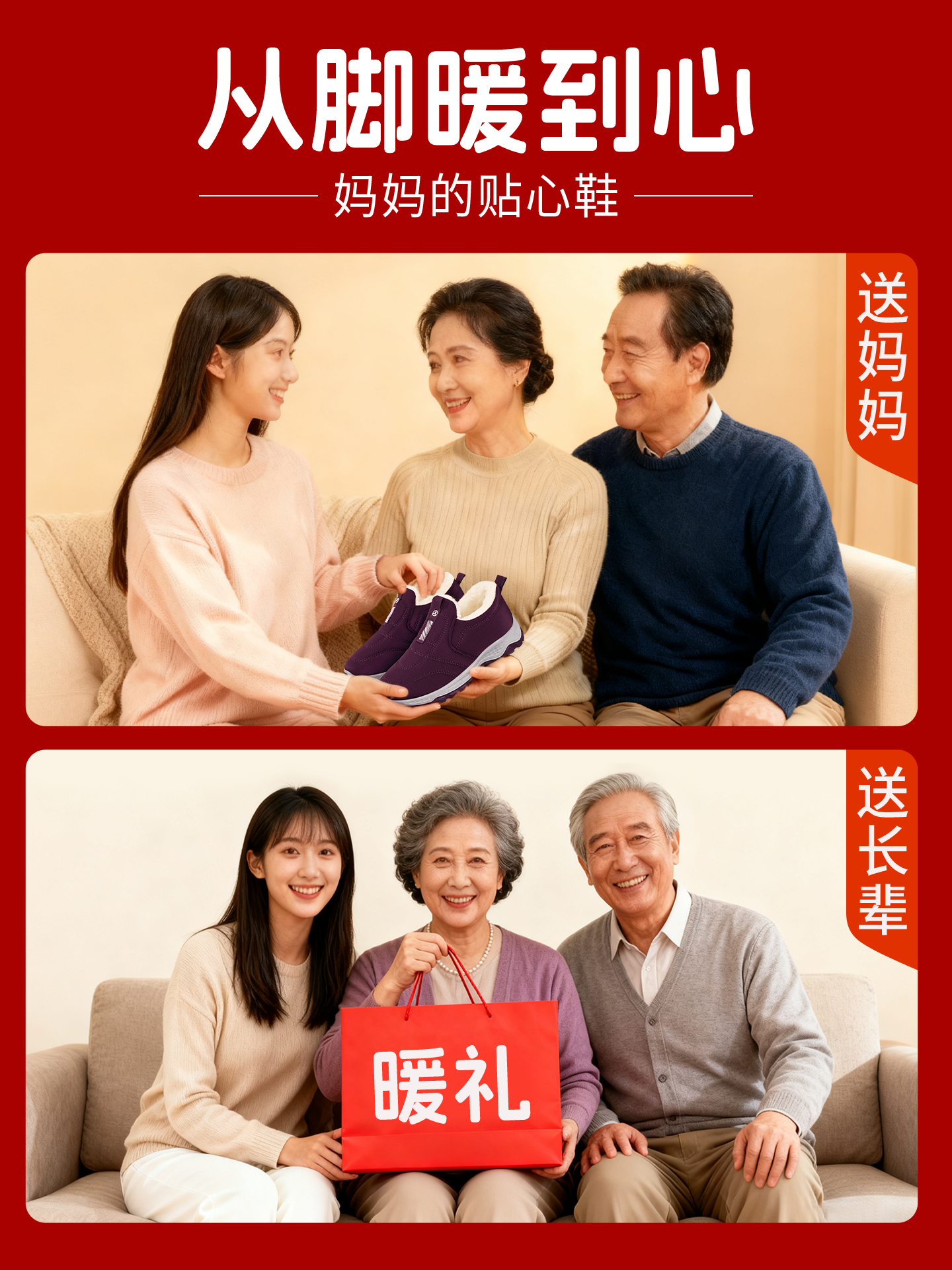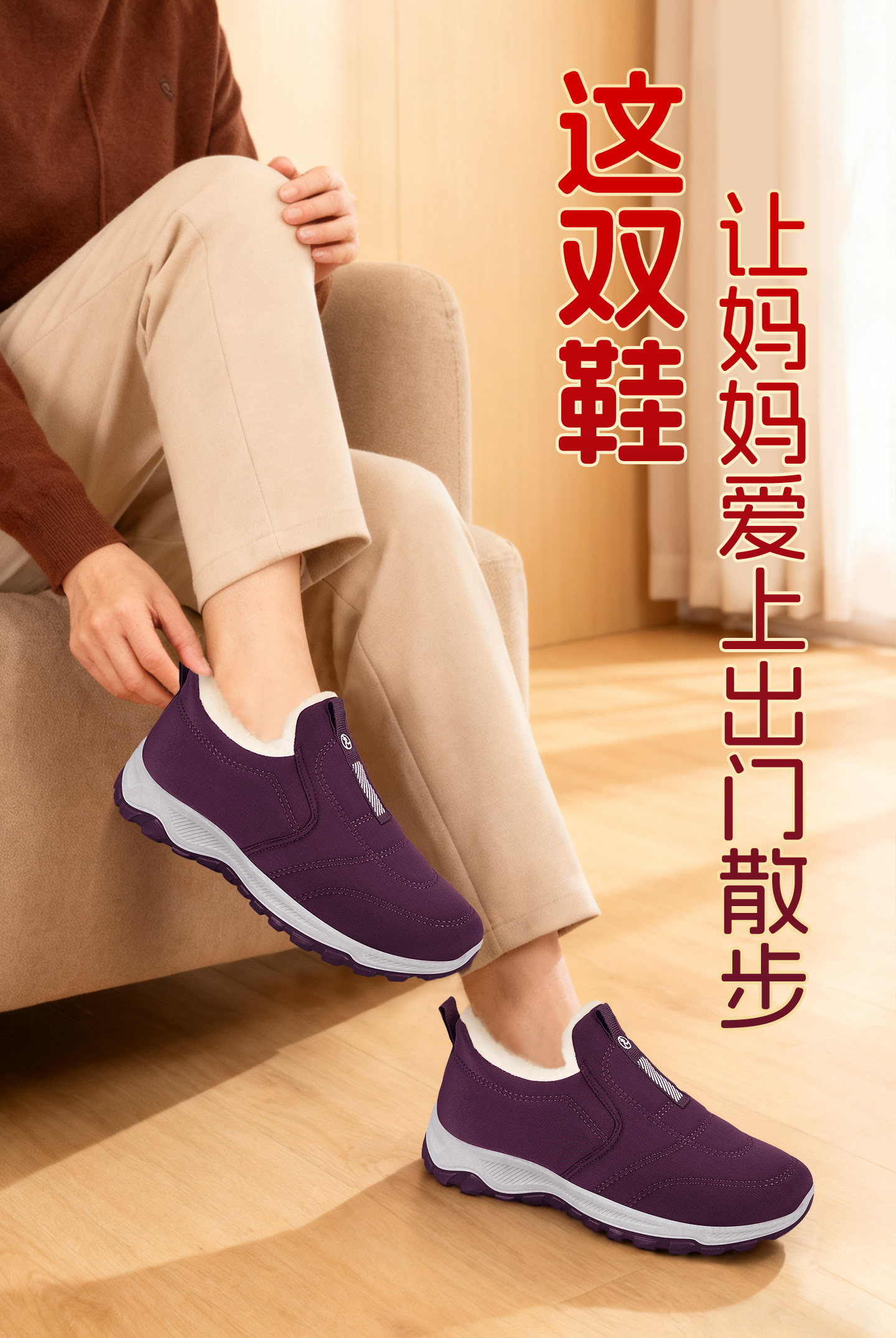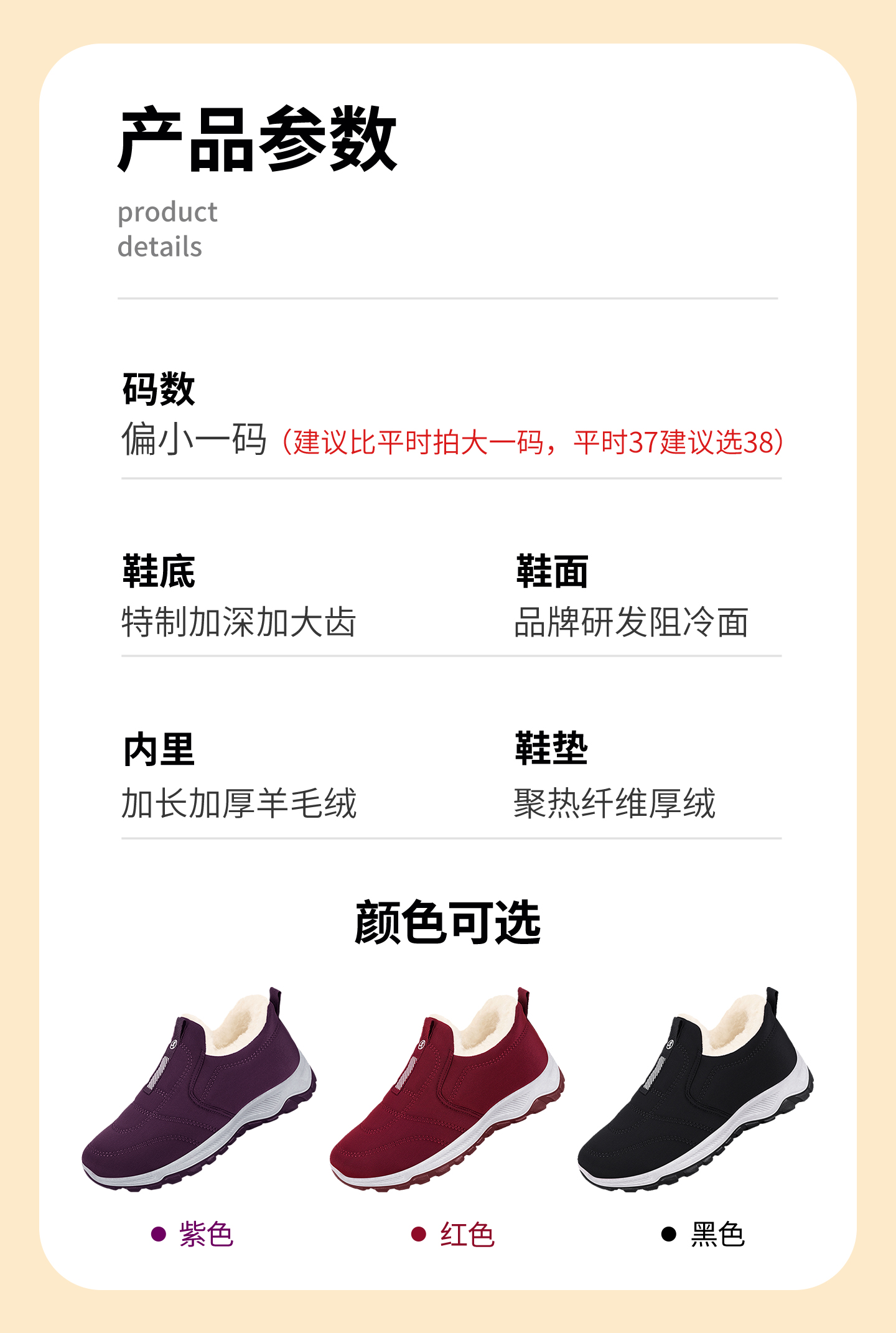 Old Beijing Cotton Shoes for Women, Winter Fleece-Lined Wool Warm Anti-Slip Snow Boots, New Thickened Cloth Shoes for Middle-Aged and Elderly Mothers