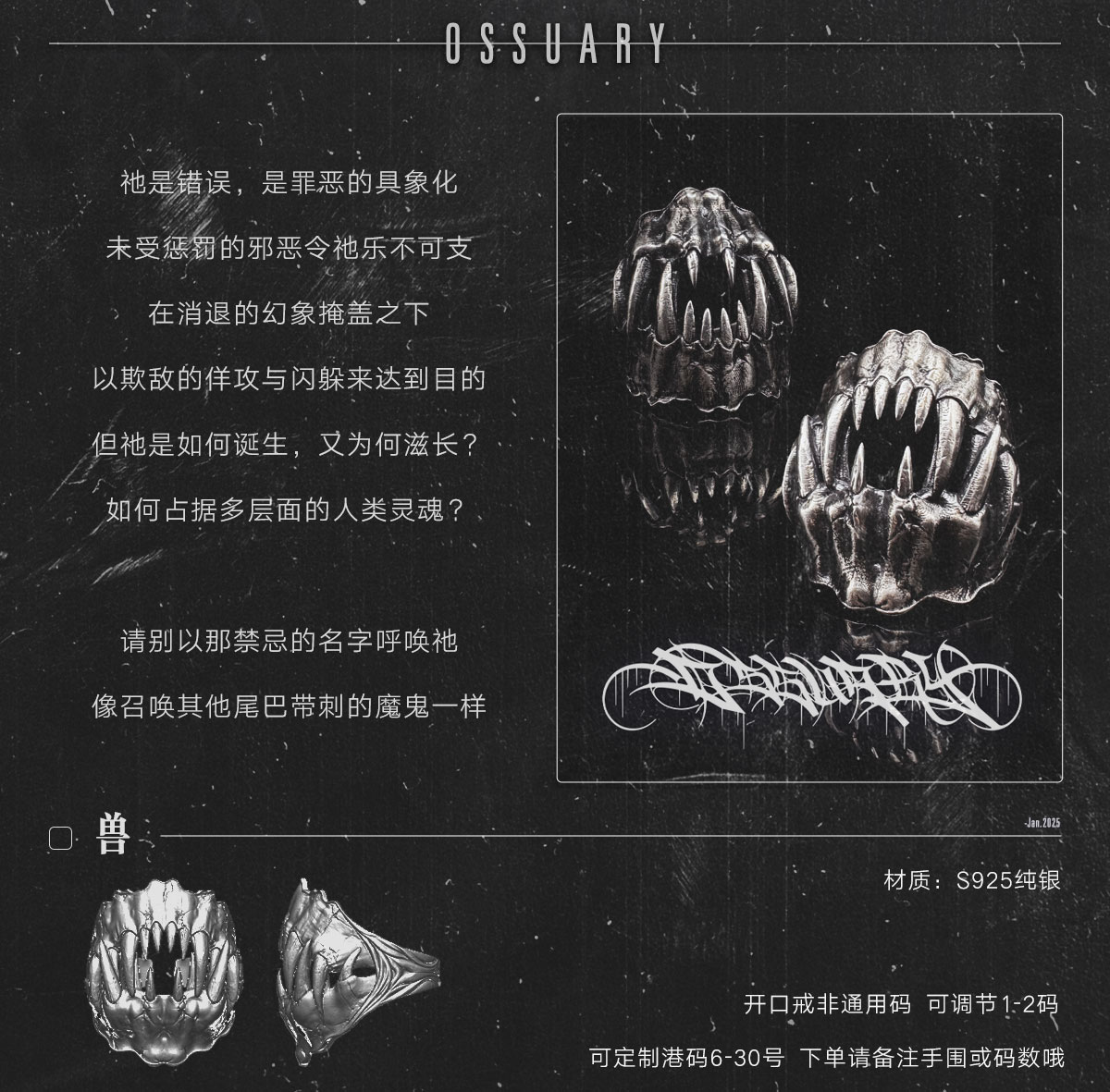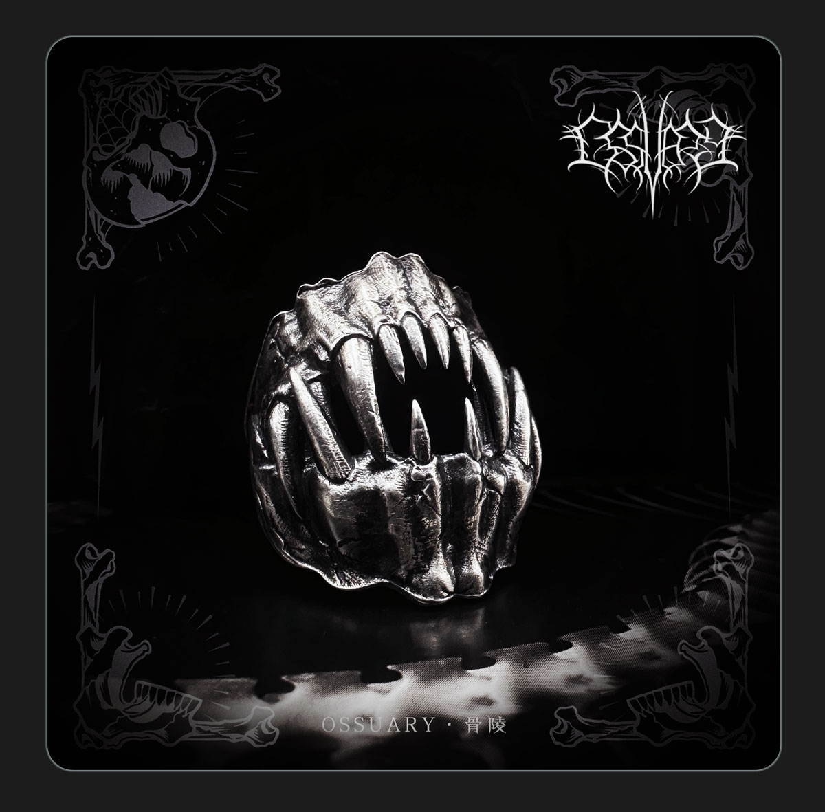 Ossuary "beast" dark animal tooth ring sterling silver old fangs shape open ring bone mausoleum original design