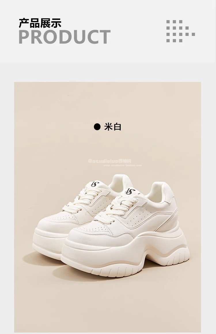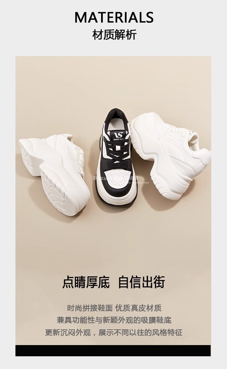 Hong Kong Inner Height Increasing White Shoes for Women 2025 Spring and Autum New Thick-Soled Dad Shoes Casual Elegant Versatile Sports Shoes
