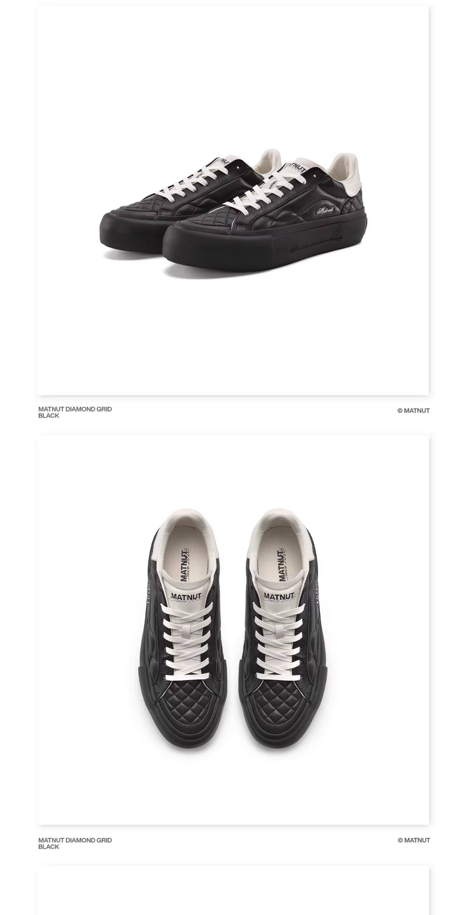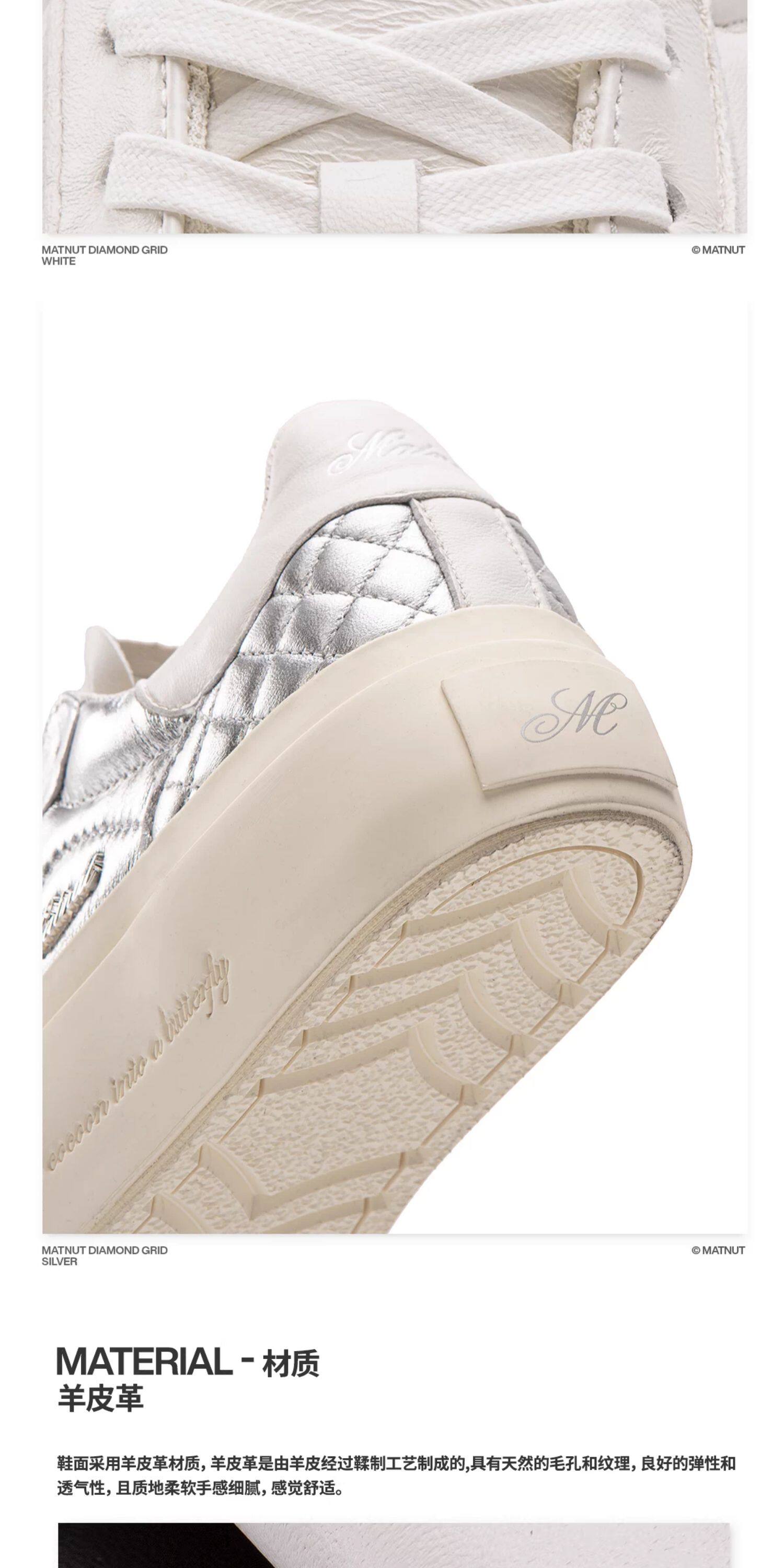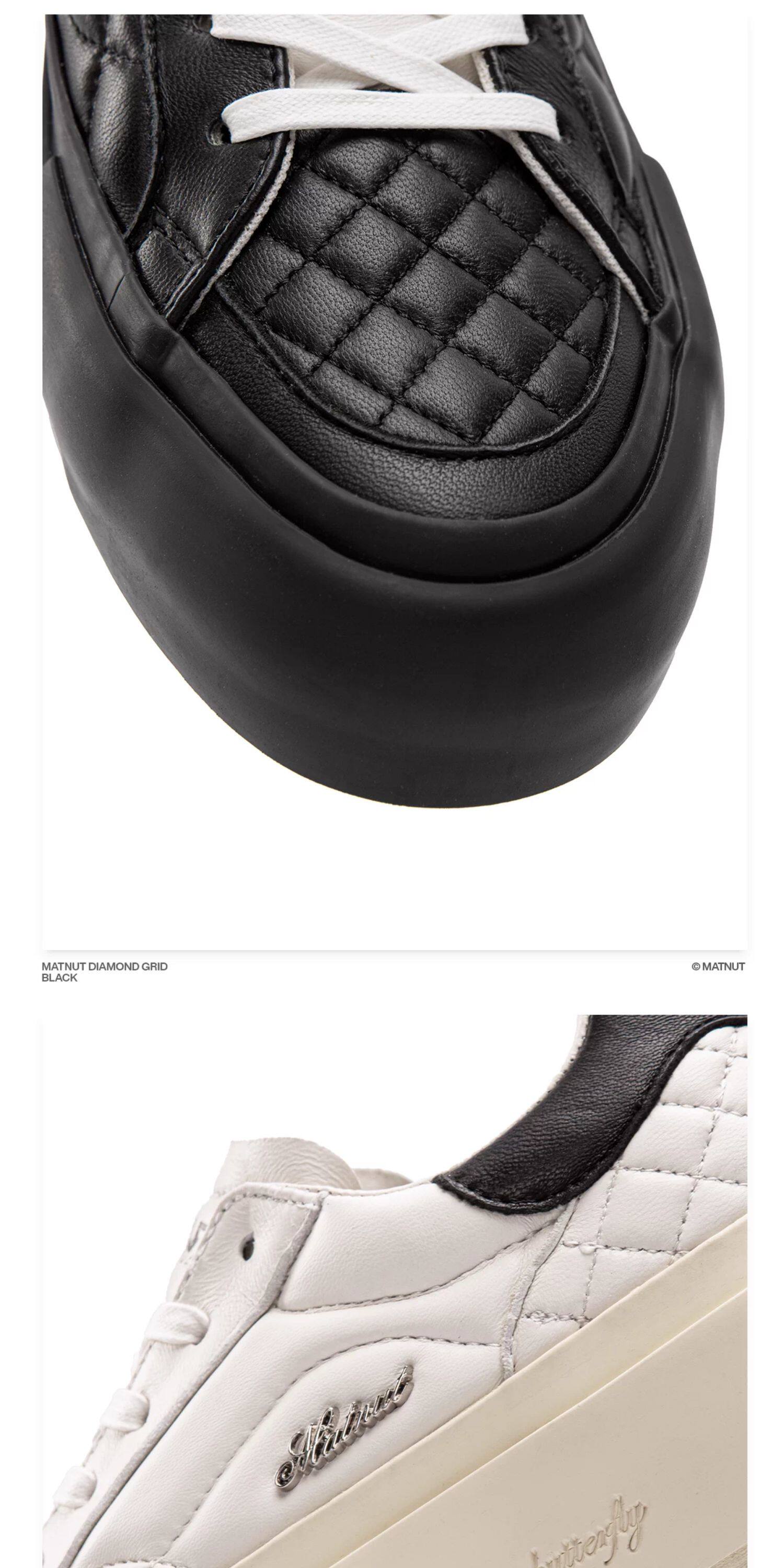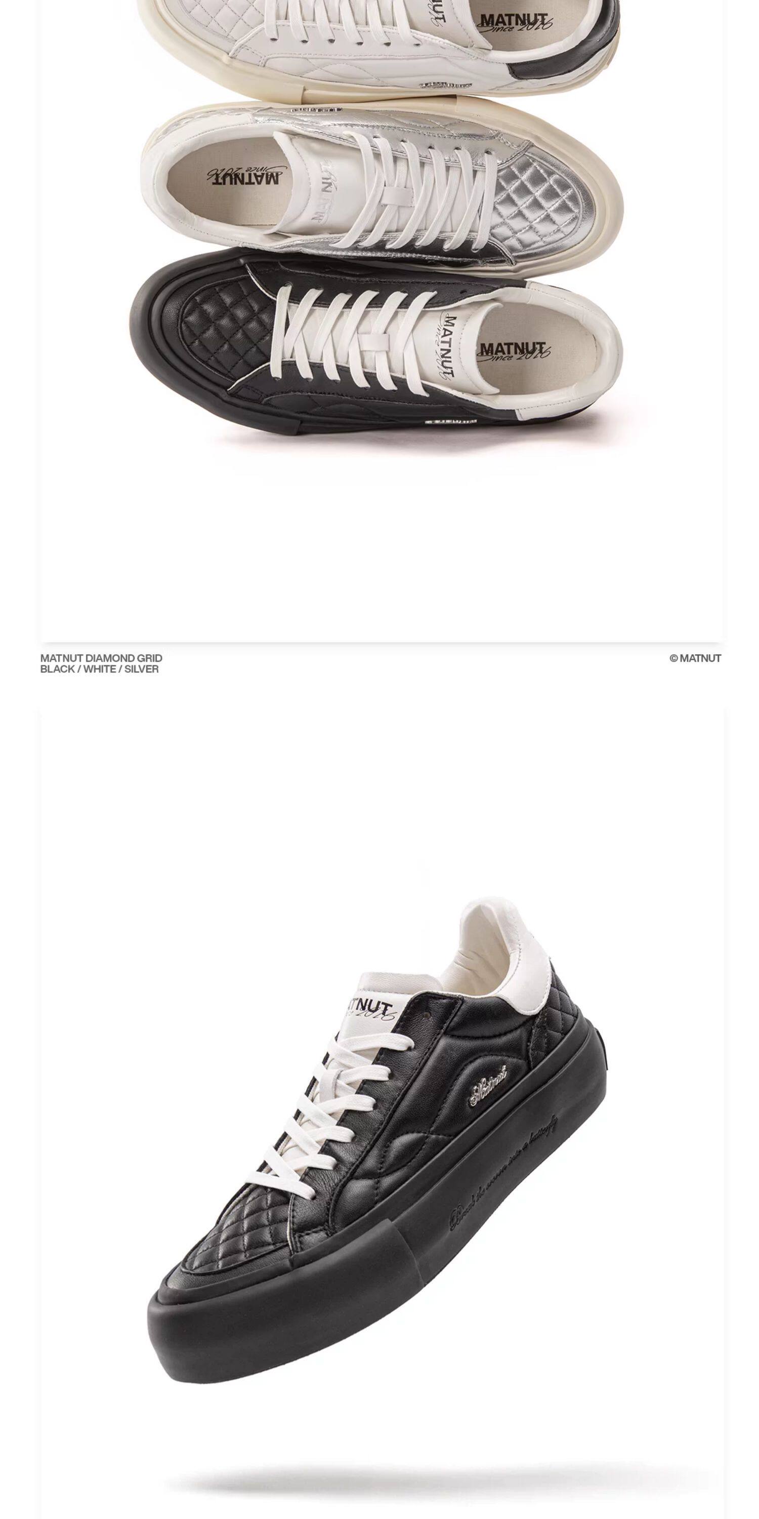 Matnut Type 3.0 Diamond Pattern Series Soft Sheepskin Black White Silver Thick-Soled Height-Increasing Sneakers