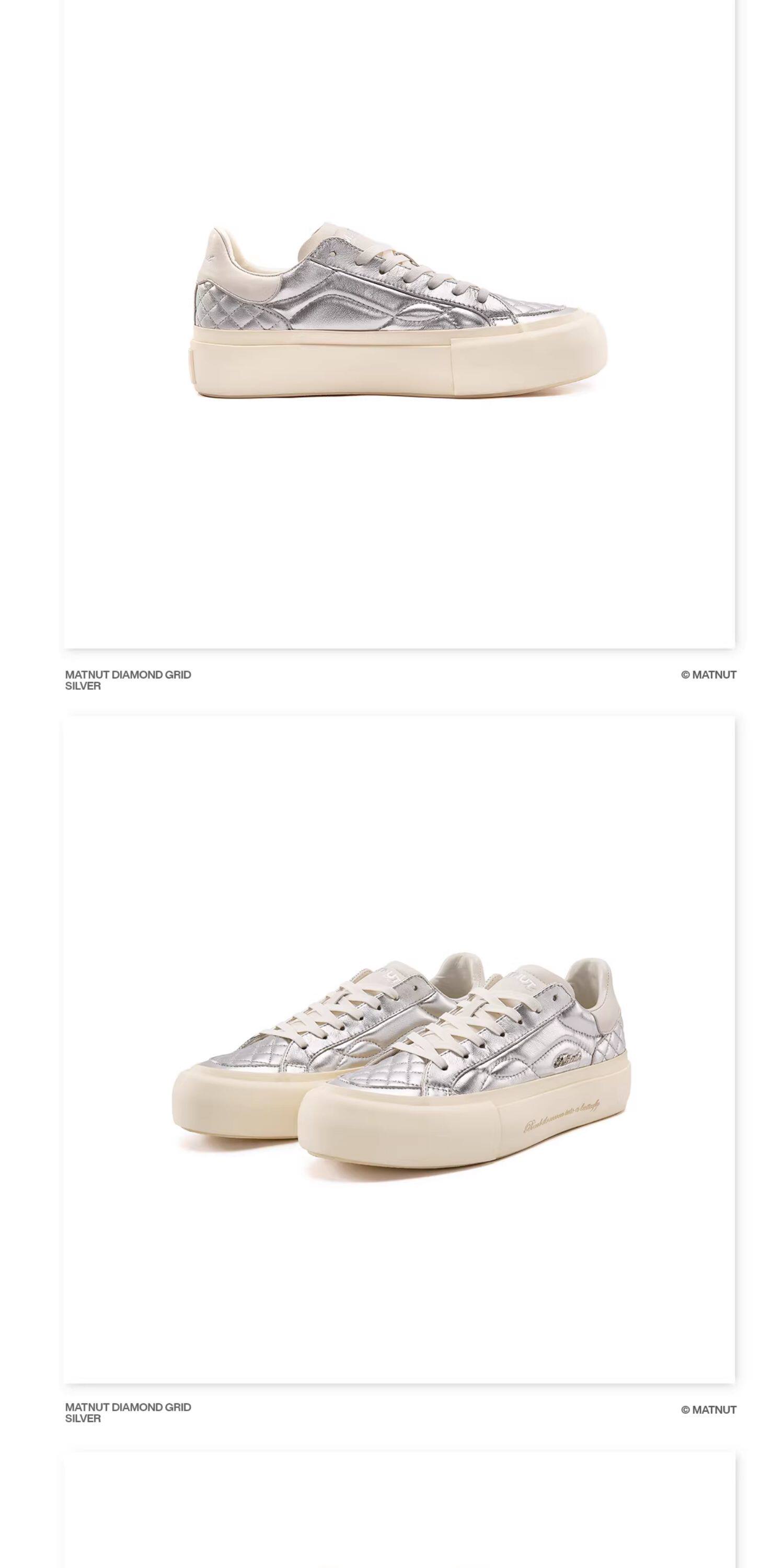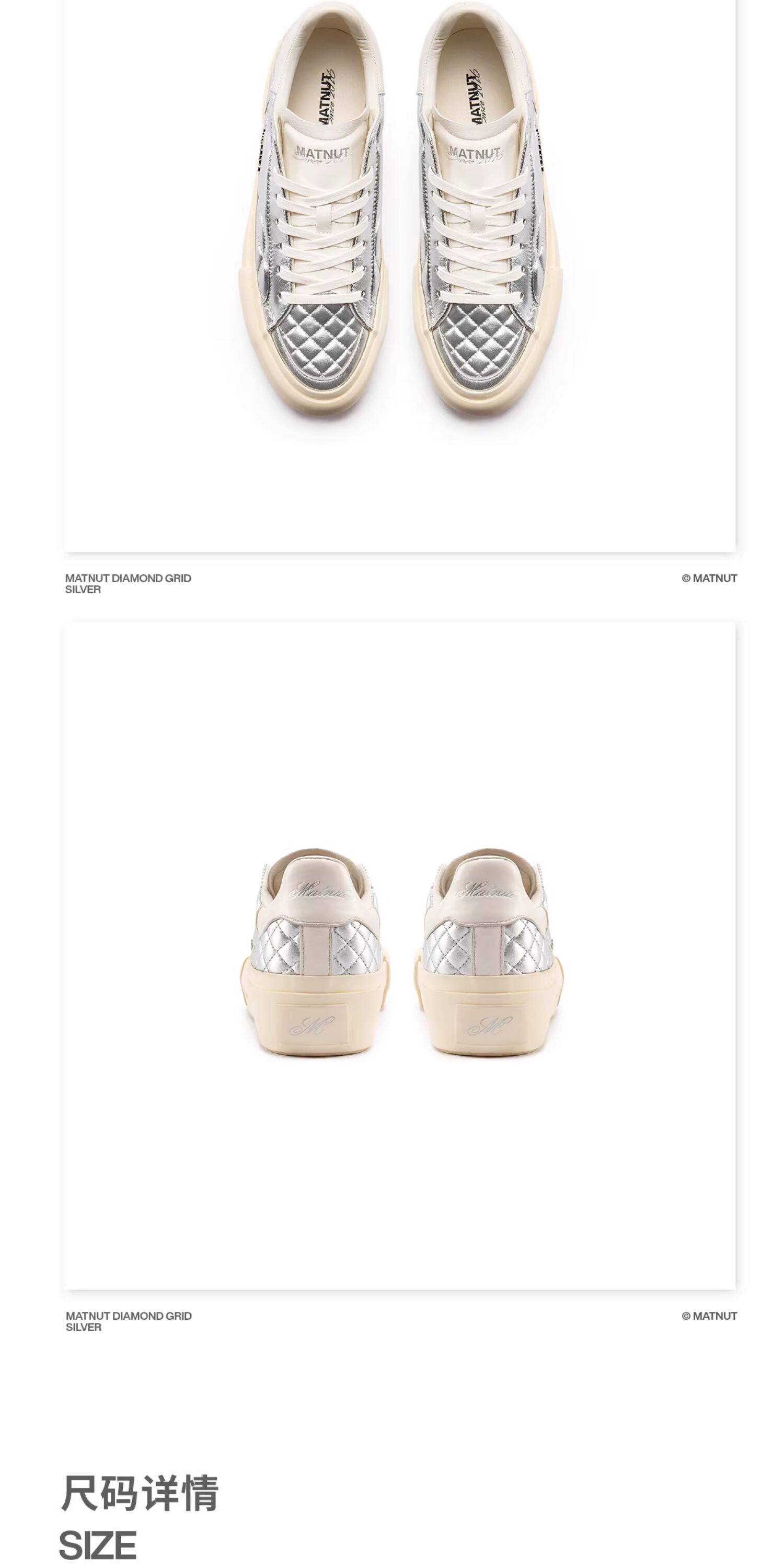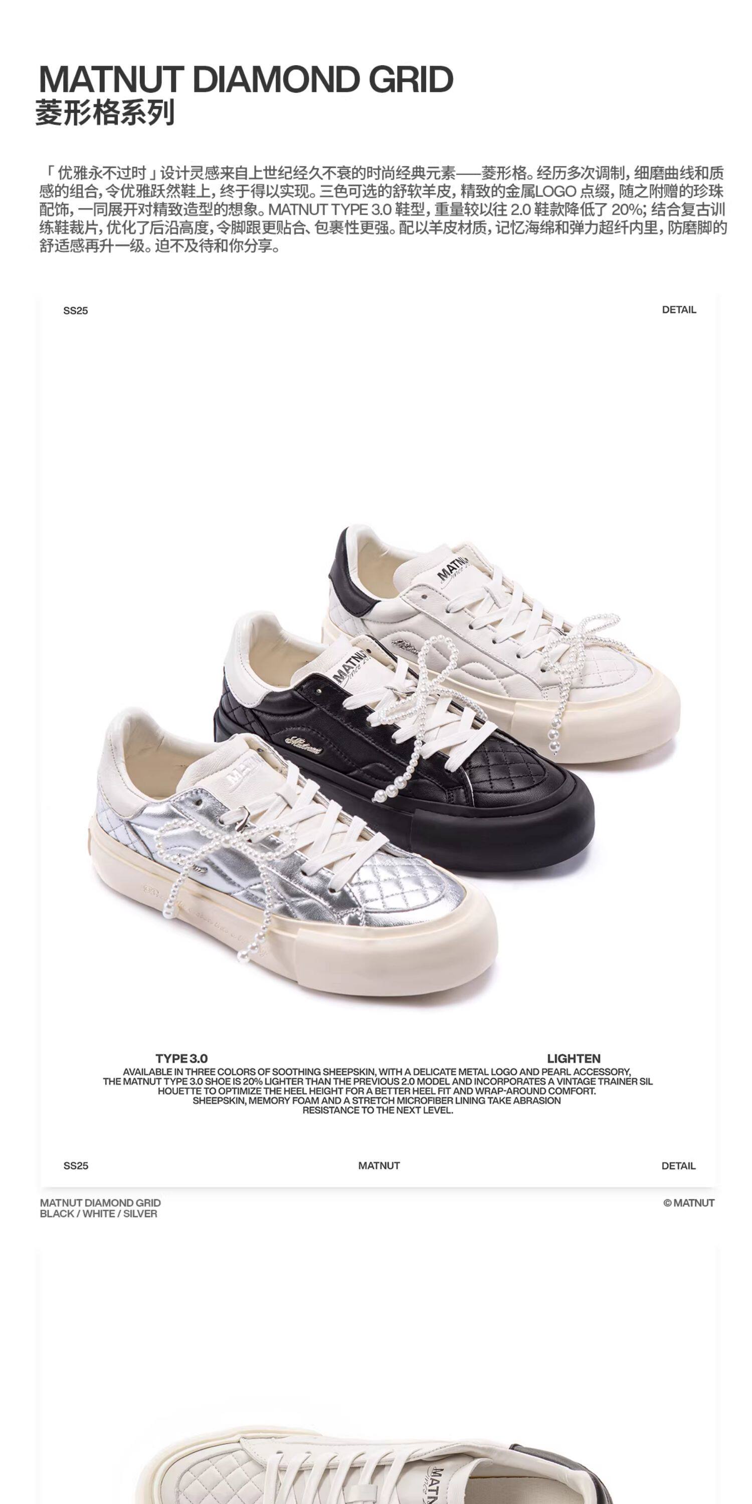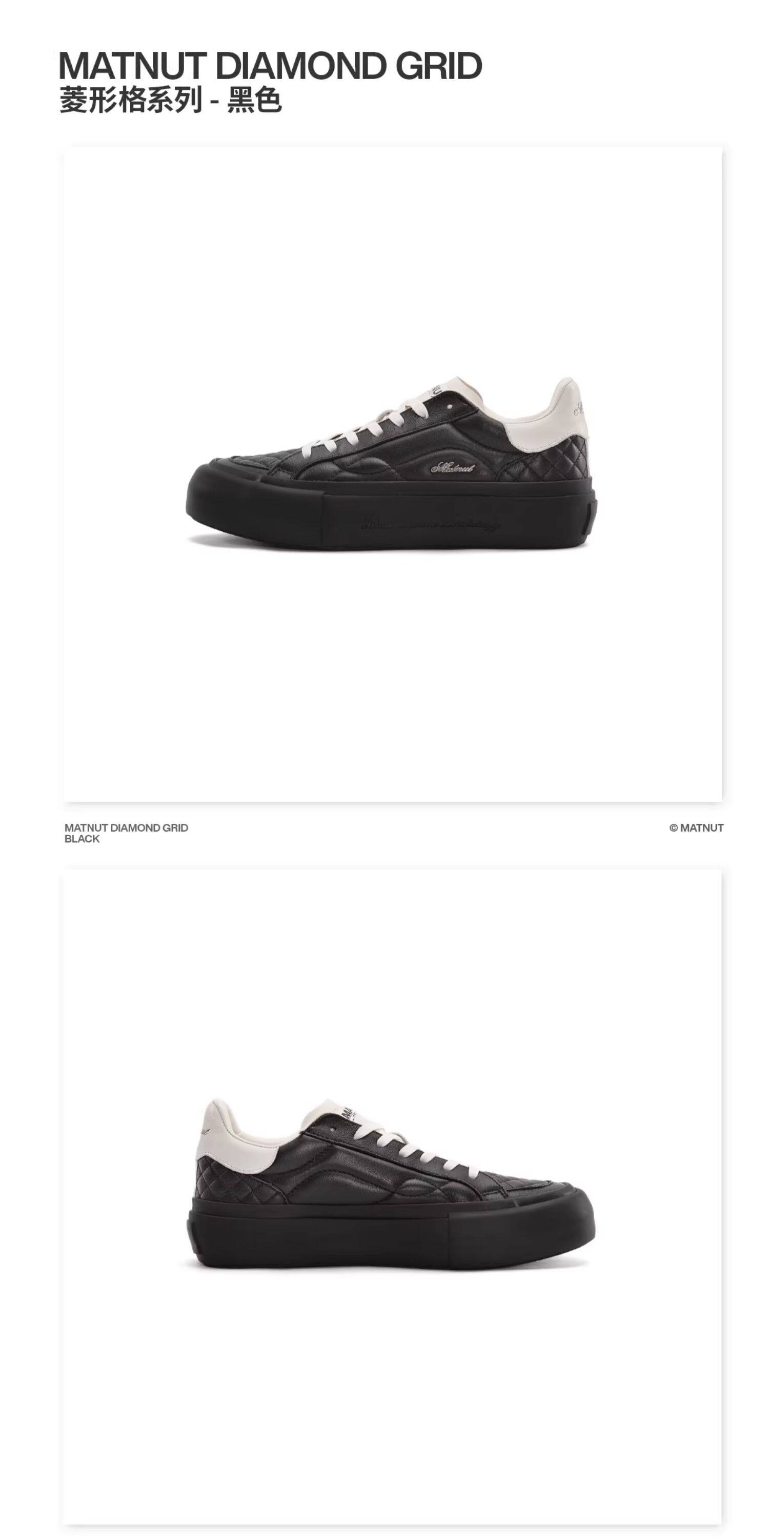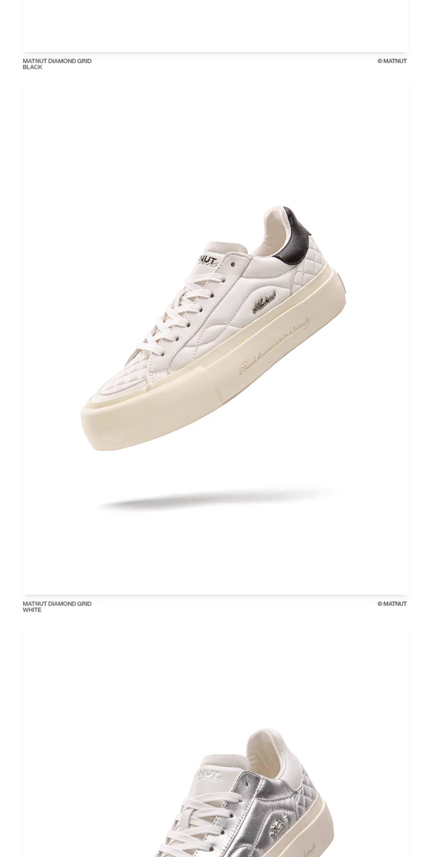 Matnut Type 3.0 Diamond Pattern Series Soft Sheepskin Black White Silver Thick-Soled Height-Increasing Sneakers