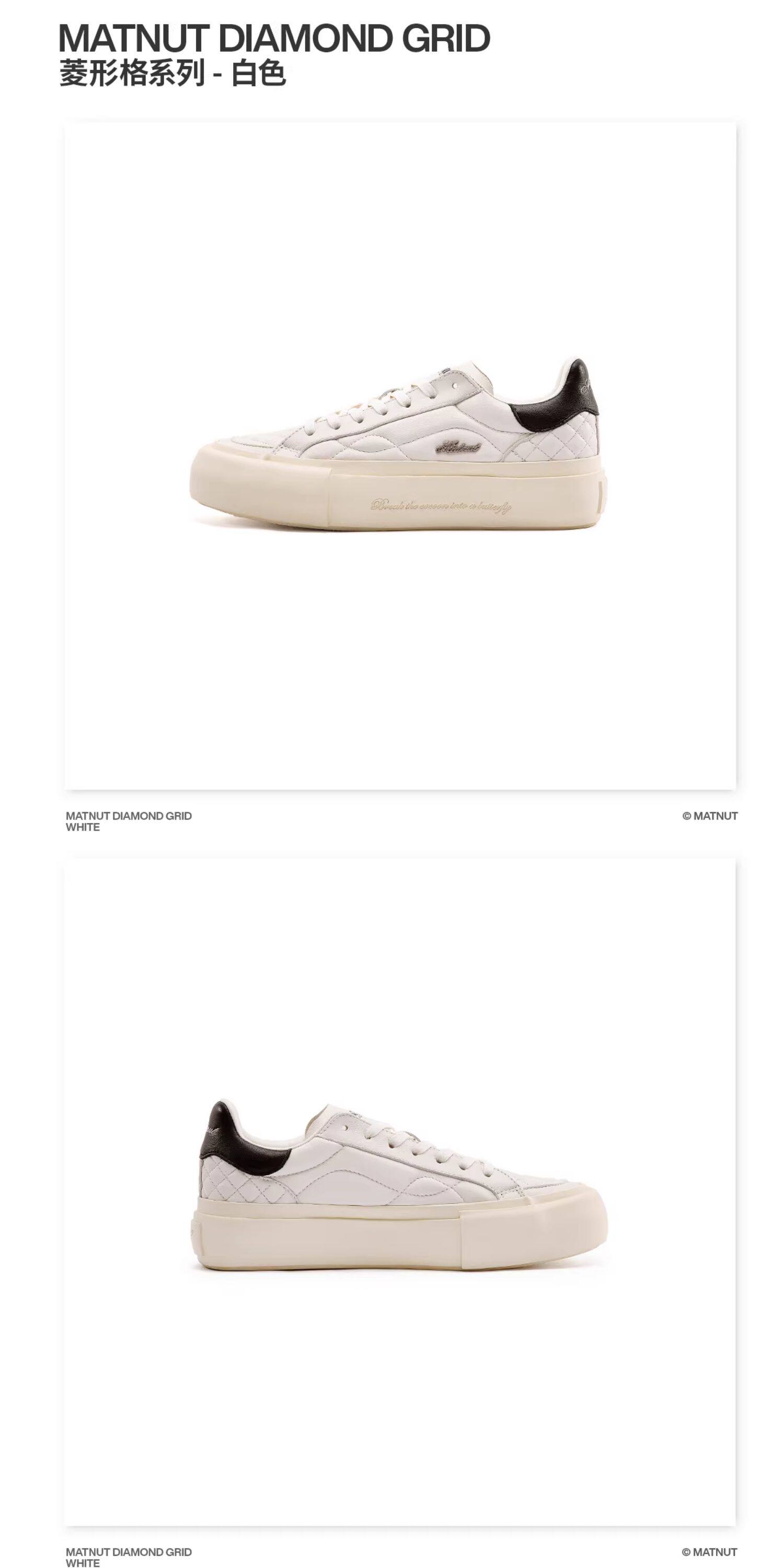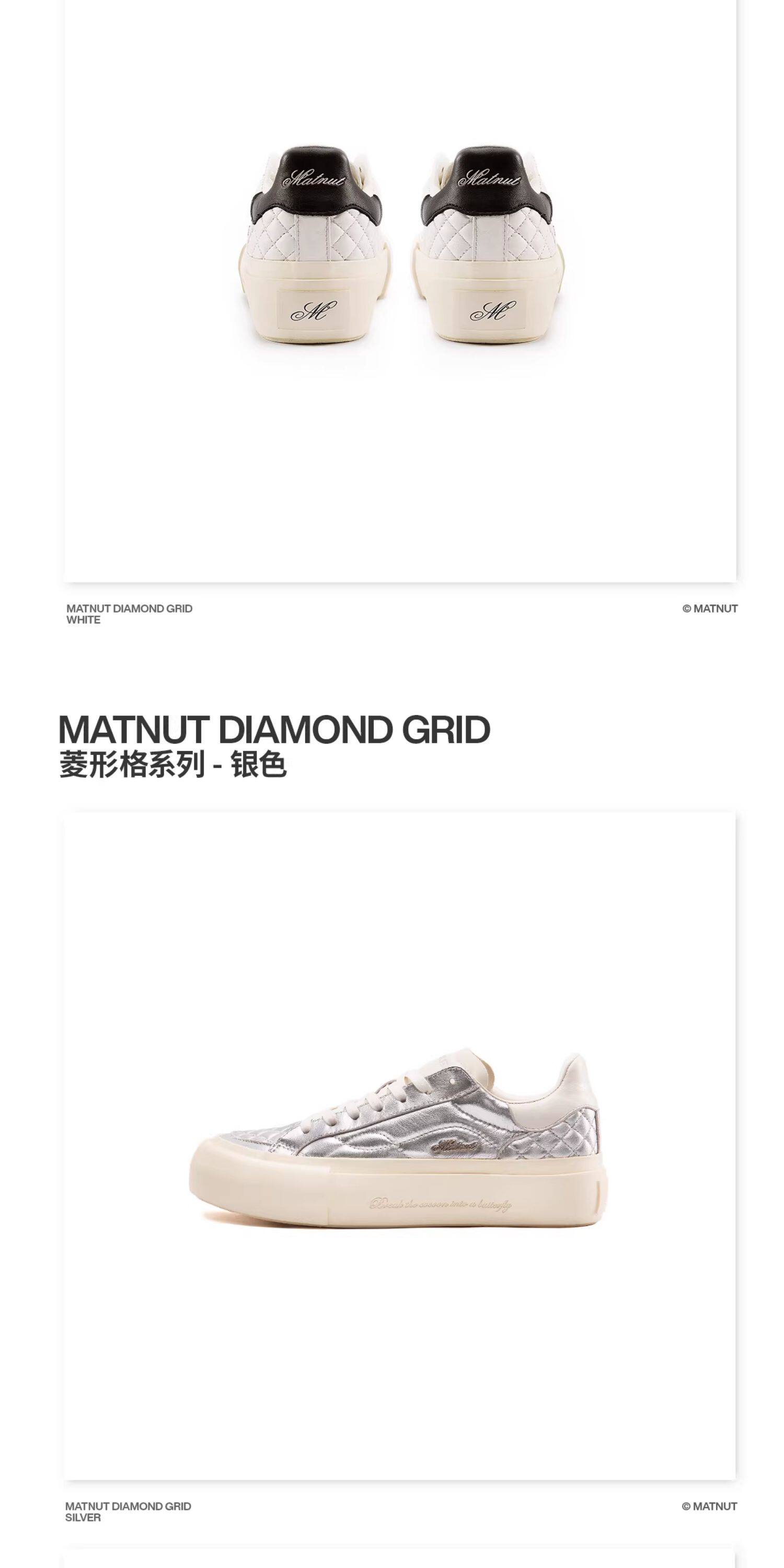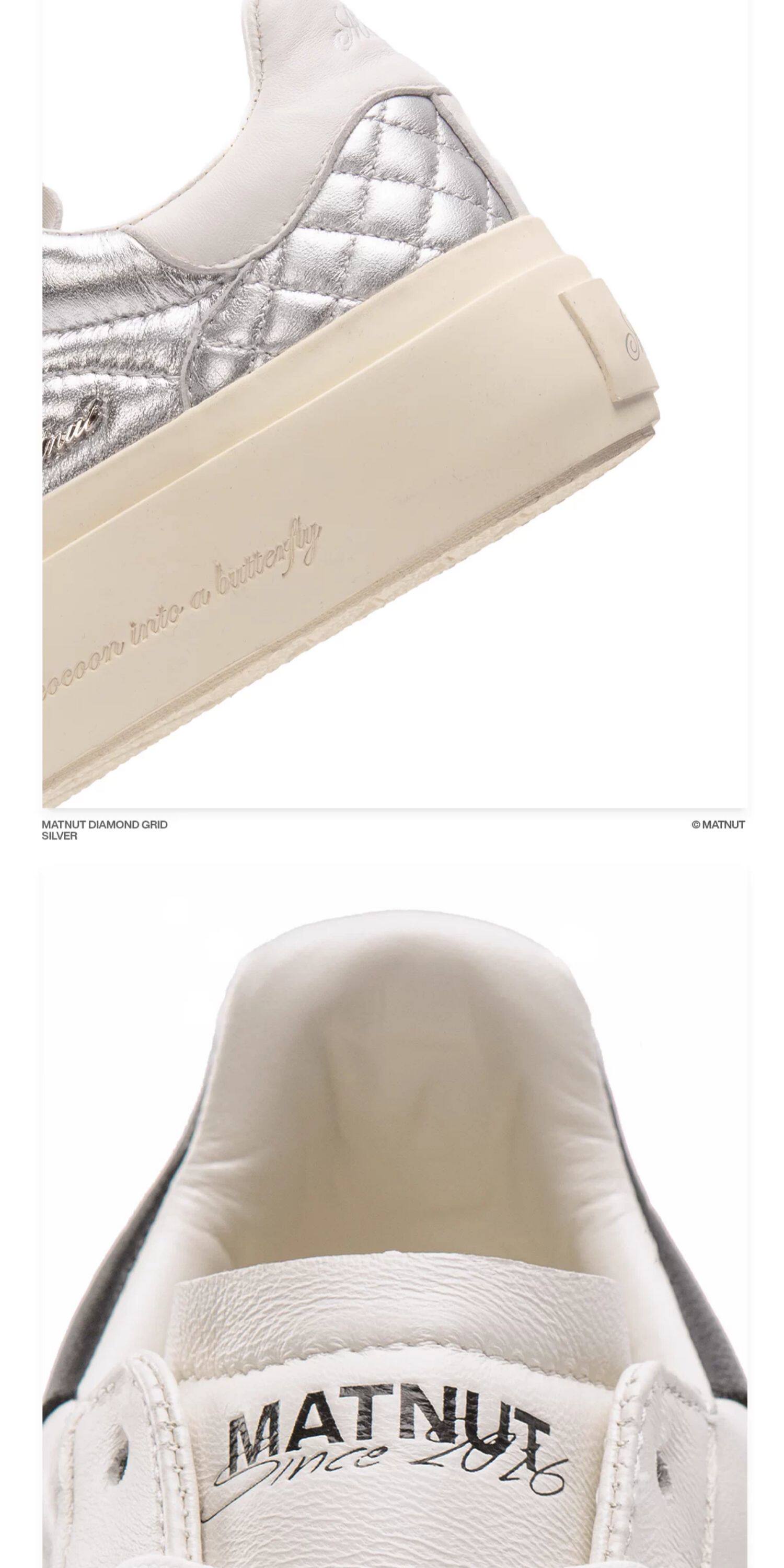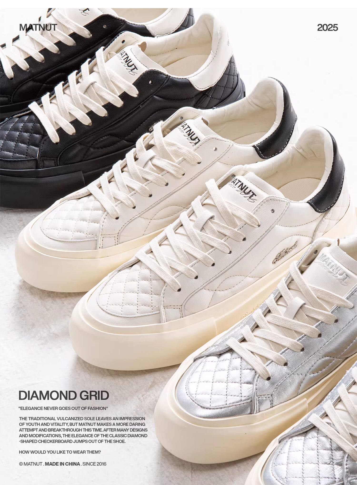 Matnut Type 3.0 Diamond Pattern Series Soft Sheepskin Black White Silver Thick-Soled Height-Increasing Sneakers