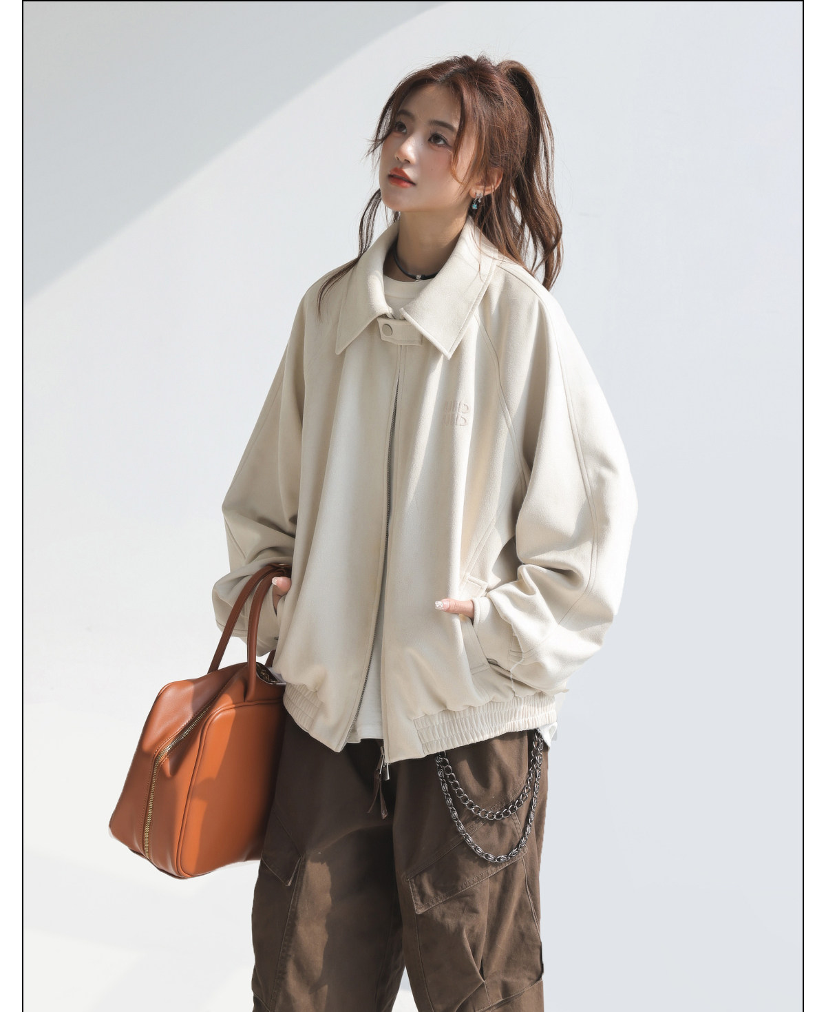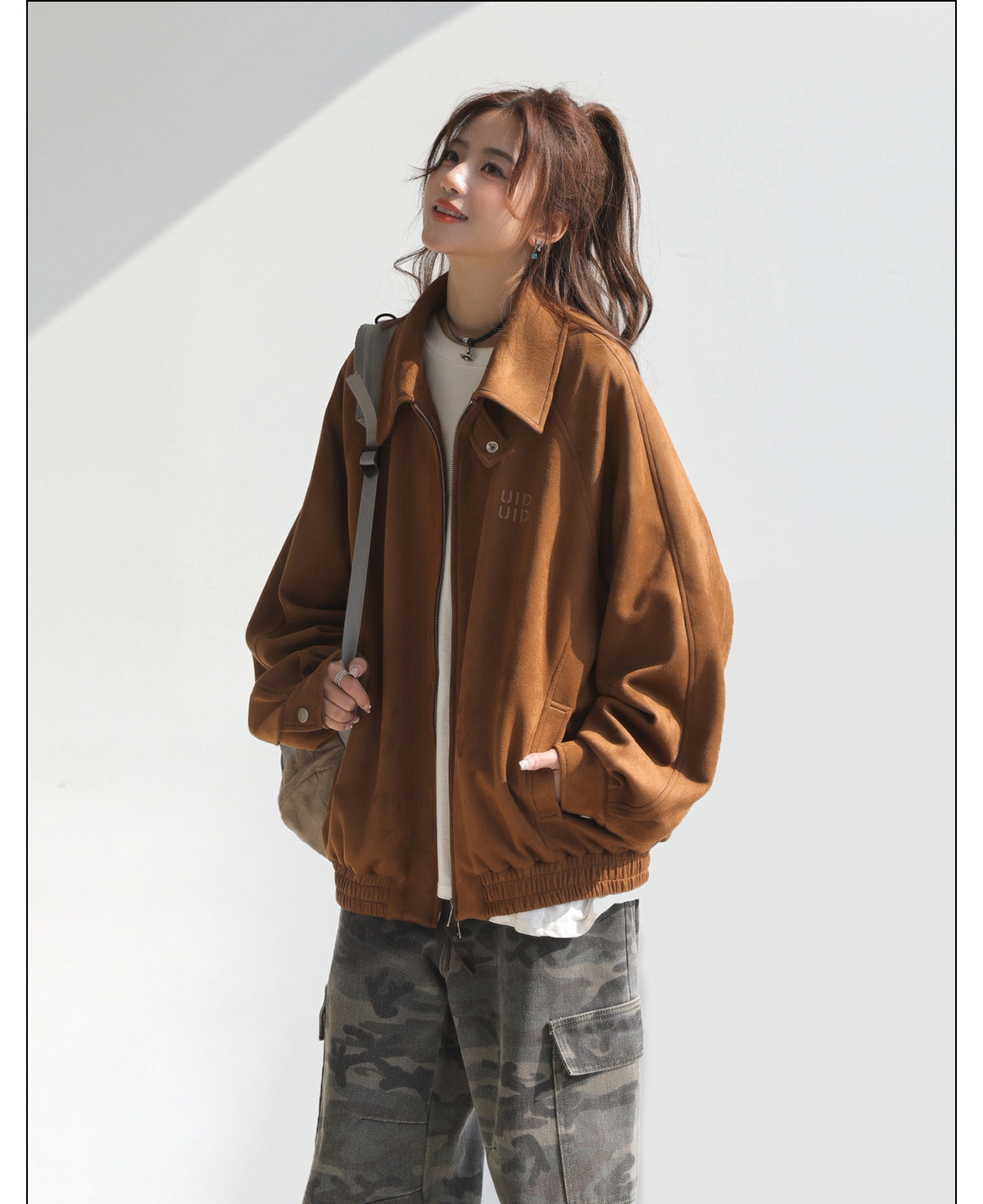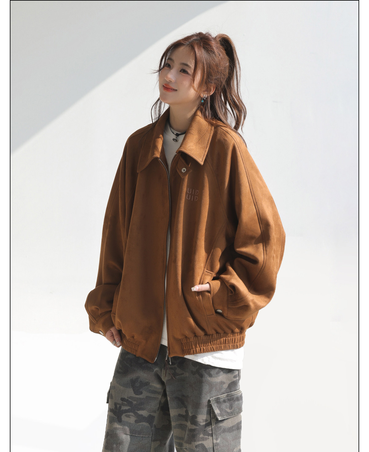 「Chant2Nd」Star-Inspired Pink Suede Jacket for Women, 2026 Spring and Autumn Korean Style Unique Top