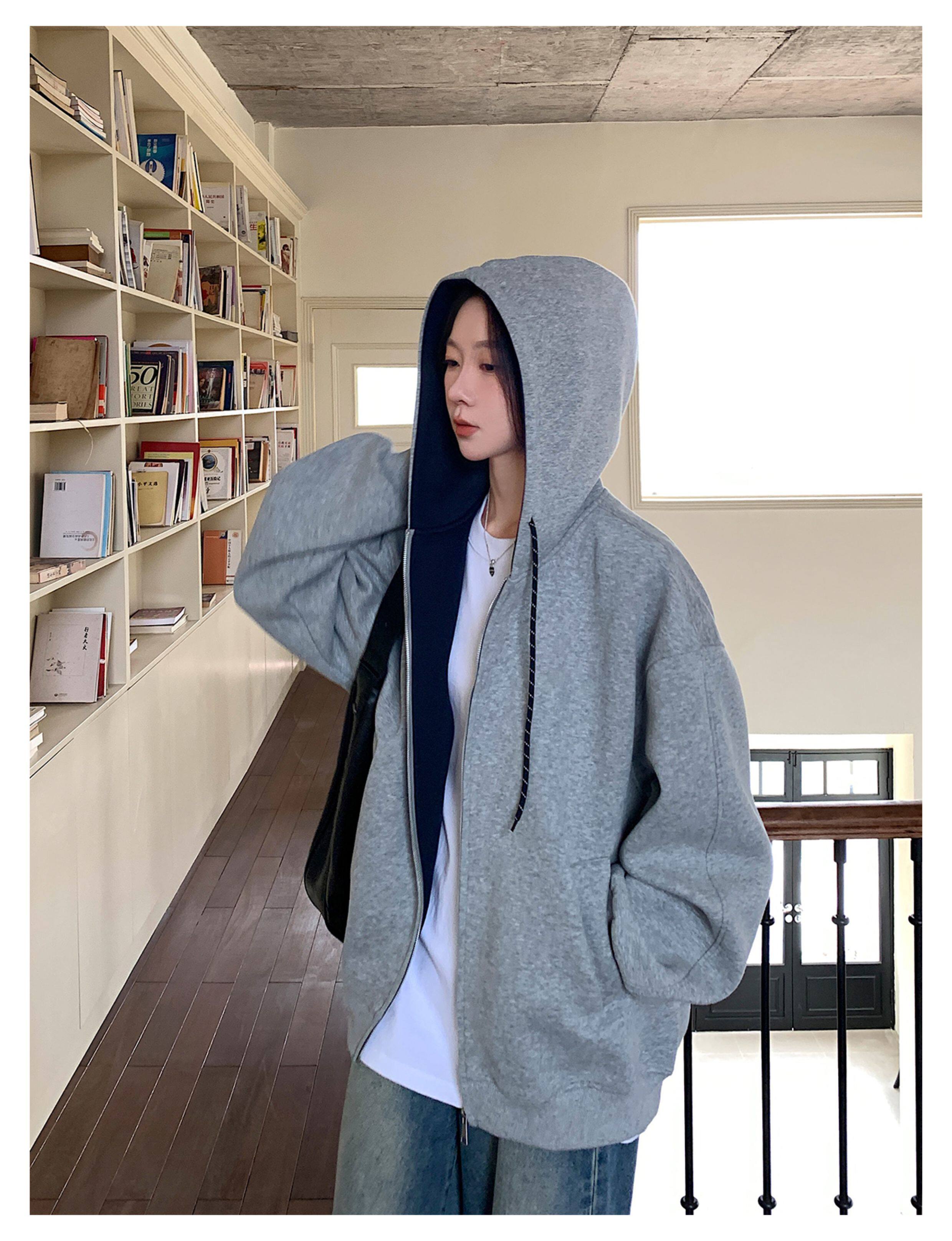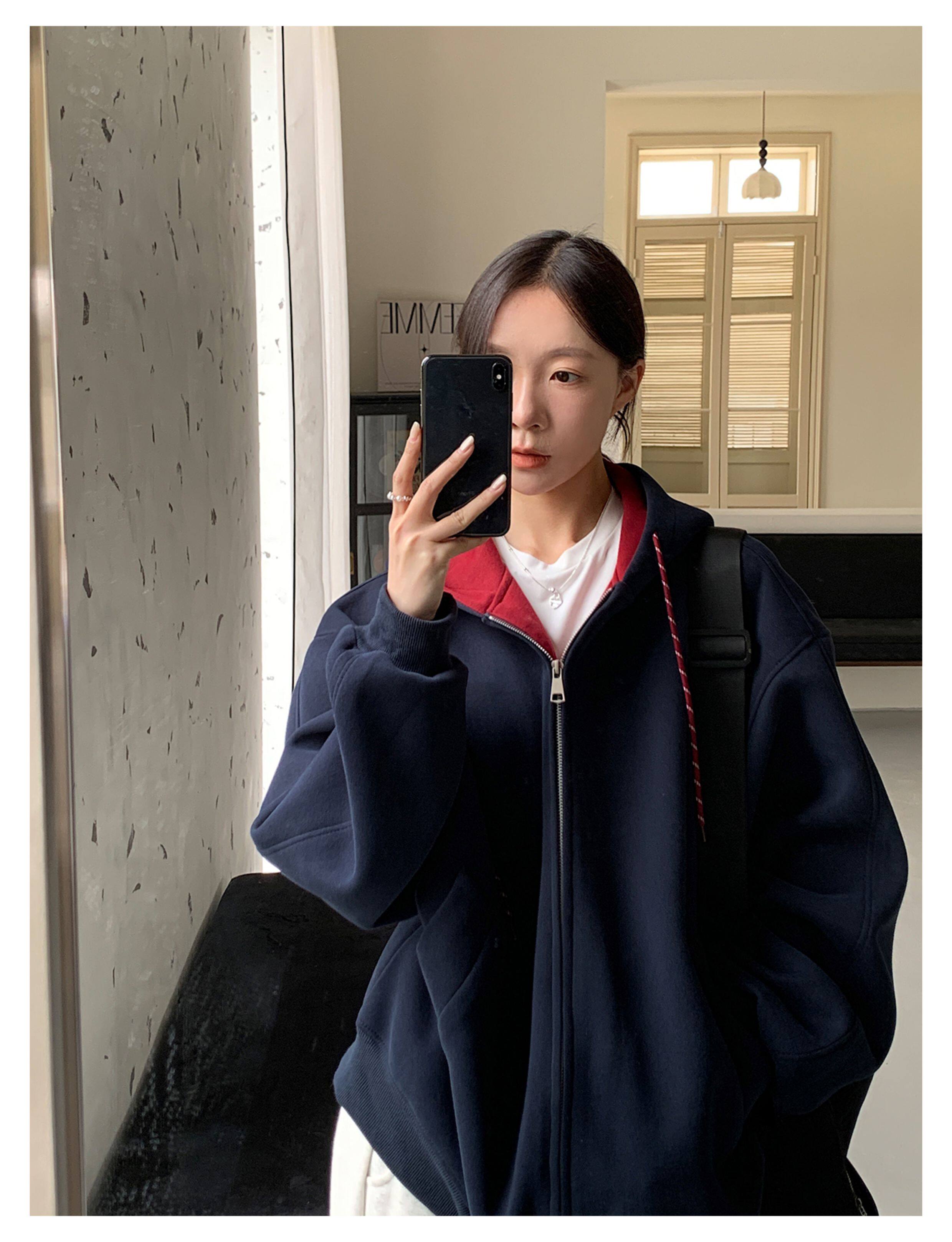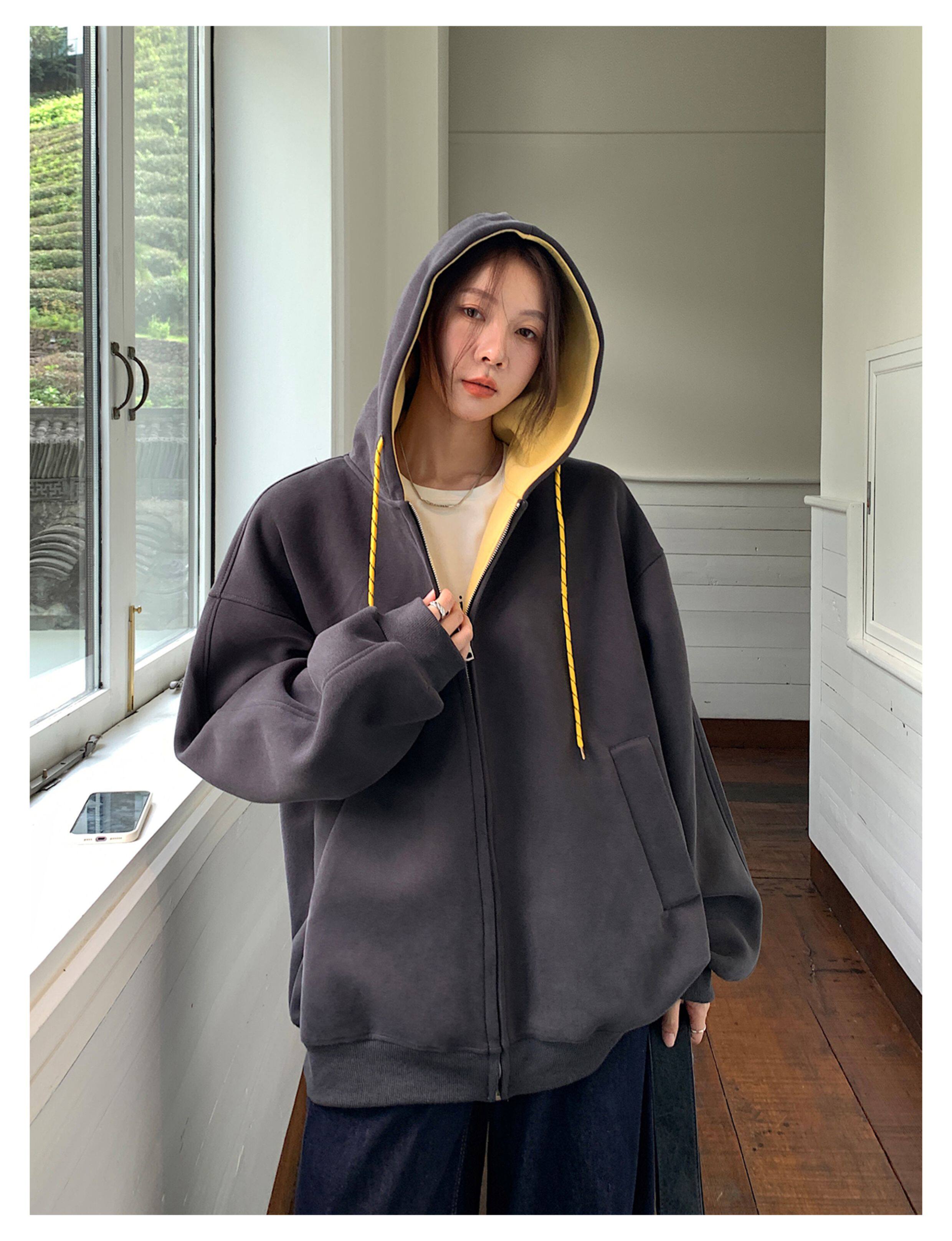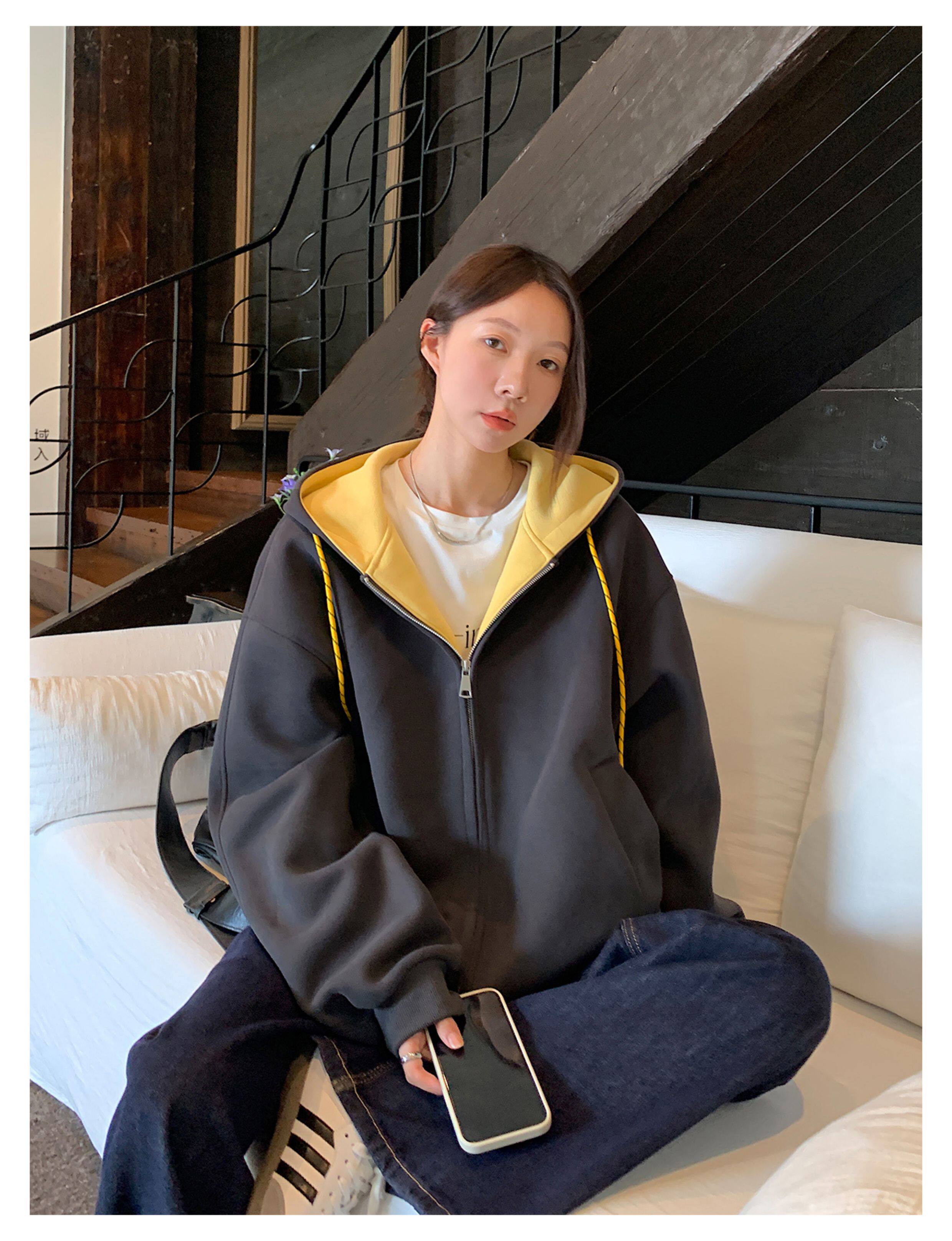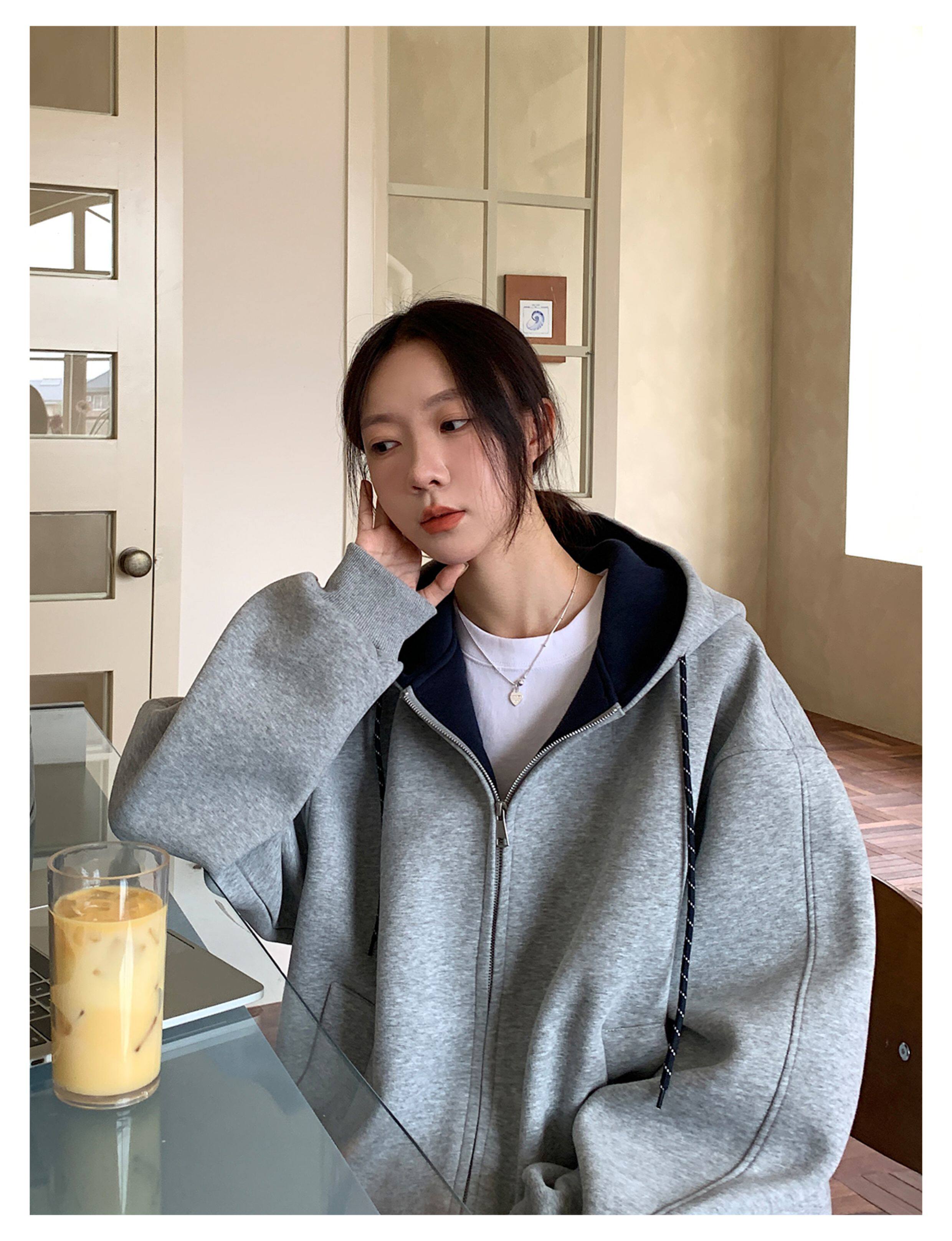 Vs What "Han Nan Dong Street Style Korean Spring and Autumn Jacket Hooded Cardigan Sweatshirt for Women and Couples Versatile Top