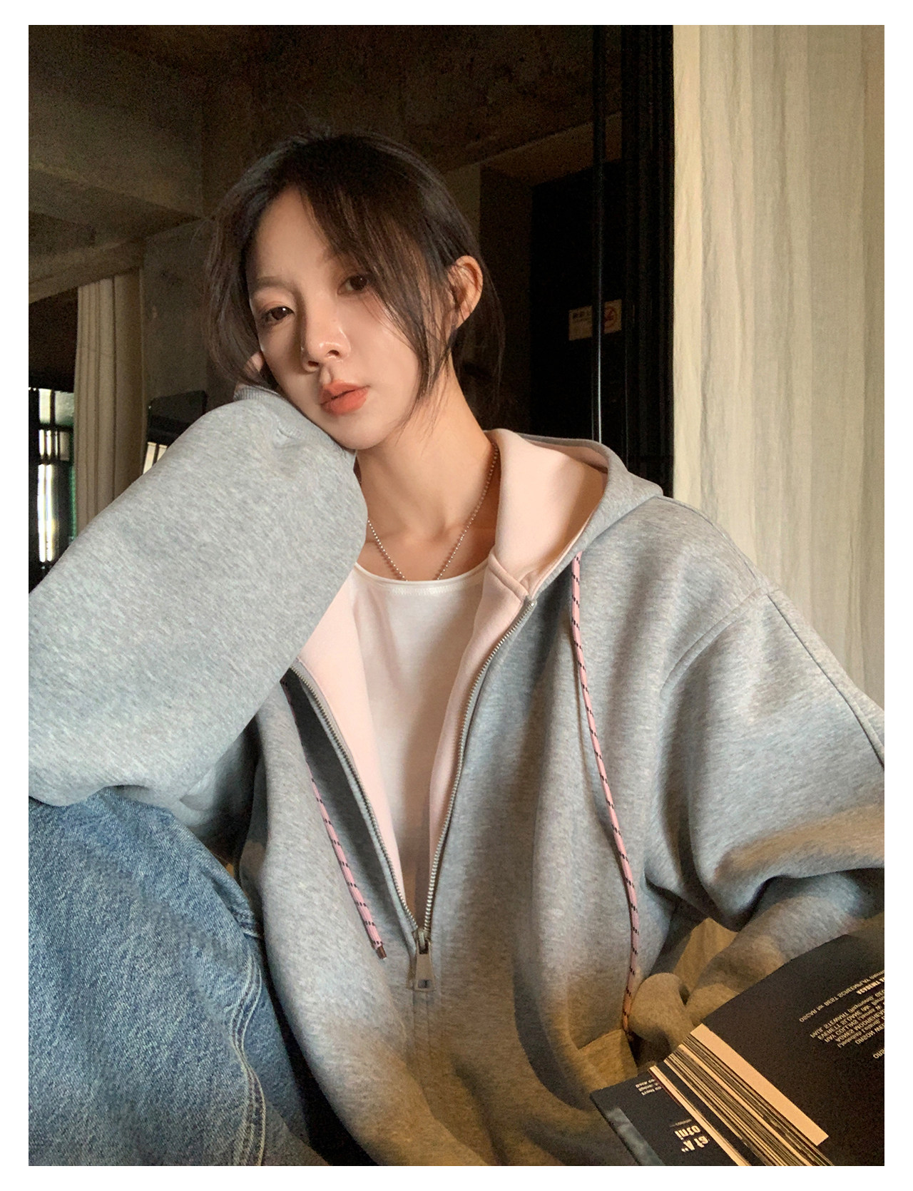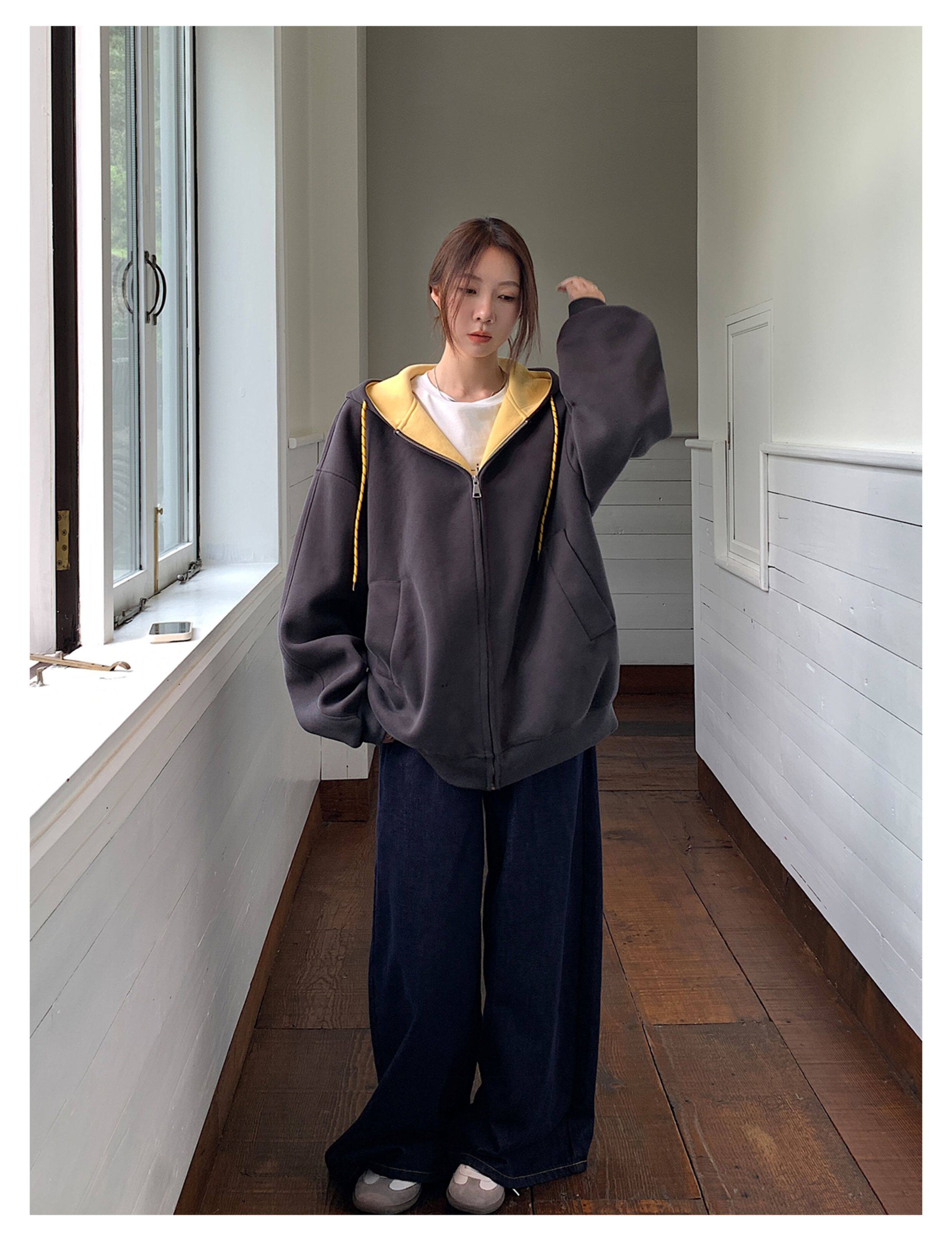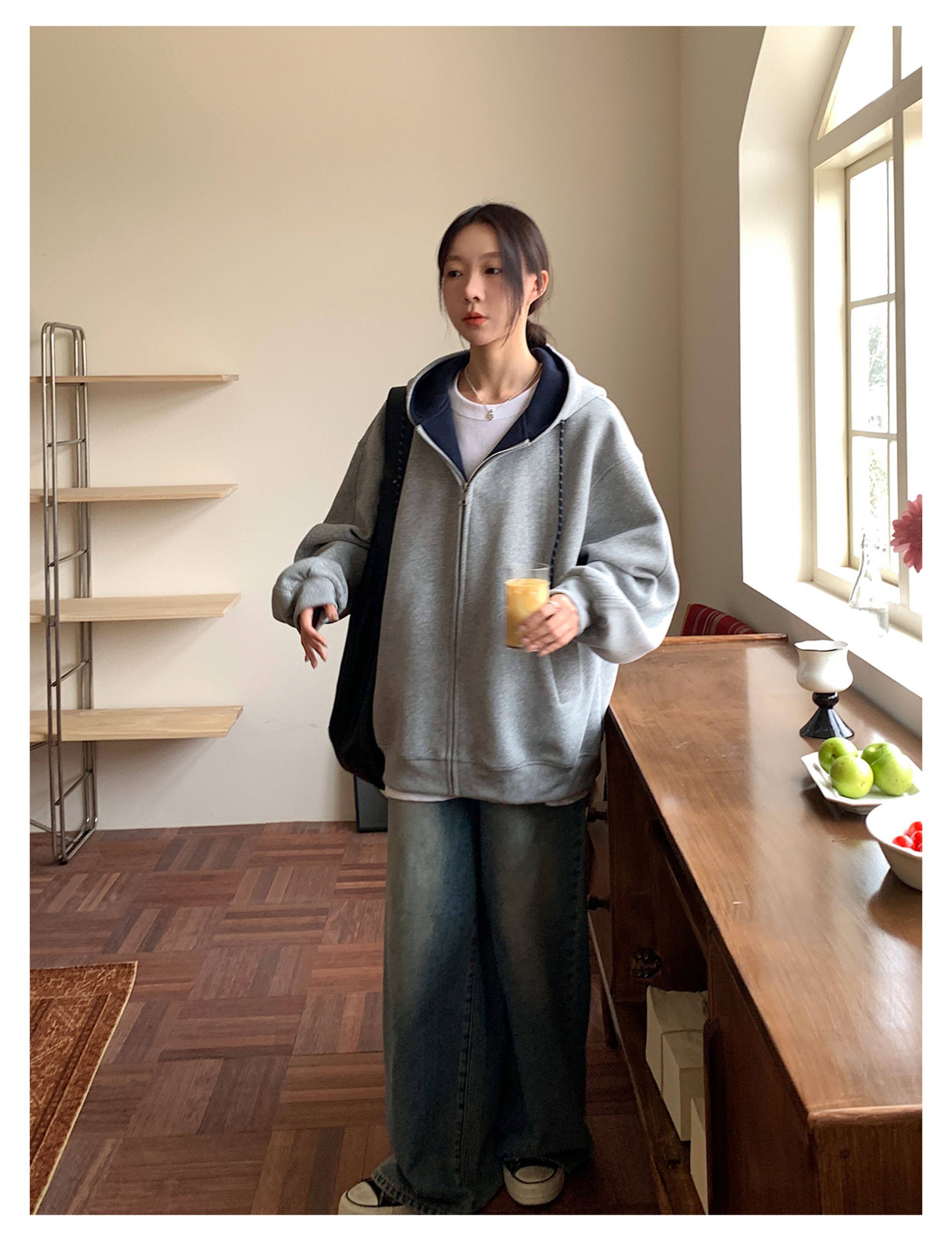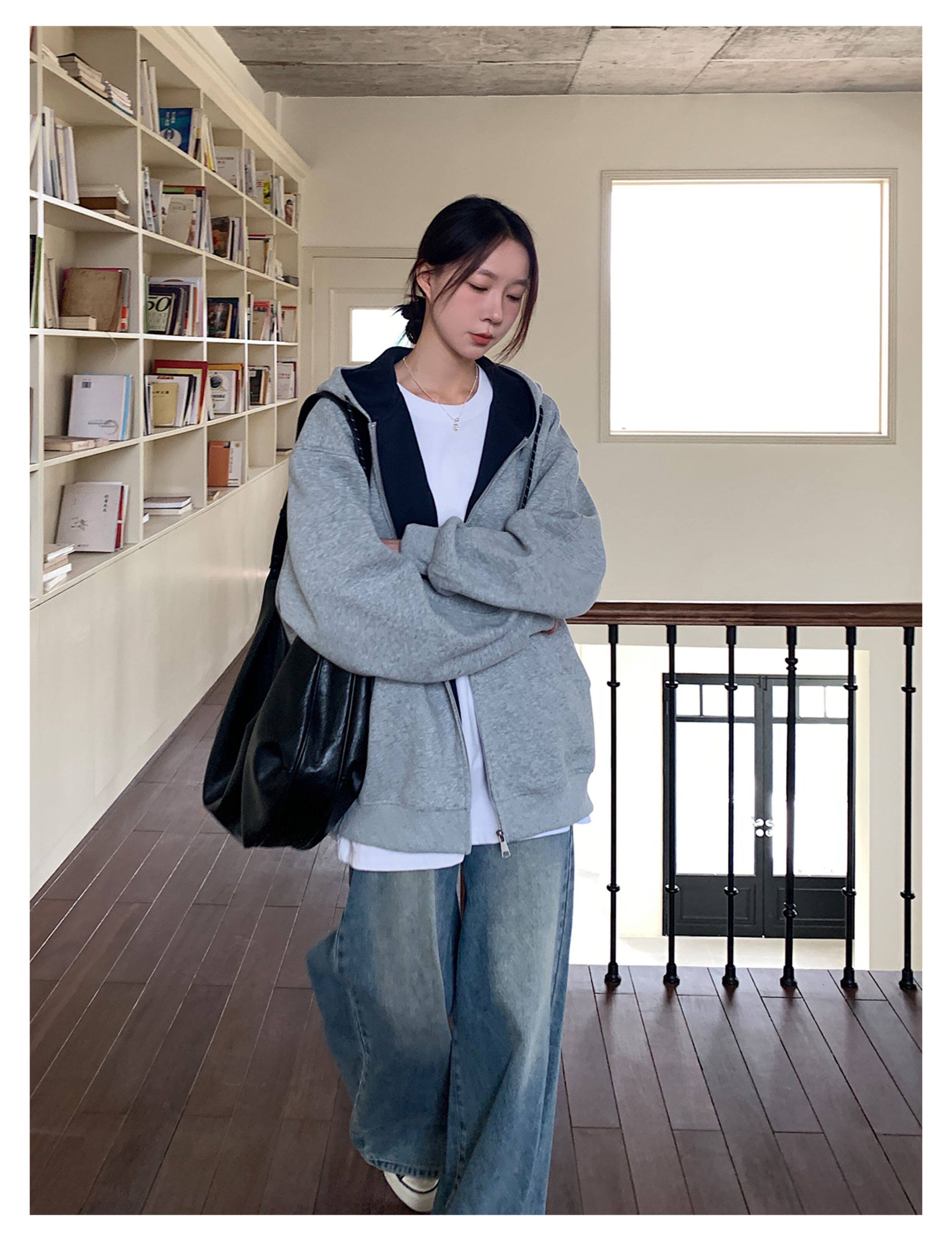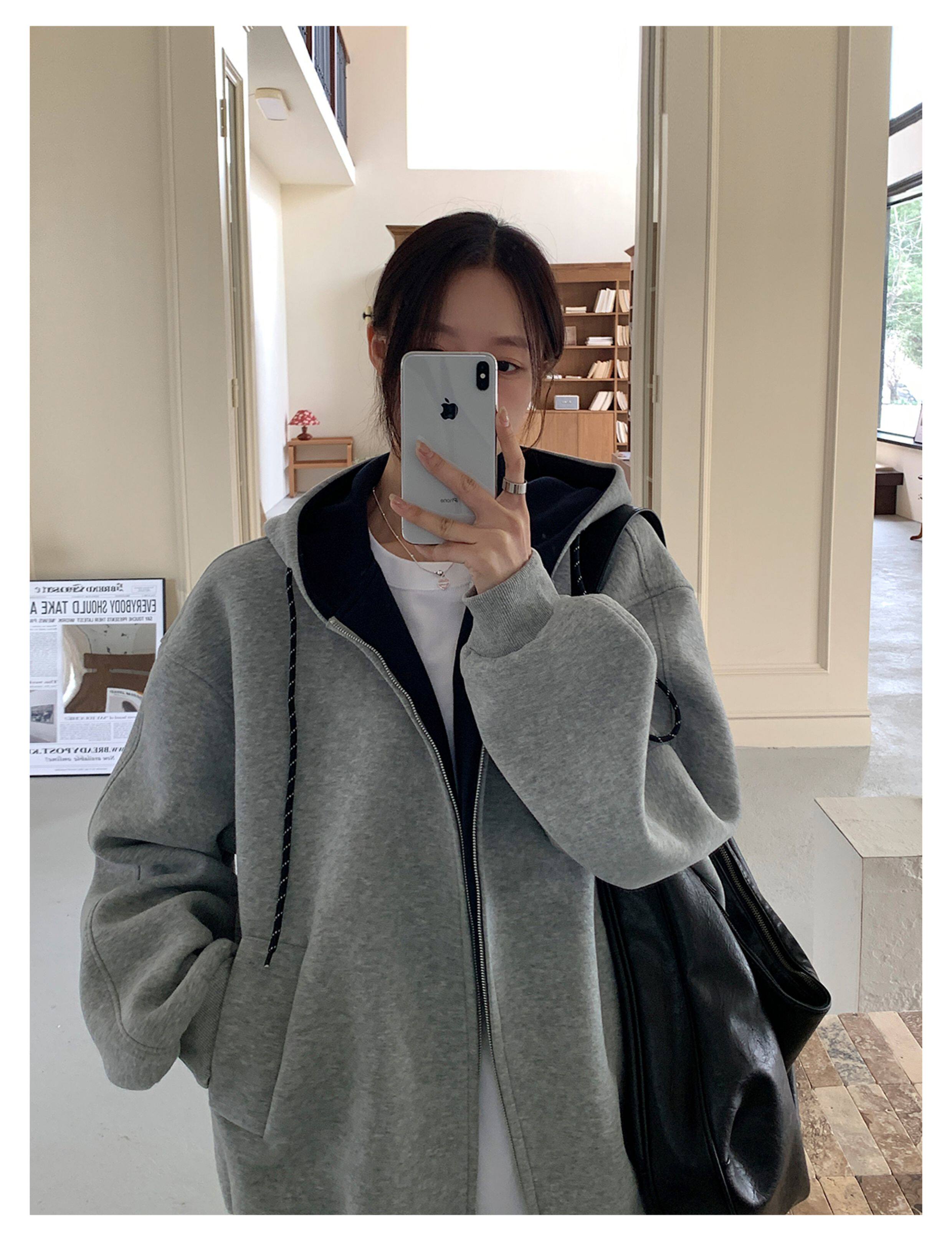 Vs What "Han Nan Dong Street Style Korean Spring and Autumn Jacket Hooded Cardigan Sweatshirt for Women and Couples Versatile Top