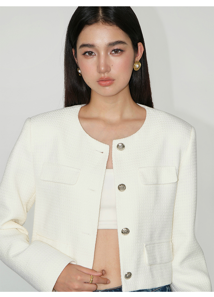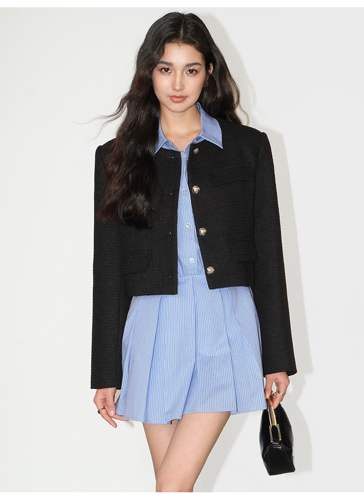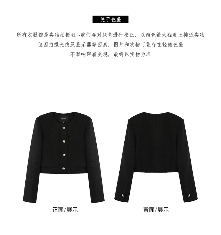 Neva Hu Black French Style Short Jacket for Women, Autum Design, Retro Tweed Elegant Top