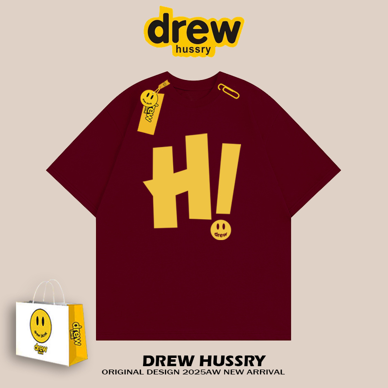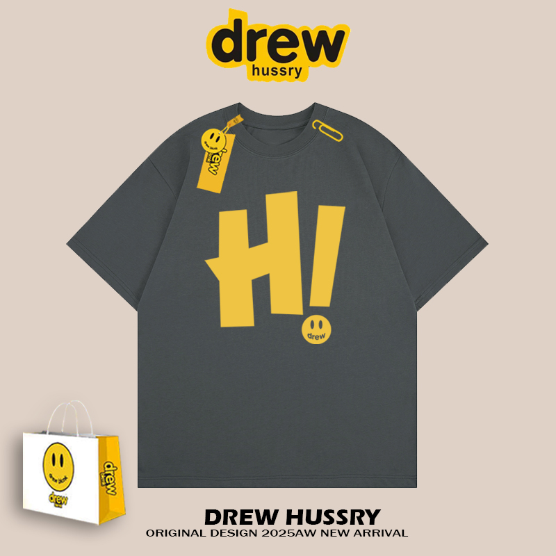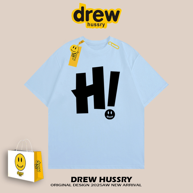 Drew Smiley Face Letter Printed Short-Sleeved T-Shirt for Men 2025 Summer Trendyy Brand Trendyy Pure Cotton Loose High Street Couple ins
