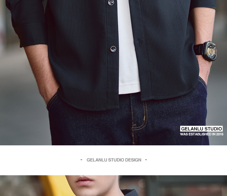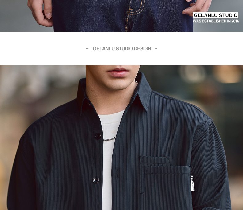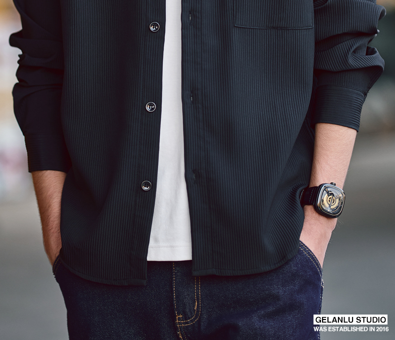 Gelanlu High-End American Retro Textured Work Shirt Jacket Men's New Autumn Striped Long-Sleeved Shirt