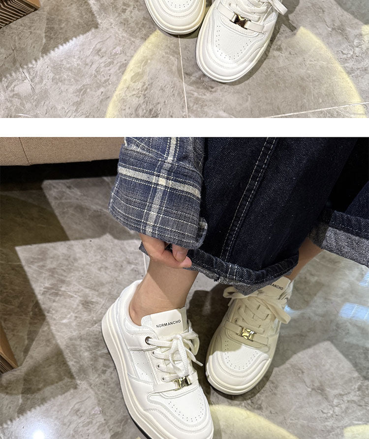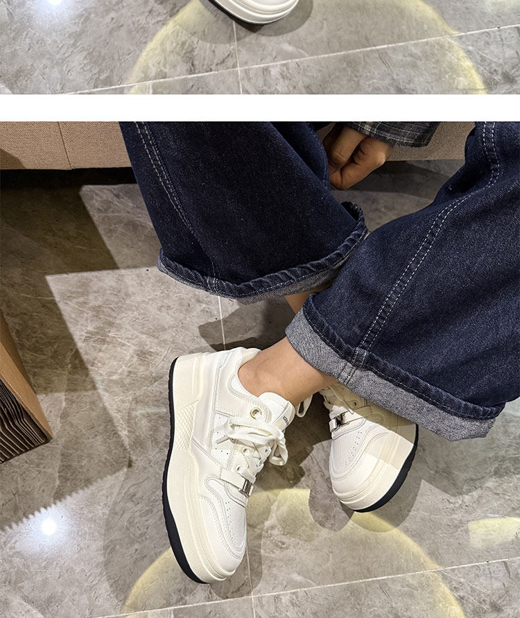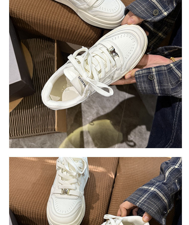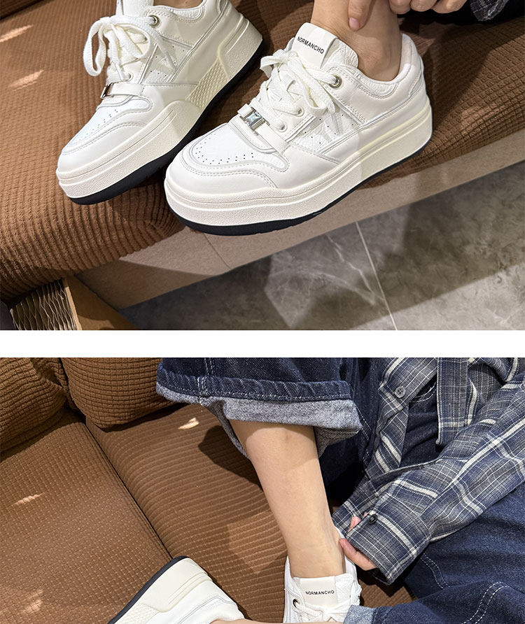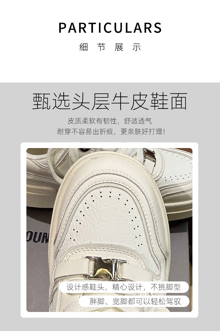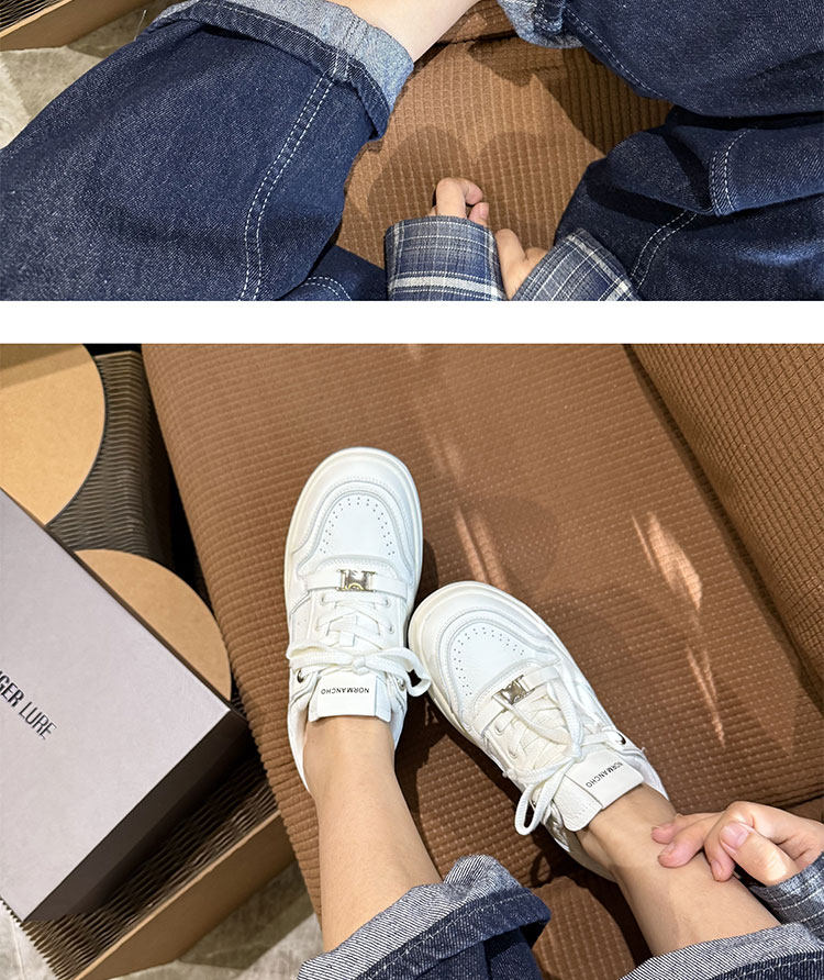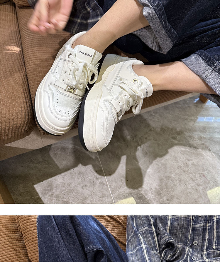 Hong Kong Thick-Soled White Sneakers for Women 2026 Spring and Autumn New Korean Style Genuine Leather Versatile Buckle Sneakers Popular Casual Shoes Trendy