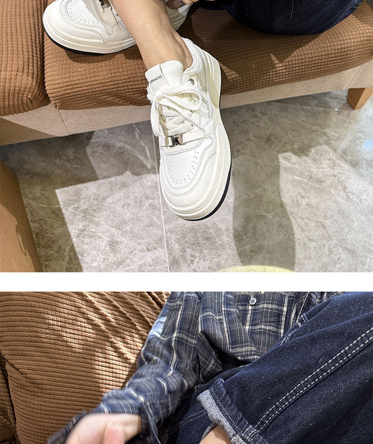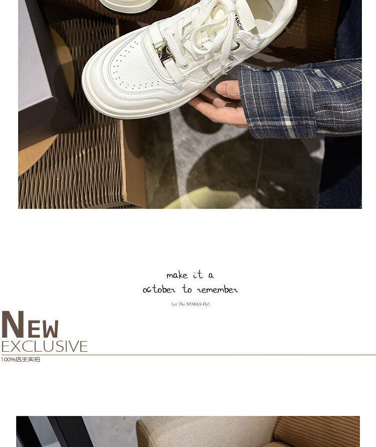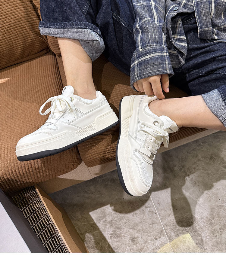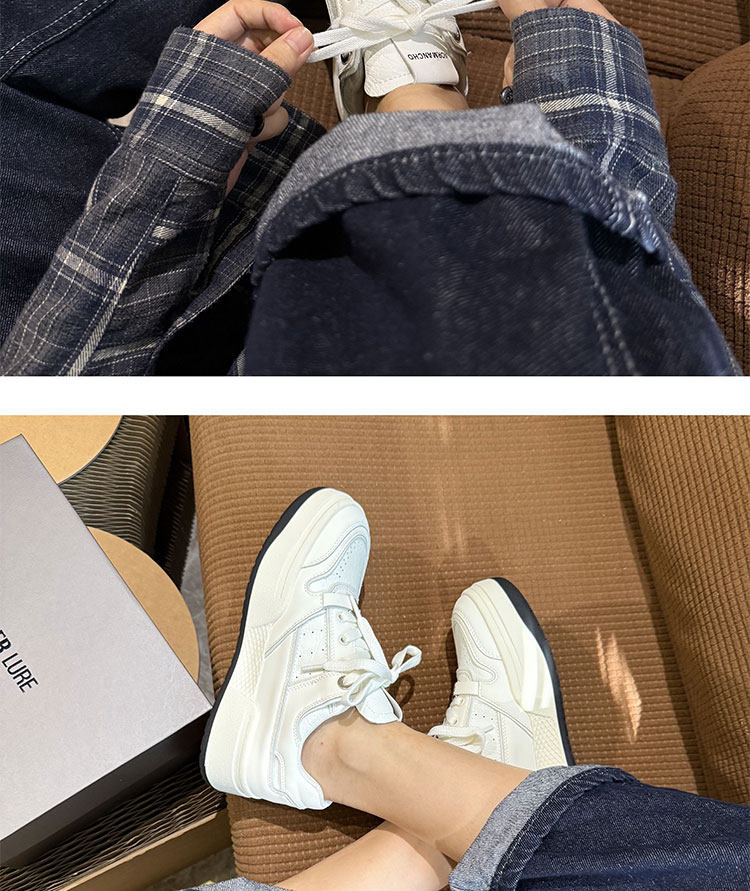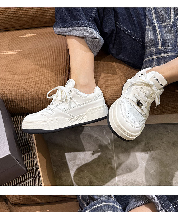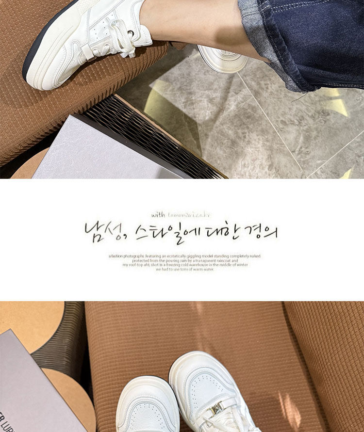 Hong Kong Thick-Soled White Sneakers for Women 2026 Spring and Autumn New Korean Style Genuine Leather Versatile Buckle Sneakers Popular Casual Shoes Trendy