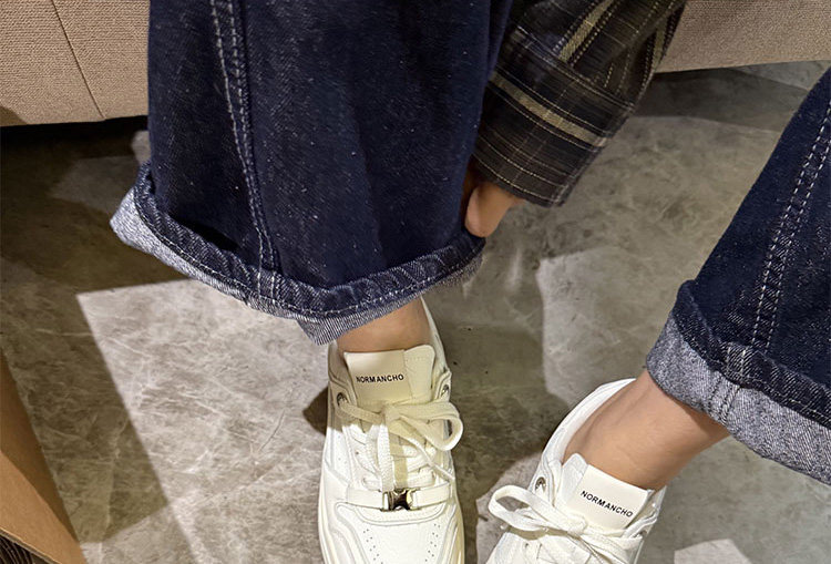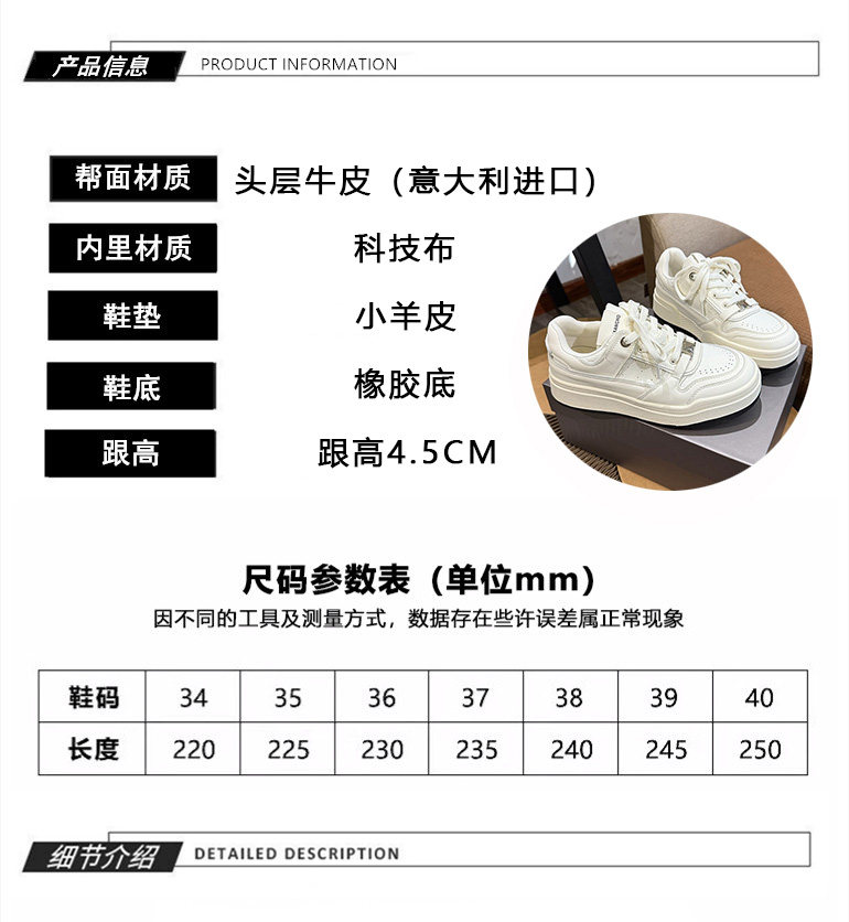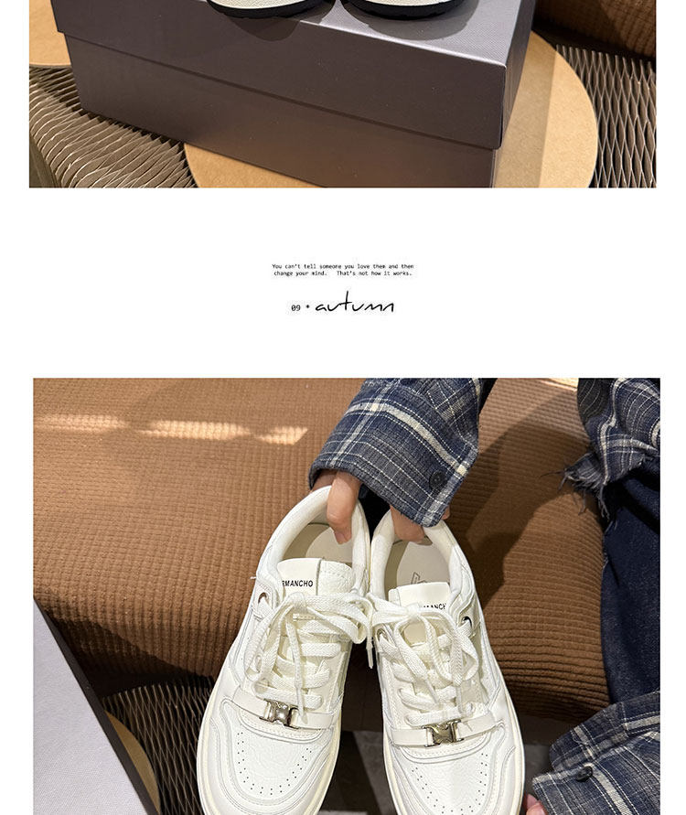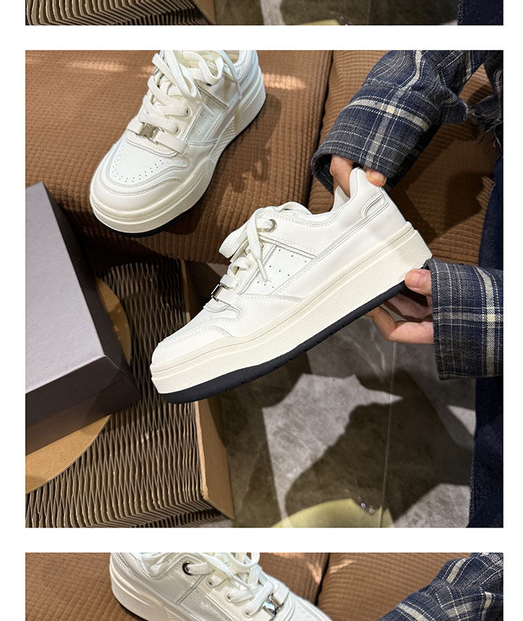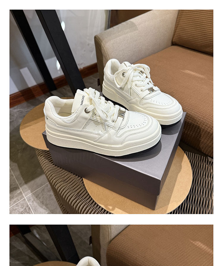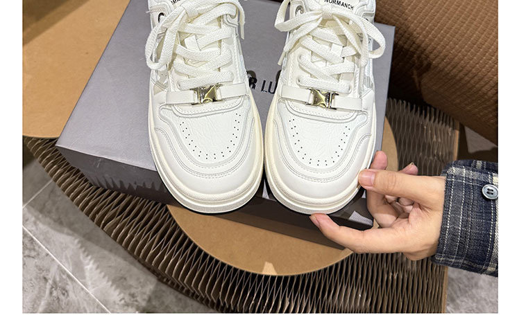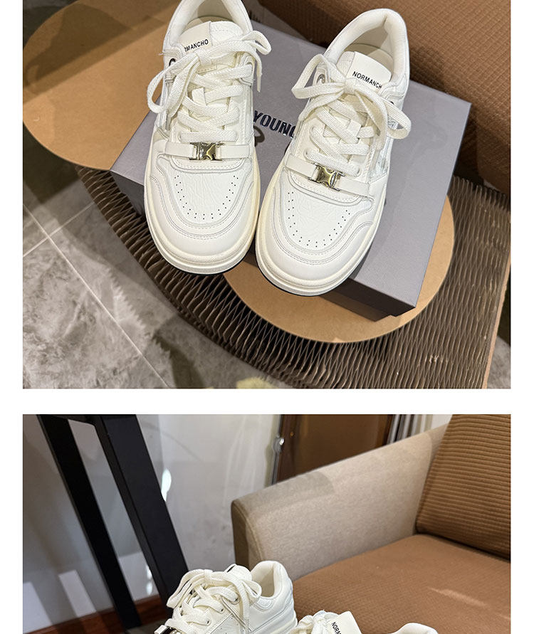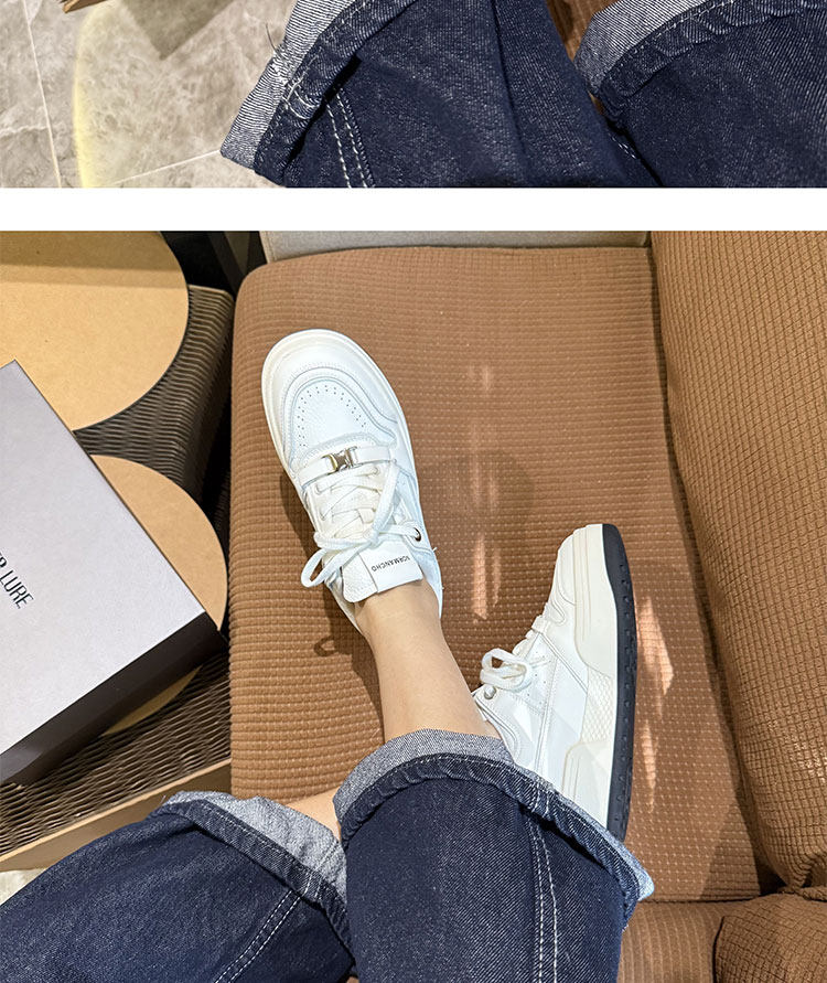 Hong Kong Thick-Soled White Sneakers for Women 2026 Spring and Autumn New Korean Style Genuine Leather Versatile Buckle Sneakers Popular Casual Shoes Trendy