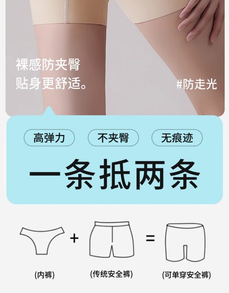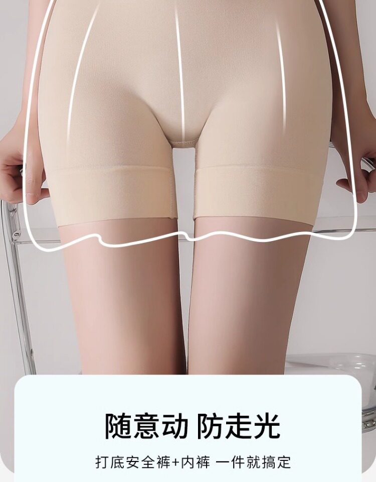 Women's Safety Shorts and Underwear Two-In-One Anti-Exposure Ice Silk Seamless Flesh-Colored Leggings with Pure Cotton Crotch Breathable Boxer Briefs