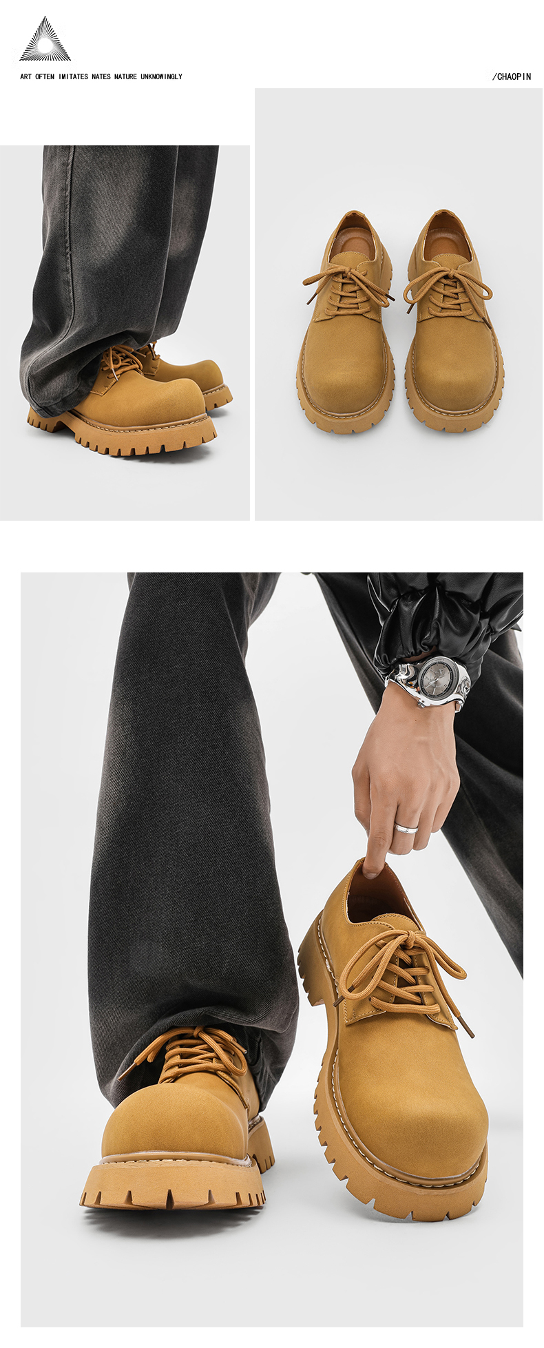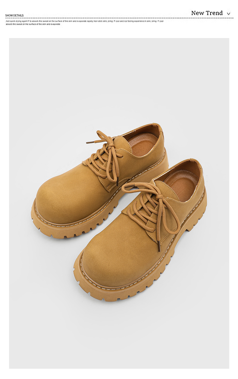Paris Cleanfit Mickey Derby Shoes Men's Chunky Shoes Thick-Soled Height-Increasing Low-Top Yellow Boots Casual Commuting Leather Shoes
