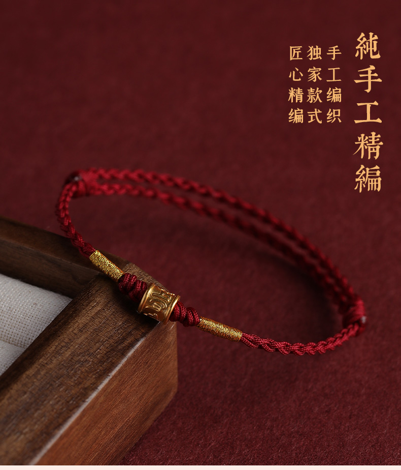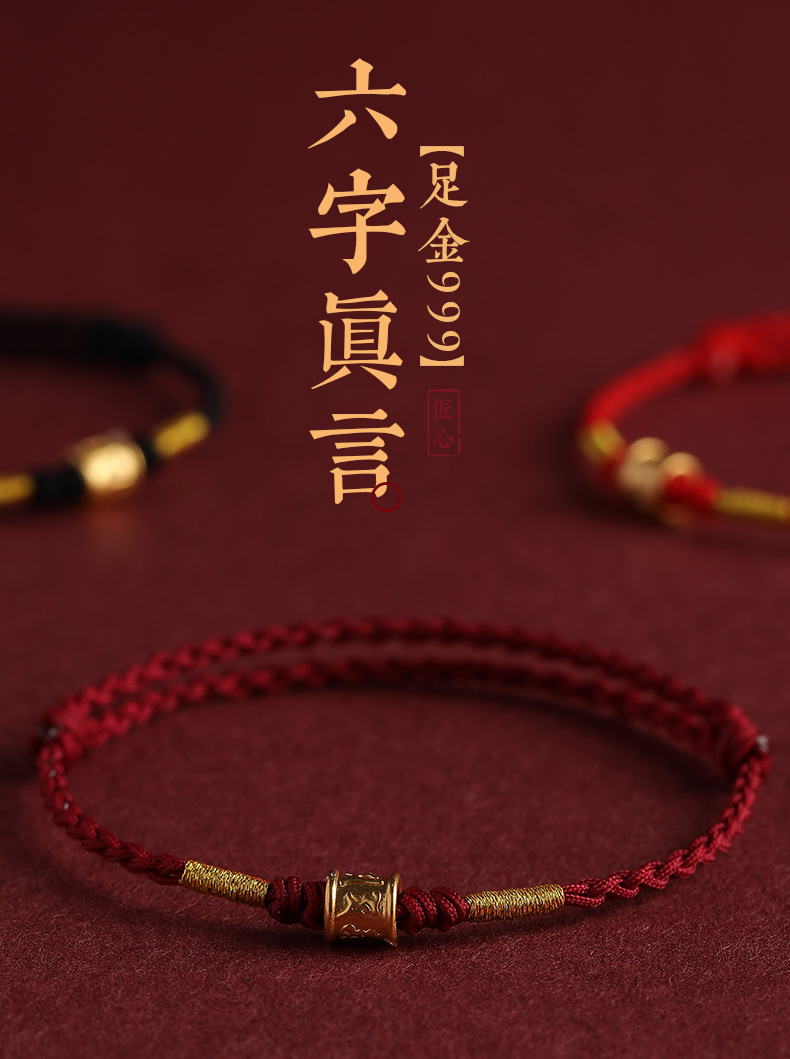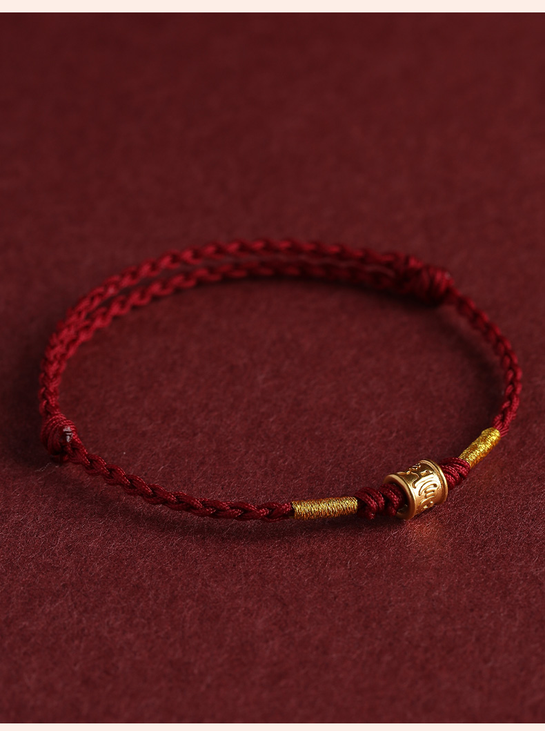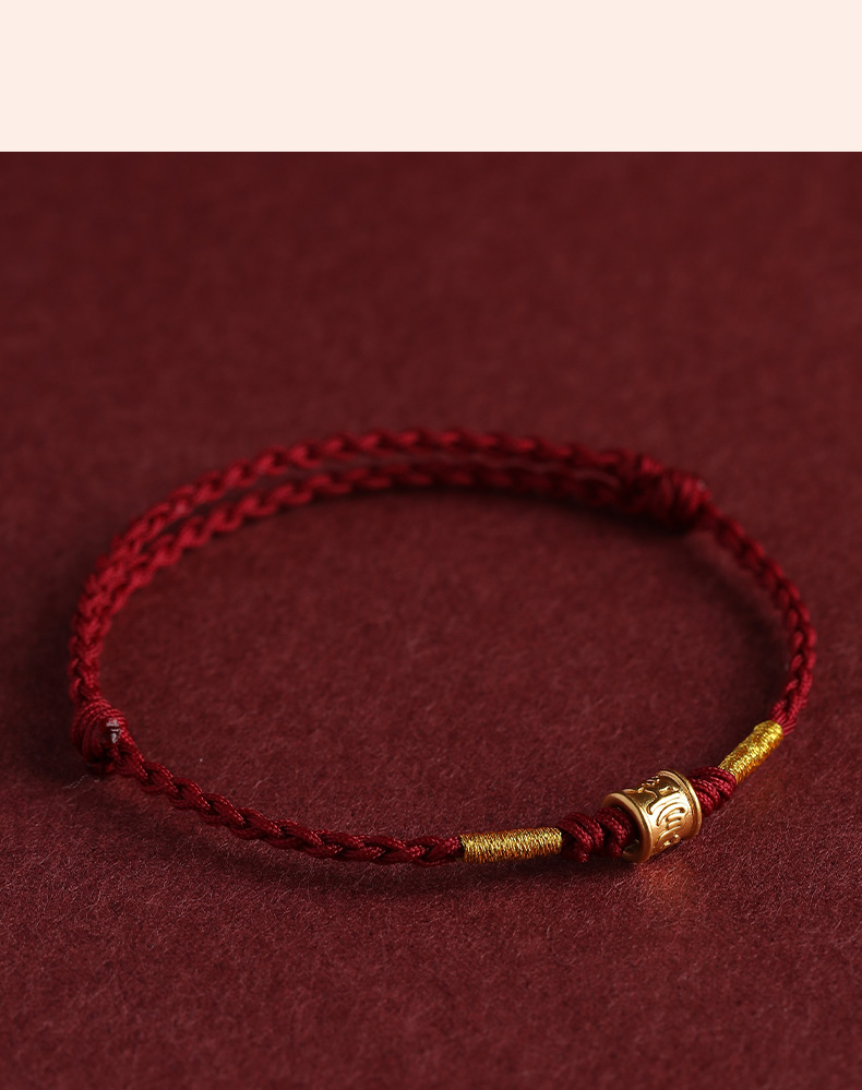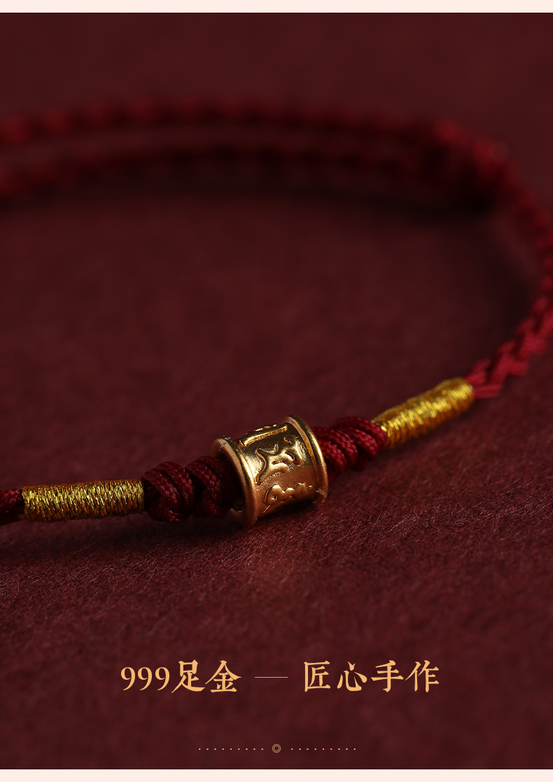 Putuo Mountain 999 Pure Gold Six-Character Mantra Red String Bracelet for Men and Women, Gold Fortune Bead for the Year of Birth, Safe and Secure Weaving