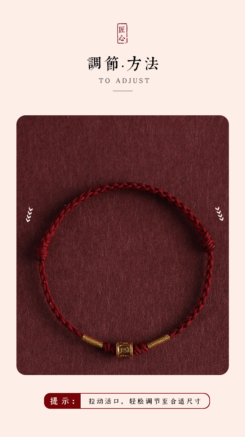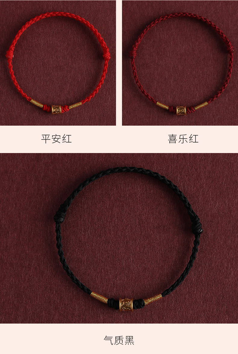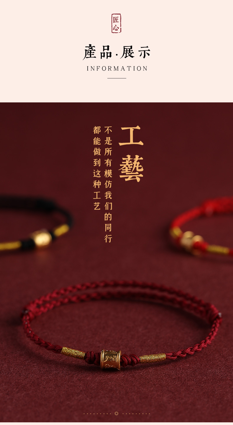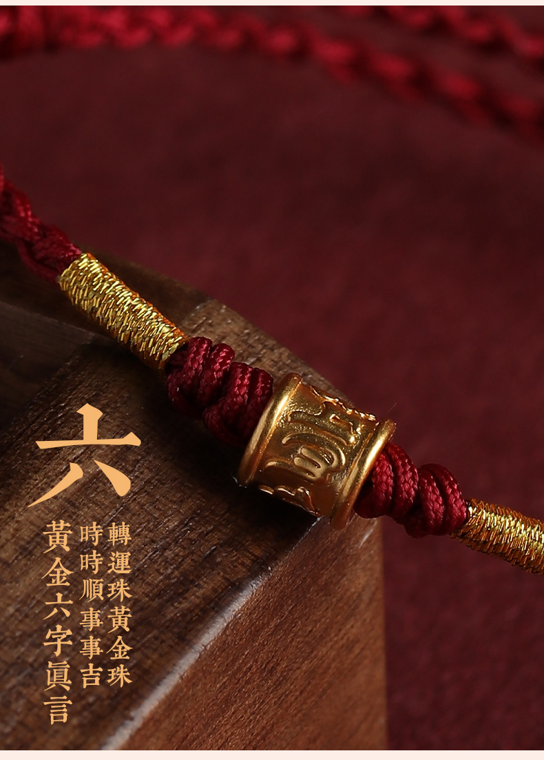 Putuo Mountain 999 Pure Gold Six-Character Mantra Red String Bracelet for Men and Women, Gold Fortune Bead for the Year of Birth, Safe and Secure Weaving